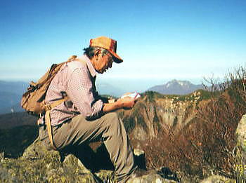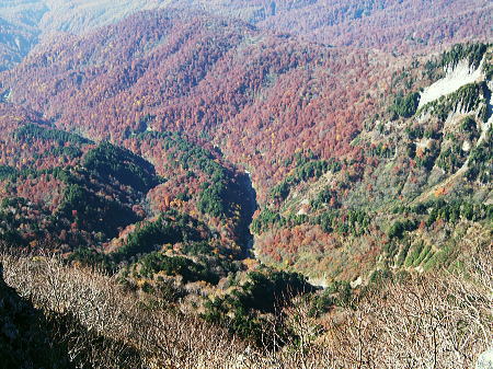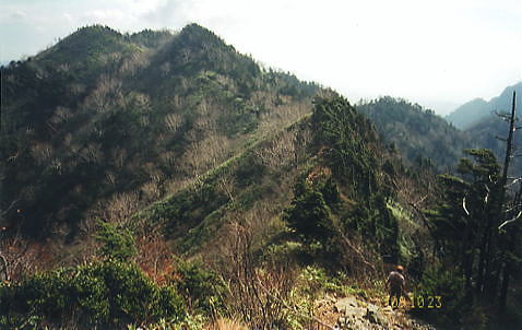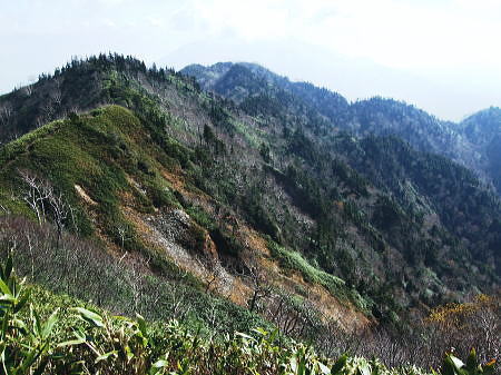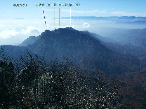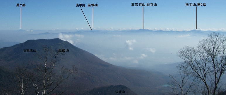 | 高妻山からの展望と昼寝 今まで綴ってきた山道を分け.帰路は五地蔵山から若いネマガリタケの茂る弥勒尾根新道を選ぶ。紅葉の回廊から戸隠牧場へ戻る 戸隠山奥社から登り返した高妻山 高妻山の展望と弥勒尾根新道から戸隠牧場・・戸隠神告げ温泉・恐怖の路線バス 十阿弥陀と戸隠連峰.8:3810月23日.高妻山より六弥勒の尾根を下る 10:00十阿弥陀:15一10:27高妻山11:00, 一12:00小:10一12:20七薬師一12:25六弥勒:40一13:45小:55 一南に派出尾根一14:30沢,戸隠牧場:35一15:10戸隠キャンプ場:23. 十阿弥陀にでる。 高妻山々頂は直ぐ先に見上げられた。雲1つない蒼空の下.この僅かな岩稜のプロムナードが素晴らしい。 高妻山々頂.2352.8m ![]() 妙高連峰.乙妻山の左肩に雨飾山 高妻山の奥・・右の小さな重なりが鋸岳.10:20まだ未踏の雨飾山. 日本海の裏側に下るコースを模索中。 焼山.火打山.妙高山 高妻山の右奥.10:09妙高山斜め手前の窪地が笹ヶ峰. 妙高山から白馬岳1966.08 頂の眺望 山麓から見上げるのが常だった高妻山に立ち.妙高連峰と初めて雨飾山の山容を真近で眺める。 乙妻山の左に雨飾山があり.右に長く連峰を控えるのが妙高山 1966年07月初めて女子パーティに参加し.燕温泉から妙高連峰を縦走し小谷温泉から白馬三山に抜けている。 この時は燕温泉から妙高山を越え長助ノ池へと入山日に2日分歩かされ.女子部員を背負うはめにもなっていた。 3日目は停滞すると云う出発から波乱を含めたな山行だった。延々と歩んだ背稜が.ほどよい明るさで眺められていた。 奥裾花と後立山連峰 高妻山の左遠方.9:59白銀の稜は薬師岳.立山と剣岳.白馬三山 黒部五郎岳.針ノ木岳.薬師.鹿島鑓ケ岳.立山.五龍岳.剣岳・・・白馬三山.蓮華岳.乗鞍岳.朝日岳 高妻山の頂からは白銀煌く後立山から重なる立山連峰が長い山稜を連ね.遠方の槍.穂高岳山塊の端.笠ヶ岳まではっきり眺められていた。 今年の夏.新穂高から読売新道を歩んでいる。丁度後立山の裏側になる尾根。左端奥に白く煌く岳がその奥に聳える薬師岳。 手前に横切る尾根は高妻山から連なる山稜で.鬼無里と白馬を隔て車山.柄山.物見山.八方山.東山へと登っている。 手前の谷間は奥裾花川流域になろう。 アップの白馬三山 左が唐松への八方尾根.10:00初めて白馬三山に入ったのはRHCに入部して2年目の夏. 妙高山から乙見山峠を越え姫川に下り.改めて猿倉からアルプスに入山した。 その後は白馬大雪渓から針ノ木雪渓を下り.中高年になってからは大川と栂海新道を親不知に抜け日本海の海抜0mに下りている。 白馬岳にはほぼ定期的に登っている山にも思われるが。山も好きだが雪渓がよい。 どの山行も水を求めて歩む長い山旅だった。 今回は一不動手前のツメ.氷清水で充分な水を確保でき.炊事には楽な山行になっている。 西側の信越国境を遠望 10:09菱ヶ岳. 黒姫山の右上が苗場山. 重なる手前が今年7月に志賀高原経由で登った鳥甲山 中央右が笠ヶ岳.右の白根山.本白根山 ・・小さく浅間隠山と大きな四阿山.その直ぐ横が浅間山。 北信から続く山々 登り詰めた方向は千曲川の流れに広がる善光寺平の先. 遠く浮かぶ雲海の彼方には苗場山に重なる鳥甲山から上信越志賀の山々が連なり望まれた。 広大な雲海の彼方に浮かぶ山陰は八ヶ岳に奥秩父。南アルプス北部の山々と.間には秀麗たる富士山も眺められ, 1つの小さな山形の集団が1つの山塊をなし.広い範囲の全ての山々が堪能できる頂になっていた。 妙高山の東裾辺りでは殆どが日本海を面しているが遥か彼方に鳥海山も望めるという。 北信の遥か先の甲信越国境を遠望し.御嶽・乗鞍山へと繋ぐと微妙に描かれた大らかに丸びを帯びた地平線をも見付けていた。 間近な戸隠に並び頂に立つと大きな山容の後立山の山々が眼前に飛び出し驚かされてもいる。 どの山にも記憶に刻まれている山々連なり.目線をある点に停めれば見詰める先のの山々が脳裏に大きく描かれた。 そして新たな息吹の如く.忘れていた山々までもが蘇ている。 最近訪れた草津白根山から鳥甲山の頂稜は黒姫高原の先にに綴られ.既に懐かしい山として見定められていた。 八方睨.本院岳.西岳 遠方は乗鞍岳と木曽御嶽山.10:22前日頂に立つ筈だった戸隠山.取付きで雨粒に打たれ諦めている 天空 今回は3人の単独行者と頂で出会っている。各々が岩片にもたれ,雲上の至福の時を過ごしていた。 高妻山から周りを一応遠望し終えると改めて紺碧の蒼い空を仰ぎ.頭上には丸天井の空が広がっていた。 無限に広がる蒼い空.その空の壮大な空間が一色の蒼いキャンパスで描かれている。 天空の周りを囲むよう角膜に映され縁々には遠く幾つもの山波が薄く描き映されていた。 山の天辺にしか判らぬ広い空.そして深い空がある。 見応えのある眺望を何度も見詰めつつ.時を忘れ陽と遊ぶ優雅さは長閑で懐かしい。 眠るでもなく岩場に背をもたれ.1時間ほど日向ぼっこする私。彼も同じ気持で岩片に腰を降ろしているのだろう。 風もなく.贅沢すぎる時が流れていた。 高妻山から乙妻山2315mへは左
