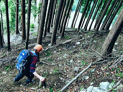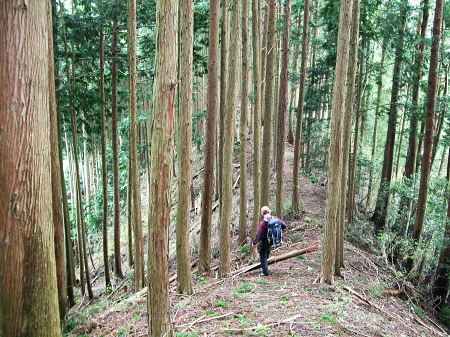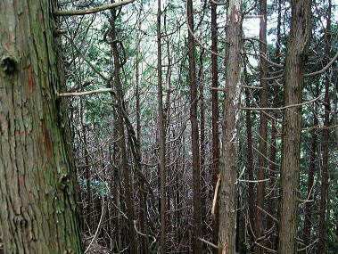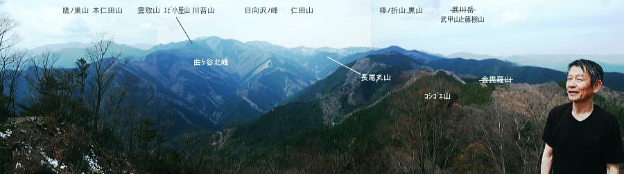 | ・・高水三山Top 棒ノ嶺から大丹波川左岸尾根を南下し多摩川の川畔にでる。 岩茸石山から馬仏峠を越え惣岳山に立ち.残雪踏む上半の山並みを越え.林床の柔らかな落葉の山神塚尾根を下り丹縄・・送電線鉄塔2と多摩川左岸旧道 名栗ダムから権次入峠から棒ノ折山をピストンし.興越山を越え名坂峠 岩茸石山から惣岳山神塚尾根と多摩川左岸旧道・・檜林の区分 岩茸石山から惣岳山神塚尾根への山稜 真名井沢北稜の伐採地跡より・・2009.12.29/9:25真名井沢北稜の末端と赤杭尾根末端を隔てる真名井沢出合は大丹波川の右岸と合わせ.右奥い回り込み.下流は多摩川に流れ込んでいる。 向いは高水三山の岩茸石山から惣岳山が見渡されている。岩茸石山から細かく起伏する馬仏山723m・逆川ノ丸と惣岳山。 馬仏山(まほとけ)723mの直ぐ南.710mの小コブから大きく神塚尾根を巻き込むよう.外側を沼沢尾根が回り込み直接jr川井駅に下りられた。 その間の神塚尾根は我々のルート. 新秩父線33号鉄塔・jr線31号鉄塔を経て多摩川沿いの丹縄の集落を目指した。最後は多摩川の左岸道にでる。 岩茸石山の頂 頂先の右尾根を下ると高水山.常福寺にでる.13:35細長い平頂の東端・左手が高麗の丘陵で超高圧500KVの送電線鉄塔群が連なる. 岩茸石岳より惣岳山神塚尾根 12:40岩茸石岳.大13:50一14:20惣岳山神塚尾根一14:55新秩父線33号鉄塔15:05一15:10jr古里線32号鉄塔一15:30丹縄 ⇔多摩川左岸旧々道.ロス15:55.一16:10jr御嶽駅:20. 長閑な陽差しを浴びる岩茸石岳の頂に立つ。細長い頂には高校生の団体を含め.多くのハイカーが憩っている。 頂まで踏み込めば東肩に伐採地が開け.飯能の街並から青梅の丘陵が広がりを見せ.無数の鉄塔群が見下ろされた。・・新飯能変電所. 足元は奥武蔵.名栗地区の低山。更に右前方遥か彼方には筑波山が朧に望まれていた。 右景の北東面・・岩茸石山より北東面.13:35右脇が白丸周辺の新所沢線の巨大鉄塔群. 奥に広がるのが日高から飯能に掛けての市街地で,.右下は永雲ノ峰。 高麗川白丸周辺. 右にカーブ辺りに成木街道が横切り.その尾根上を送電線新所沢線が下りている。 高麗物見山から望む奥多摩大岳山〜御前山・・又多摩川を隔てた手前には成木尾根に乗る新所沢線の鉄塔群が望まれた。 送電線鉄塔 真下に流れる名栗川の茶畑の多い山王峠付近に幾つもの送電線鉄塔群が見下ろされる。 新飯能変電所(青梅地区に工業団地等電力需要が高まり平成11年に新設された。)が近くにあり.新所沢線から降圧されるのがjr青梅線 秩父地方から延びる安雲幹線は現在遊休設備。奥秩父線がその一部の建て替え鉄塔を除き.旧黒部幹線の原形鉄塔が現存し. 高麗の丘陵を並行して走っている。一部.奥秩父線60号〜55号との共有鉄塔がある安雲幹線仮ルート(旧黒部幹線の原型の残り) その先は黒部幹線の本来の154KV送電線であり.上信の山岳地帯から十石峠越えをしている。 2011年の忘年会山行で西上州烏帽子岳から.その延々と綴られた境界尾根を横断し.手前に延びる送電線を見ていた。 又安雲幹線は子ノ権現から高麗川(北側)の左岸沿いを走り.鎌北の頭363号から高麗の346号鉄塔までの素晴らしいパノラマが遠望されている。 新町開閉所一黒部幹線154KV一奥秩父変電所一奥秩父線(60〜55)275KV一新多摩変電所.青梅線.又154KVで西東京変電所へ。 新所沢線(新所沢変電所一新多摩変電所.500KV.88基.)が青梅を抜け北上し.新所沢線は新所沢変電所近くでは安雲幹線と並行し更に 新秩父線とは五日市付近で並行している。又高水三山の裾で東西に分かれ.東側の新所沢線は高麗物見山を南北に挟むよう走っていた。 岩茸石山の空を仰ぐ ![]() 雲が切た逆光の蒼空に飛行機雲.13:22 曇天と蒼空 霞む展望に眩い光があるわけでもなく.時折差す薄日は弱い。まだ春真っ盛りの霞とも違っていた。 それでも大きな1つの雲が抜けると再び雲の中に包まれるまでは暖かい陽溜まりの日差しが届くようなった。 休んでいる間にも,雲の領域より蒼空の方が広がり始めている。寝転ぶと次第に大地は暖められ.午後のぬくごみを感じ始めていた。 もう4月の中旬を過ぎている。不安定な天候は昼下がりの一時.早春と晩春の長短を同時に受け入れていた。 昼食 昼食になると素足になりたがる先輩が今日はシートを持参した。初めてではないだろうか? 大地に敷くだけでもピクニック気分になる豪華さ。乙なものである。今日もビールと日本酒が付いた。それもエビスの贅沢さ。 癖にならねばよいが。寒くても旨く喉を通る心地は変わらない。その上熱い天婦羅うどんもある。 いっときの時の流れも忘れてシートに寝転んでいる。何時の間にか賑わっていた頂も静けさを取り戻していた。人影も疎らに最後は誰も居なくなる。 先日季節に合わせ竹の子ご飯を炊いたと聞き,改めて自炊していたことに驚く。絶対自炊には手を抜かぬと先輩は自慢顔。 その言葉が私に重く圧し掛かる。今まで山での献立と買い出しは私が担当のようなものだった。 調子に乗ると酷い目に遭いそうだ。慎めなくては。 奥