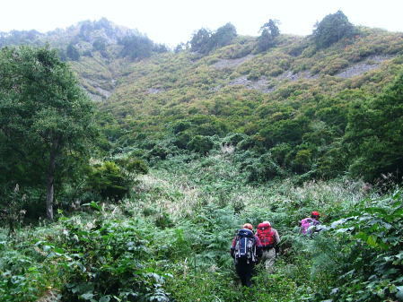 | 会津只見三山Top 2010年10月15〜18日 L松村m見城.滝島.鈴木 八木原K邸・只見「いわさき荘」・六日町ダイヤパレスと宿を繋ぎ.改めて越後の山.只見二山を登る。只見の宿を起点にして会津蒲生山。 始発の列車で繋ぐのは浅草岳。八十里越から三国街道へは六日町ダイヤパレスに宿り.奥利根ゆけむり街道へでている。 10.16.五葉松と岩稜の会津蒲生岳・・カミキリムシ・カメムシ 10.17.奥会津最奥の浅草岳 10.18.奥利根ゆけむり街道と平川沼田線 安達太良山の同期会山行から東京に戻り.週を空けず3日目にして再び奥会津.只見三山へ出向く。 今年初めに同期鈴木から六日町での宿の提案があり.六日町を起点とした山行が企画した。秋たけなわの浅草岳を中心に考える。 会津最奥の只見へ 只見三山の二山.蒲生岳と浅草岳は田子倉から入叶津へ抜ける会津側からの入山コースからこの数年.密かに心に秘め調べていた岳だった。 郷愁誘うjr只見線に乗り.臨時停車場の田子倉駅から入山するのは一種変わった登り方で楽しみにしていた。 夏期には夜行列車があり強引ではあるが横断を試みることができるが華麗なる紅葉期の岳を仲間と浸りながら登る楽しさは別物だった。 その上三度渋川のK嬢邸にお世話になり..六日町の宿といい.3泊の優雅な山行を味わえられた仲間達にも恵まれていた。 浅草岳の裾野には江戸時代から越後と会津を結ぶ交易道として,六十里越と八十里越がある。優美な曲線を描く浅草岳と連聳して褐色の岩壁を 削立させていのが鬼ヶ面山。その両街道に挟まれた山塊にある。浅草岳は昭和に入ってからようやく登山者を迎えるようになり. 昭和46年に国鉄只見線が開通. 同48年には六十里越の車道も実現した。 それ以前は登山口の五味沢集落を含む北魚沼郡入広瀬村が登山口になってる。 五味沢集落からの浅草岳は関越道のなかった時代でマイカーのみの利用.下越五味沢からマイカーで詰め.同期大川と浅草岳の草原・残雪で遊んでいる。 その折は大変だった。車のバッテリ-が上り苦労した。越五味沢で油屋のトラックを見付け助かっている。 その後は只見線の開通を待って国鉄只見駅からタクシーを飛ばし.会津朝日岳に登っている。同期大川と会津只見線が開通したと只見線の始発と 最終列車に乗り.会津朝日岳に出向いている。この時は強引に日帰り2泊の山行だった。時期はどちらも1970年台の初めと終わり頃。 入広瀬からは卒業して直ぐ後輩達を連れ.天幕を背負い守門岳山スキーに出掛けている。当時はまだ只見線は入広瀬止まり。 貨物混合の蒸気機関車に乗っていた。改めて登る停車場からの浅草岳は長い間の願望の1つで今回叶うようになった。 中秋の関越道を北上し六十里越から奥会津へ・・まずは八木原のK邸泊,それから県境を越え.只見小蒲生へ。先ず蒲生山に登る。 夜明けの小持山 K邸の2階より.5:3010月15日(fri).晴 jr上野¥2.210. 14:00=高崎15:50=16:23jr八木原一「渋川スカイテルメ」=八木原K邸泊.終焉23:00. 10月17日(sut).小雨 K邸5:30=駒寄PA6:30=小出IC=R252.「六十里越雪わり街道」=9:20会津蒲生P:35一久保登山口. 仙ノ倉山〜谷川岳.国境稜線 関越道.駒寄PA〜小出IC越後三山 関越道六日町付近から.7:34帰路は小出から魚野川右岸の三国街道を六日町へ 6月の谷川山行と同様.駒寄PAでK先輩と私が加わり.滝島先輩に同期鈴木と全員が合流し関越トンネルを潜り越後へ。 早くも三国の国境を越えると今年はまだ錦秋の紅葉にはまだまだ早過ぎる魚野川を下っていた。 塩沢.石打ICを過ぎると関越道の右手に越後山脈が連なり望まれ.越後三山・只見国定公園内に入りる。 中越の魚野川沿うからは高速道を更に北上した。そして小出ICから六十里越えをし一気に奥会津へ走る。 六十里越 裾の里道では豪雪に備え家屋の土台を高くし.カーブ地点や橋粱橋脇にはそれぞれ高いポールを立て.周りの状況が分かるよう工夫されていた。 4隅に立てられたポールの高さから積雪量の高さを見せ付けられているようだった。 jr大白川駅を右手に見ると直ぐ破間川の二俣にでて.左手に本流を分けている。この上流は大白川・五味沢を経てる越後側の浅草岳登山口。 昔車のバッテリーが上がり.浅草岳から五味沢まで一度.空身で下りたコース。右手の末沢川沿いは街道とJR只見線が走る六十里越のルート。 この裾野はブナが広大な樹林帯を構成させている。二俣で右手に毛猛沢を分けると大きくUターンを繰り返す激しい登りになった。 体は左右に振られ少々酔い気味に.綴る街道をエンジンを轟かせ.車は高度げ峠を越えている。 六十里越は毛猛山からの越後山脈の主稜を横切り.鬼ケ面山を経て前岳から浅草岳にでている。 右手の谷間が只見沢.その対岸の中先尾根が今回選んだ登りのコース。六十里越隧道の両側に登山口がある。 高度差は殆ど変らぬが上流側の方が距離的には半分で峠にでられた。 隧道を潜って田子倉湖北岸沿いに東進し.只見沢橋(出合)を渡るとjr田子倉駅舎前で合わさる。ここは会津側の浅草岳登山口で明日登るコース。 今日は会津蒲生