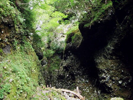 | 八ケ岳地獄谷. 40年振りに訪れた出合小屋・・川俣川東俣.地獄谷Top 昔を懐かしい地獄谷と憩う出合小屋 清里から出合小屋に宿り.翌日のツルネ東稜から阿弥陀中央稜を断念. 留まり地獄谷周辺を探策 2010年09月21〜22日.単独 ふとした切っ掛けで川俣川東俣の地獄谷出合にあった造林小屋が改修され.残されていると聞き出向いてみることにした。 高根山岳会が管理する山小屋で.昔通った時はまだ林道も短く.上流に堰堤も少なかった時代だった。 天狗尾根.赤岳沢へと夕暮れ迫る頃.清泉寮に寄ってから訪れ.野宿なり小屋泊りをている。今回も清里から入山し.出合小屋でー泊し 広河原立場川林道を下る積りでいる。昔.山越えの立場川に入るには美濃戸から入山していた。ここにも広河原に同じような小さい出合小屋がある。 コースタイムとしては10時間.原村ペンション上の最終バスに乗らなくてば。 異常気象 梅雨明けと共に北海道から西日本に掛け.日本全土は異常なスーパー猛暑に襲われている。 東京では21日.22日にも30℃を超え.今年通算71日目の真夏日となり.熱帯夜が続き観測史上最多記録している。 気象庁によると半年前の赤道付近での海水温の上昇が大気に蓄えられたため.三海洋.特にインド洋に高温をもたらせ.偏西風の蛇行を大きくさせていた。 その上ロシアで強く発達した高気圧が偏西風のブロッケン現象を起こさせていた。その為.太平洋高気圧団が大きく張り出し. 盆を過ぎてもブロッケン現象を留まさせている。 先月訪れた北アルプス後立山行では夜半でも上着を着ぬ暖かい夜を迎えていた。例年に戻りつつあるも残暑はまだはび込み続きそうだ。 その残暑も彼岸までとその境の前兆が現われだしてきた。連日日本海に延びる前線が烈風を起こし.この出合小屋でも夜半は猛烈な風に襲われている 夜半地獄谷の小さな山小屋はうなる風に襲わ.窓どころか小屋本体を揺れ動かしている。風音の唸りに小屋の軋む音が不気味に響いていた。 私と同じような考えで小屋を訪れたハイカーと来る途中で偶然にも擦れ違っていた。同じような仲間がいると互いに笑い別れている。 その彼が昨夜は谷を通る抜けた烈風がこの小さな掘っ立て小屋に襲い.不気味な夜を過ごし怖かったと私に伝えていた。 10月21日火. 晴後曇 jr神田6:07=新宿.「スーパーあずさ1号」7:00=8:54小淵沢9:57=10:21清里:30一11:10清泉寮一11:20R11とR615の交差点 一11:25小:35一11:50林道一11:55天女山分岐一12:30避難所(13):40一13:00赤い堰堤一13:50出合小屋. 大泉清泉線 真教寺尾根と重なる赤岳県界尾根0T字路.11:14清里 昔は清里駅の西側は広く牧場が開け.駅から見える建物と云えば清泉寮のみだった。 それから国鉄はJRに変わり.ペンションブームが起きると駅舎や駅前もモダンに建て替えられ.駅前の風景も驚くほど変わり.今では人多く乗降する駅になる。 時代の流れにつれ清泉寮も拡張.発展を続けている。最近立教学院の清掃ハイクに参加.それが切っ掛けで再び山に入るようなった。 昨年は区の連合レクレーションで観光目的で山以外でも清泉寮を訪れている。その脇を通り.川俣川東俣に入る。 今回のアプローチは昔を忍び.JR清里から歩むことにして北杜市民バスを敬遠している。昔の里道は整備され大分変っている。 駅前の舗装道路を抜けるとジャリ道が清泉寮へと続いていた。地獄谷へは常に清泉寮への1本道を抜け入っている。 今は大泉清泉線.俗に云うポール・ラッシュ通りと云われ.名無しの道までもが近代的な名が付けられていた。 両脇に歩道があり北側には並行して森の散策路が造られている。昔はただ牧道への1本道だった。 ビジターセンターへの二俣を左手へ入った積りが散策路へ入り.先は展望テラスへの道を示していた。 慌てて県道に戻りR615(八ヶ岳高原ライン)とR11の交差点へ。T字路の先が山道になっている。 標識には「キープ.オオヤマツツジの小径」とある。径幅は広いが蜘蛛ノ巣が多い。東俣左岸の道は落葉松林の丘陵へとゆっくり登っていた。 川俣林道に入り.12:33林道 途中で1本取り林道にでる。直ぐ天女山(八ヶ岳横断自然歩道)を横断した。ここで今日初めて.否や山中で初めての単独登山者に出会う。 彼も昭和40年代の初めに地獄谷を随分通っていたらしい。出合小屋周辺を歩き回ったが昔の面影とは掛け離れ.殆ど記憶に留まっていなかったと。 又もう1人の登山者と宿を共にしたとも。夜半は強い風に煽られた。今日は小屋に宿るのは君1人になるだろうと嬉しい言葉が返ってきた。 霞む権現,旭岳,ツルネの頭 昨年完成した堰堤から.12:44左下に瀬々らぎの音を聞き.木漏れの林道を歩む。木漏れと木蔭とのバランスのよい明るく整備された幅広い林道になっている。 1台の大型ミッキサー車と擦れ違う。車の交差には大きな避難所が所々あり.bェ立木に打たれていた。 この川俣川東沢左岸沿いの林道はまだ駅前から西側に「清泉寮」しかなかった時代の初冬にトレースし.河原の木の根穴に野宿した道になる 又晩秋に赤岳沢を詰めた折りは二俣に出合小