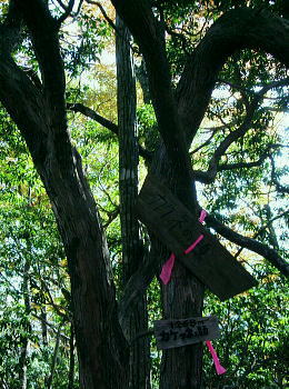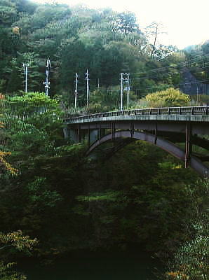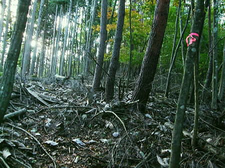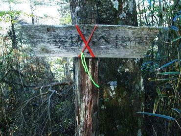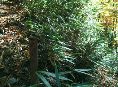 カネッケノ頭手前の鞍部からは南に延びるお茶ノ水尾根が厳しい踏み跡から葛野川の発電所西脇に下りている。 白草ノ頭から20分ほどでアケビの多いカネッケノ頭に着く。 「甲斐國志」によると白草ノ頭の東方平坦地に上屋敷,下屋敷.カネツケ水の地名が残っているが位置を確定するのは難しいようだ。 道はその北側,尾根筋を下って七本木山ノ神1000mに達している。 HP「ヴァリエーションウオーキング」氏によると「上屋敷」はカネッケノ頭と1143m圏コブの間に.「下屋敷」は七本木山ノ神の西側付近としている。 カネッケノ頭1268mから250mほど下った所で急に傾斜を増す付近の大地の下には.揚水式葛野川地下発電所からの送水管が潜ってをり そして松姫湖へ落された水は再び上池,大菩薩湖に戻される。導水管や発電所.送水管と全ての施設が大地下に埋められていた。 これらは今朝歩んできた大菩薩湖.小屋平からの山越えをした地下に納められている。 下山口の深城湖.ここも葛野川発電所からの送水管が地下に通されている。 自然保護の為にも目には見えぬ自然そのままの姿で.巨大な造形物が埋められている。地形図を見ると埋められた水管が記されいた。 長い距離である。人間の英知と優れた技術に感服させられる。それと比べるべきものではないが.その尾根上には伐採後の残骸だろう。 昔のロープ類が尾根上に何ケ所をも放置されていた。 ナラの立木を背負う木祠は尾根の末端の集落に向いている.小さな二重山稜的なカネッケノ頭から七本木山ノ神を過ぎると顕著に尾根筋の左側を巻くようになる。少し複雑な地形になっていた。 踏み跡は右肩上がりで左側に.緩やかな斜面の幅広い尾根になる。忠実に尾根上を綴ると南尾根へ入り込む恐れがある。 左へ迂回しやや登れば1143m峰の大分手前から巻くような形で抜けられた。 又七本木山ノ神は北東側の葛野川ダム下に下れる山腹道の踏み跡があるらしい。ただし崩壊ケ所の拡大で通行止 尾根通しの径.共に右回りに谷底に入ると土室川.小金沢の合流点近い尾根の末端で林道にでている。 枝落ちした間々の深い枝荒れ地山ノ神を離れ970m圏峰へ登り返す。間伐に枝落ちされた細かい倒木が幅広い尾根に散乱し.足元を塞ぎ歩き難いルートを造っている。 薄暗い黄昏のような植林帯.ルートはあるようでない。先を見て歩き易い所を選び歩む。抜けると尾根巾は更に広がり.日が頭上から漏れだしてる。 右手の葛野川本流側の沢音が高くなく響き.赤テープも多く見られるようなった。 足絡む台地.歩き易い場所を探し探し.小平地の最端のコブ.八丁坂3等三角点標石969.6mにでる。 長峰末端の平コブ 939.6mの小平地.三角標が手前左にある.14:40尾根末端へ 最後の三角標石.頂を離れる。三角標石の少し先で北東と南東の2つの尾根に分かれている。右手が古い踏み跡径 左前方の急激に落ち込む広葉樹の広い尾根を末端へ下る。落葉被るのっぺらぼうな斜面を疎らな立木を支えにテープに導かれ下り. ずり落ちる足元の先が分からない崖縁をテープを探しつつ下った。 750m付近で一旦勾配は緩むが再び岩ぽい痩せ尾根に自然と導かされていた。尾根の両側は切れ落ちている。 下山の疲れもでて雨が降れば四つん這いになる所だろう。 720m付近で崖縁のはっきりした踏み跡は旧登山道に突き当たる。左は行き止まり.白滝が目の前に被さるよう落ちていた。 右に戻ってトラバース気味に折り返し.下れば無線施設脇で葛野川林道にでる。脇に「水源涵養保安林」の標板があった。 国道139号.葛野川線 2008年12月. 師走の大菩薩峠牛ノ寝通り―猛暑の百蔵山・・松姫峠=深城ダム下=松姫鉱泉h=県道.桂川猿橋。百蔵山越えでjr猿橋へ 2010年11月. 小屋平からススタケを求めススタケの米代長峰・・士室川拓道橋から国道139号に入り.深城ダム下流側から松姫鉱泉.更に矢坪でヒッチハイク 2014年06月. 大峰北尾根から瀬戸境を尾根末端まで南下・・上和田bsから市道新深城線を経て深城ダム展望台・小金沢公園.北尾根取付き 2015年03月. 西奥山から土沢右岸尾根前半と葛籠峠越え・・日影.最奥から日陰bsにでて神宮橋bsまで=jr大月 米代長峰末端 国道から見た士室川拓道橋国道139号.葛野川線 15:20士室川拓道橋.ゲート一16:05竹の向一16:35上和田一16:45中風呂.松姫旅館一17:05矢坪.ヒッチハイク=7:20jr猿橋. 国道139号線を歩む 長峰の末端はシオジふかしろ湖(深城湖)の北端の辺り.下山口右岸の旧登山道は今も残っされているが直ぐ先で湖水に没している。 開かれているゲートを抜けて.直ぐ士室川に架かる拓道橋(林道橋)を渡れば新たな閉ざされたゲートがあり.向かいはT字路の国道に突き当たる。 上流の葛野川ダムと直ぐ下流にある深城ダムとの間にある林道に下りた。長峰の末端はここで没し終っている。 並行して延びる牛寝通りに続き.士室川を挟んだ長峰も下ったことになる。右折し国道に入り.左岸沿いの奈良倉橋を渡り深城隧道を抜けている。 隧道を潜ると右手に深城(シオジの森・深城湖)の湖畔が広がりだし.葛野川が流れ込