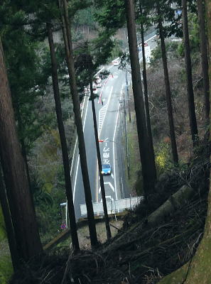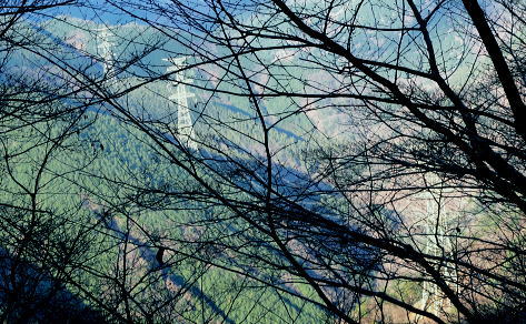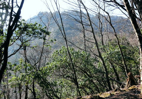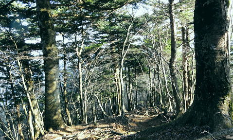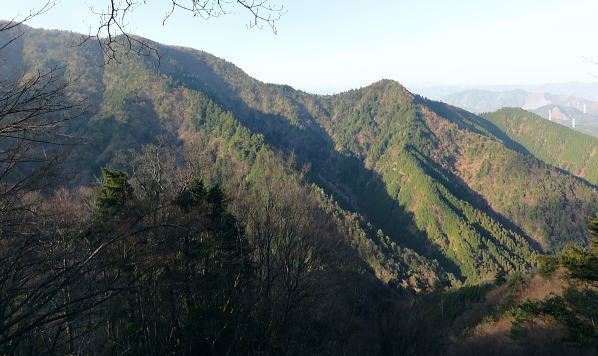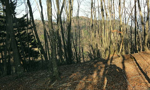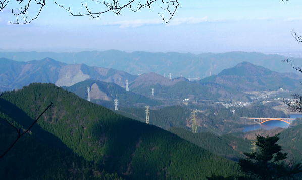 | 送電線新多摩線が横切る2つの尾根を周回 本間ノ頭栂立尾根を詰め.宮ケ瀬金沢右岸尾根に回り込み.末端は旧ハイキングコースから春ノ木丸にでて.降りた園地はクリスマスフェスティバル 宮ケ瀬から本間ノ頭栂立尾根 散策的な金沢右岸尾根と末端に聳える春ノ木丸・・宮ケ瀬園地 本間ノ頭からの展望は蛭ケ岳方面が望める程度.13:00宮ケ瀬金沢右岸尾根 12:30本間ノ頭:55一14:10金冷し一14:25青宇治橋分岐:30一14:35高畑山一15:15御殿森ノ頭一三又路分岐 一16:00春木山一17:20宮ケ瀬bs:50. 本間ノ頭 本間ノ頭に正午までに到着すれば本間ノ頭南東尾根から塩水橋へ下る予定でいた。それが30分遅れで到着. 夕暮れの危険な谷沿いの街道歩きを諦め.のんびり師走の日差しを受けながら高畑山から三又路へ下ることにした。 道標には「←丹沢山34km.宮ケ瀬7.6km→」とある。 本間ノ頭南東尾根取付き地点 正面が南東尾根取付き.左奥が松小屋ノ頭への登山道.13:00頂から5分も下ると南東尾根の派生地点にでる。 小平地で左寄りに「特別保護地区」の看板があり.右手先の倒木が取付くで跨げば南東尾根に乗る。 この尾根はブナやツガの巨樹がありアカガジの大木も立ち.これらは下るのによいポイントとなっていた。 中秋の只見浅草岳山行では巨木林の姿を数えられぬほど見ている。その余韻に繋がげられなかったのはここまで来て残念だった。 本間ノ頭南東尾根 左に南東尾根を急激に落としている.13:1朝方登ってきた境界尾根(栂立尾根) 中央が栂立ノ頭.右奥は六百沢ノ頭まだ昼下がりだが尾根筋が左に折れるといっ時の日差しが残照を思わせ.綴ってきた栂立尾根の山肌は焼けるような色彩で照らし出していた。 カメラの悪戯だろう。ただ冬の斜陽した日差しは午後になると急に落ちている。 落葉の長い尾根径が続く.13:19頂からの下山路は本間ノ頭の高度から比べると金沢右岸尾根は回り込んでいるため.だらだと緩やかに下る尾根。 山道は古くから綴られた確りした登山道になり.長い間の歴史が堀や土溝を埋める落葉で歩き難くしていた。 ただ全体的には石片の混ざりは少なく.歩き易い落葉径。松小屋ノ頭の巻き道では心地よく枯葉を蹴っている。 右景・・長尾尾根方面.3:53大山西面に開かれた尾根の雄姿 左景・・藤熊川を隔て.13:56大山北尾根のミズヒノ頭.西沢ノ頭.大山. 大山イタズミ尾根に乗る春岳山。更に右手の窪地はヤビツ峠になる。 西陽を浴びだしる尾根径.13:59この尾根は栂立尾根と同様に思いの外眺望は悪い。 素晴らしい初冬の晴天にも拘らず.望むべき山々は樹林に閉ざされ殆ど見定められずにいる。 北上している尾根の右前方に絡む枝尾根には新多摩線26号鉄塔が昼下がりの陽差しに煌めき望まれていた。 昨年.一昨年と鍋嵐宮ケ瀬尾根.ゴジラの背・大山三峰ねと入る都度.高畑山の山腹を横切る鉄塔群も見渡していた。 木に登り高圧送電線を見詰めたこともある。何時も遠方から望んでいた鉄塔群.その脇に今私はいる。 栂立尾根の東面山腹 左景・・一瞬開けた金冷し付近にて.14:04 左の突端が1043m.中央右が849m栂立ノ頭.右奥は732m六百沢ノ頭 茨菰山(ほおずき)と仙洞寺山 右景・・右下の31号鉄塔基部より.14:02相模原市方面・・背の稜は三頭頭山笹尾根の末端.武相尾根(裏高尾山稜)と新多摩線の鉄塔群. 右下端は宮ケ瀬湖虹の大橋. 新多摩線 手前全てが新多摩線鉄塔群. 超高圧ネットワーク500KVの送電線.新秦野変電所から新多摩変電所までを鉄塔91基で結んでいる。 送電線は秦野からヤビツ峠脇を越え大山北尾根を下り.ここ栂立尾根を横断して送電線は延々と北上していた。 宮ケ瀬湖西岸からはややジグザグに延びるほぼ直線状に津久井湖の湖畔を架け.高尾山の西側から,五日市の新多摩変電所に降りている。 手前が午前中登って来た六百沢ノ頭と栂立尾根末端, 栂立尾根を横断する手前から31号.32号.33号鉄塔。 32号鉄塔が尾根上に建ち,左脇のコブがクロベエ峰532mになる。 中央奥を東西に横断する送電線は佐久間東幹線の鉄塔群. 右下が宮ケ瀬湖に架かる虹ノ大橋。 足元の宮ケ瀬金沢を横断する新多摩線の鉄塔群 北側の捲き道より.右岸頭の尾根上に建つ28号鉄塔.14:18この鉄塔は昨年の春.逆側の中津川の対岸の鍋嵐北尾根からも見渡している。 宮ケ瀬金沢左岸を登る鉄塔群 右下手前から29号.30号.31号鉄塔と横断する新多摩線.14:12その先が朝方通った栂立尾根に建つ32号鉄塔 栂立尾根と幻のよう浮かぶ30号鉄塔.14:541000m圏と栂立ノ頭849m.右コブが六百沢ノ頭732m 金冷しの鎖場を抜けると尾根径は北側を綴っている。右頭上に大きな基部を持つ28号鉄塔を見上げて尾根を横切った。 宮ケ瀬金沢を挟み2つの尾根から同じ送電線を潜ったことになる。前後に繋がる幾つもの鉄塔群を臨みつつ下る。 そして再び窪地近くで南側に寄り薄暗い杉の樹林帯に入り込むと高畑山との南鞍部で.青宇治橋への分岐を分けていた。 この鞍部からは青宇治橋と反対方向に下る金沢林道に抜ける巡視路が綴られていた。 暫く斜面をトラバースし北西に延びる小尾根に乗り.29
