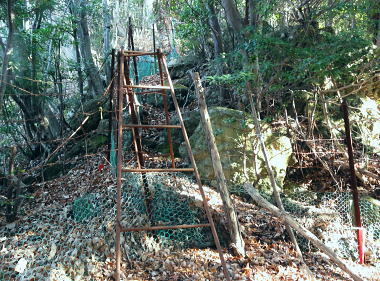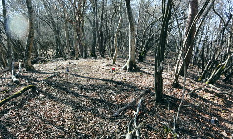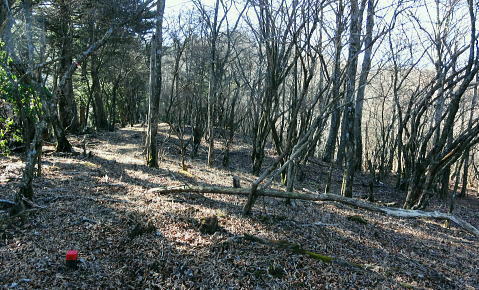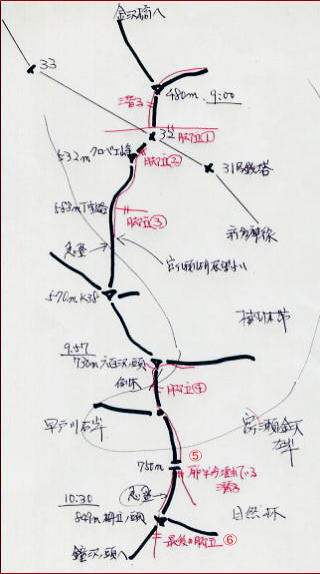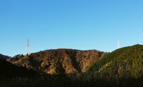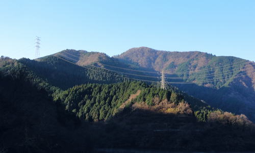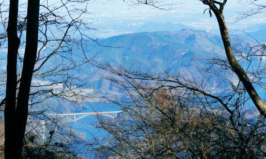 | 本厚木から路線バスの終点「宮ケ瀬」に初めて下車. 鍋嵐西方の丹沢三峰へ.栂立尾根.に乗り本間ノ頭に立つ. ・・東丹沢の山々Top 湖畔園地から宮ケ瀬鐘沢(金沢)を取り囲む栂立尾根.金沢右岸尾根を綴る。往路は宮ケ瀬から冬木に覆われた鹿柵多き鐘沢左岸の栂立尾根. 復路は本間ノ頭から金沢右岸尾根伝いに末端の春ノ木丸へ至る送電線が跨ぐ両尾根を周回. 2010年12月18日.松村 宮ケ瀬から本間ノ頭栂立尾根・・逆光と鹿棚・並ぶ鉄塔尾根 金沢右岸尾根と末端の春ノ木丸 金沢を取り囲む2つの尾根と宮ケ瀬 ゴジラの背より中津川を隔て本間ノ頭栂立尾根(左岸尾根)と宮ヶ瀬湖より高畑山.丹沢三峰に通じる宮ヶ瀬金沢の右岸尾根に挟まれた流域。 中央右が茨菰山(いばつきやま)の斜め左は石老山。その奥に霞み繋がる尾根が三頭山笹尾根・・鍋嵐ゴジラ尾根からの遠望写真・・2009.03.15/10:00 本間ノ頭栂立尾根 丹沢三峰(東峰.中峰.西峰)は別名.本間ノ頭・円山木ノ頭・太礼ノ頭と呼ばれ.冬になると三峰山や嵐鍋周辺からよく望めるられる連山。 今まで登り詰めてきた鍋嵐と相州大山との間に聳える大山三峰とは「三峰」の頭に「丹沢」と言葉をを付けることで分けられている。 今までの山域は宮ケ瀬湖に入り込む中津川右岸沿いの山々で.今回登るのは左岸沿いに連なる山域になる。 今年の春先には鍋嵐の春雪残る鍋嵐ゴジラ尾根や滝ノ沢左岸尾根からも望んでいた尾根。 栂立尾根を更に登り詰めれば丹沢山へ至る。丹沢主脈の山々に囲まれてをり.私にとってこの周辺はまだ空白の山域だった。 三峰はそれぞれが北側に同名の沢を持ち.その一番北側の東峰.本間ノ頭から北東に派生させている境界尾根(相模原市と清川村)は宮ケ瀬湖に没し. 鳥屋金沢(六百沢)と宮ケ瀬金沢との水分嶺をなしている。別名の栂立尾根と呼ばれ.尾根末端の金沢橋を渡った所から取付く。 金沢橋から早戸川橋への林道支線で共にゲートがあり.尾根の前半は蜜る鹿柵群に囲まれ閉口するも.そこは丹沢山域の縮図のようなもの。 古くから鹿害の保護に力を入れていた山域になり.丹沢の鹿害に対する対策の大変さを知ることができる。 後半はこの季節ではの自然林に恵まれた木洩れ日を受けている。その温もりを感じながら尾根筋を園地へ下りている。 湖畔園地から栂立尾根を経て本間ノ頭に立ち.下山は宮ケ瀬金沢を隔てる南側の金山沢右岸沿いの本間ノ頭南東尾根を下る予定でいた。 塩水川を下山路に選ぶことで大山・鍋嵐の東山域と丹沢本峰とを分けている空白地帯が少しは埋められると考えていた。 ただ本間ノ頭への到着が遅れ.山懐の早い日没に狭い秦野清川線の歩行は山間を抜ける車の往来を考えると危険に思われた。 それ為後半は宮ケ世金沢を取り囲む尾根を最後まで下り.金冷し.高畑山.春ノ本丸を擁する金沢右岸尾根を下り.再び宮ケ瀬園地に戻ることにした。 丁度日没を迎えた園地では朝方では考えられぬほどの賑やかさ。盛大にクリスマスフェスティバルが催され,その人の多さの中に私は下山した。 栂立尾根の下半の植林帯は猛烈な植生の保護棚が絡み合っている。又上半は冬木覆う自然林に恵まれていた。 冬木に弱い日差しを受けての登行.栂立尾根では擦れ違うハイカーとも会わずにいる。又金沢右岸尾根では陽溜りの長閑な登山道を歩んでもいた。 ただ贅沢を云えば冬木になるも眺望は今一つ恵まれず.早い日没は直ぐさま黄昏を迎えるようなった。 ルートを取り囲む谷間は両岸共に「金」の沢名を持ち.昔は金貨が出たと伝承されていた山域で.周りには鳥屋金沢.金山沢.金冷し. 御殿森ノ頭(長者の森)等の金に纏わる山名.沢名を多く持つ山行になった。 早戸川林道支線ゲート 左手に春ノ木丸への登山口があり.右奥は園地Pへ入る.7:47.2010年12月18日(sut).快晴 jr御徒町4:44=神田5:00=5:21新宿.小田急線.宮ケ瀬周遊券:31=6:22本厚木:55=7:45宮ケ瀬bs. アプローチ 小田急本厚木駅をでた路線バスはもう何度か三峰大山・鍋嵐の下りに利用した煤ヶ谷バス停を過ぎ.土上峠で辺室山登山口・仏果山登山口・ 三又路では丹沢山へとそれぞれにハイカーを降ろし.終点宮ケ瀬には私を含め2人が残り降りている。彼は早戸川上流へと遡っている。 三又路バス停には鍋嵐へ入る為何度か通っていた。今回は初めてバス終点.宮ケ瀬で下車した。 広い園地は施設が整い.色々な施設が建てられていた。ただ誰も居ぬ湖畔.閑散とした設備だけが残されているような朝方の風景を創っている。 ビジターセンター脇の早戸川林道支線(宮ケ瀬=早戸川橋間.ダム湖南岸の管理道)起点.終点ゲートは閉鎖されていた。 管理道路(幅員3.6m.延長3.268m)で.ここから早戸川橋まで約2kmは新多摩川線の鉄塔建設の為できたようだ。一般車通行止. 金沢橋から早戸川橋を渡ると西岸からの一般林道と合わさり.左岸沿いの上流と早戸川林道が延びている。 ここから丹沢観光センター先の魚止橋までは宮ケ瀬北岸からの林道荒井線を利用すれば車で乗り入れられる。 1980年前半に2度ほど家族で早戸川国際マス