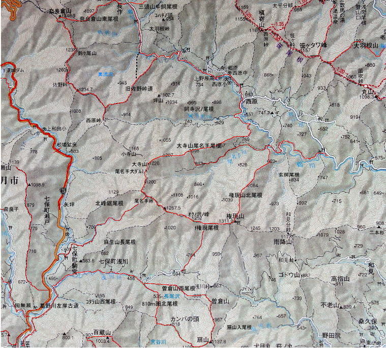 葛野川と鶴川に挟まれた山域・・ルートと山行表