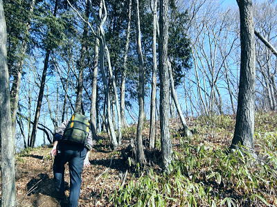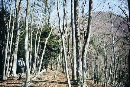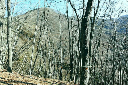 | 三頭山笹尾根大ツイジを南北に縦断. 熊倉山とトヤド浅間・・奥多摩.奥秩父東部ルート図.山行表 三頭山笹尾根Top 笹尾根大ツイジ 2008年04月. 南橋から948m点尾根を経て上平峠(数馬峠)―笹尾根に乗り三国山字副尾根から佐野川峠.上岩林道と繋がり名倉.石楯尾神社bs 2011年02月. 井戸bsから熊倉山省武連指尾根を詰め大ツイジを経て浅間峠―トヤド浅間から檜原街道京岳bs 2016年08月. 熊倉沢右俣の陸軍滝.熊倉沢右俣二俣から815m点北支尾根.笹尾根860mコブから笹尾根軍刀利山長尾尾根を下降・・南郷bsから周回 2023年03月. 林道終点から熊倉沢右俣から815m点北東支尾根―大ツイジ860mから.栗坂峠.芦沢山を経て下伏.八幡神社から間道.旧道を経て新井bs 2024年05月. 南郷bs―熊倉沢―陸軍滝―815m北支尾根―笹尾根860mコブ―小棡峠南尾根―日武連山―西原古道―威王院―沢渡―寺尾H=.―新井bs 2023年08月. 林道終点から熊倉沢左俣右沢から熊倉山北尾根―大ツイジ.鶏冠尾根を通し高岩山東尾根からメシモリ岩山南東尾根を下り陣馬高原下bs 2025年04月. ―熊倉林道.陸軍滝―右俣左沢右岸道―815m点―860m圏峰―熊倉山南西尾根―618m―470m西尾根―県道上野原棡原線.合H=新井bs 2025年05月. 鶴峠bs―奈良倉山―佐野峠―坪山分岐―西原峠―小寺山―大寺山―大ダルミ―三ッ森北峰鋸尾根―カワツバタ窪ノ頭―小姓..H=jr猿橋 ・・笹尾根861m圏コブ直下の850m平尾根を何故か2008年に笹尾根から見付けてから好む. 晩冬の相模湖.境川から朝方の陽溜まりの尾根から笹尾根の背稜にでる。北面とは残雪の接線にとなったヤド浅間を越え.南秋川の檜原街道へ 井戸bsから熊倉山省武連指尾根(南西尾根)に乗り.背稜の大ツイジを歩む。浅間峠からは春雪残るトヤド浅間北東尾根. 2011年02月19日.L松村m長塩 井戸bsから熊倉山省武連指尾根 大ツイジ.浅間峠からトヤド浅間北東尾根・・京岳bs 日曜毎に予定が埋まり.N氏との幼馴染山行は延び延びになっている。高尾山でも好いと冗談が飛び出すほど彼の体は回復した。 笹尾根の熊倉山南西尾根から笹尾根を縦断し.下山は直線的に下れる熊倉山北尾根か.長尾尾根を予定していたが彼も知るトヤド浅間に変更し. 大ツイジから浅間峠へ抜け.トヤド浅間北東尾根から矢沢へ下りることにした。 西原古道 熊倉山南西尾根の末端には542m三角点峰の省武連山(しょうむれやま)があり.付近に字名は「聖武連」とあることからから省武連指尾根と呼ばれている。 省武連指尾根ともいうべき末端にはゴルフ場が半ばに広がり.公共交通機関の便が悪く.井戸からの下部は省いている。 ここを確認し下部まで歩いたのは.それから14年の月日が経ってからである。その為熊倉山南西尾根と記していた。 半ばの.レイク相模CCまで下ったのは2025年04月になってからで.傘寿に近い.お結わいにと路線バスのない県道で車に拾われた。 又「棡原地区では聖武連.大武連.日武連のように「連」を用い.西原地区では小中群.大武群.大群.佐群のように「群」を用い. どれも山を意味する古代の百済語。山といっても小高い丘のようなものであり.北側の野道(地形図「猪丸」の破線路)を 辿ると労することなく山頂を踏める。「甲斐の山旅・甲州百山」によると広くこの野道は「西原古道」というらしい。 熊倉山966mは三国山の西隣りに位置し.再び山を登り始めた3年前に笹尾根を高尾まで縦走する為に頂を通り過ぎている。 当時は何時雨が降っても可笑しくない空模様で薄暗さが漂う侘しい頂だったことを覚えている。それ以外は殺風景な頂で 夕暮れが迫り急ぎ下っている。記憶では頂にベンチが幾つかポツンとあったと思う。 鶴川下流の左岸支流.黒田川に入るのは3度目になる。コースはこの右岸尾根を詰め,大ツイジからトヤド浅間を経て.最後は変更して 檜原街道.京岳に下りていた。日帰りだが時間は十分取れるコース。新雪に見舞われば軽くラッセルし.ゆとりある炊事と入浴をメーンに贅沢な山行を選んでいる。 5日間の冬日が続き.その後東京は積雪5cmを記録。 南面に当たる南西尾根は降雨になり.積雪が全く見られず呆気ないく笹尾根にでている。 ただ大ツイジでは疎らな春雪を踏み.時には一面の雪斜面を横切ってもいた。そこをほろ酔い加減で北面の雪面を踏んでいる。里にでてからは「瀬音の湯」に寄る。 jr上野原駅北口の台地.8:132月19日(sut)快晴 jr御徒町6:21=神田.特快6:32=7:31高尾合流.大月河口湖行:46=8:08上野原富士急山梨バス.¥310. 8:28 =8:50井戸bs9:00一9:55(650m地点)10:05一11:03熊倉山.大12:35. 6時少し前に自宅をでる。自宅の斜め前には東西に延びる大通りがあり.東方の空は夜明けの白みを滲みだし. 幾らか朝方の明からみを取り戻していた。都道.春日通りにも車の往来が出始めている。今日は暖かくなりそうだ。 乗り換える神田駅のホームからはビル群の間を縫い.赤く朝焼けの雲塊が望まれた。 車窓から視界が開かれ武蔵野を横切り始めると都心を埋め尽くしていた厚い層雲の雲堰との境が見上げられるようなる。 隔てる先に紺碧の蒼空が望め.その真下の境を電車は縫い.