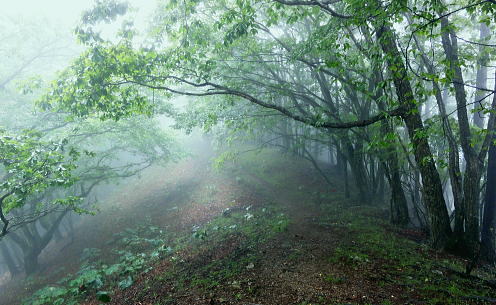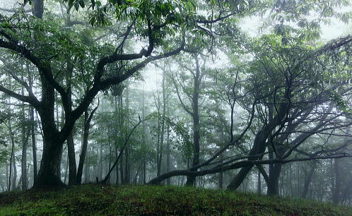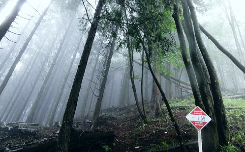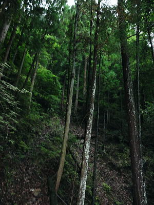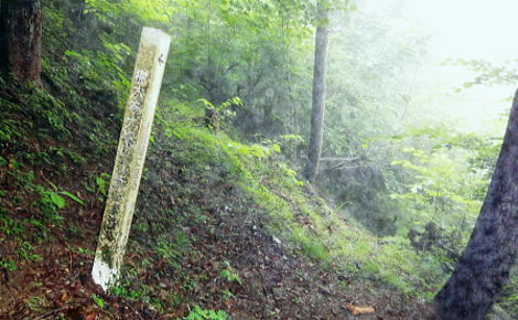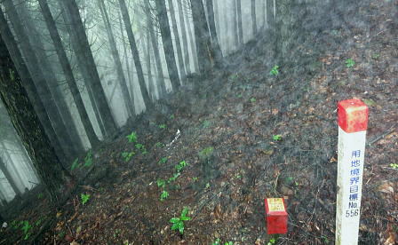 | 多摩川支流左岸の小中沢・・小中沢流域概念図 奥多摩.奥秩父東部概念図.山行表 2011年08月. 狩倉山.山ノ神尾根から六ッ石山(小中沢ノ峰)―トオノクボから榛ノ木尾根と小中沢右岸尾根と三ノ木戸むかし道・・境集落北端 2016年03月. 城山・三ノ木戸から小中沢下段径路を経て榛ノ木尾根・境からは奥多摩むかし道・雌鹿の大群団 2018年05月. 新緑の東日原から涸沢ノ頭涸沢尾根―六ッ石山に立ち.榛ノ木尾根の防火帯を目指す・・イソツネ山南尾根から梅久保へ 2020年03月. 滝ノリ沢bsからアシダキ沢右岸尾根と榛ノ木尾山東尾根―下段・中段経路を経て榛ノ木尾根.中腹道の伐採帯を抜けカヤトの森・・境地区 2020年09月. 桃ケ沢bsから井戸小屋尾根と滝ノリ沢の奇岩―榛ノ木尾根から小中沢上流々域周辺の経路を歩む・・三木戸林道・城山旧道・jr奥多摩 榛ノ木尾根の防火帯に入り小中沢中流の右岸尾根. 山葵田から三ノ木戸むかし道を経て谷間に踏み跡を見付け境集落に直下する。 霧雨舞う六ッ石山から土砂降りのトオノクボを経て榛ノ木尾根―小中沢で鹿棚のジヤングルに奮闘.小中沢右岸山腹道から575m点を経て境集落へ直下 山上集落から山ノ神尾根 六ッ石山から榛ノ木尾根.小中沢右岸道・・本降りと親鹿の番・鹿柵のジャングル 六ッ石山と榛ノ木尾根 右奥が六ッ石山と狩倉山.:52本仁田山権指尾根の左側の樹林の切り開きからの展望・・2016.03.18/9:50 背の扇状に広がる展望は六ッ石山の榛ノ木尾根で全貌が姿を現し.手前に覆い被さるのが三ノ木戸山。 この2週間前には三ノ木戸から小中沢左岸道を経て.榛ノ木尾根を尾根に入っている。左の伐採された大斜面の跡地がカヤトの原と杉の森。 雲取山石尾根 六ッ石山.水根山への分岐.12:34右手の谷間は楢沢.正面の先は大堀の鞍部を経て将門馬場に至る 六ッ石山分岐 確り踏み固められた登山道にでる。分岐の道標には「←鷹ノ巣山.七ッ石山. 石尾根縦走路.奥多摩駅→」.「↓六ッ石山頂をへて水根」とある。 ここで今日.最初で最後の男女ペァーパーティと出会い.ハンノ木尾根から登ってきたと云う。奥多摩駅から入山し.雨具の完全装備でペースはよさそうだった。 私の下るルートを登ってきた若者達は鷹ノ巣山にでて.稲村岩尾根を下ると言い残していた。 別れぎは「鷹ノ巣山で一時でも見晴らしがあれば!」と彼は言う。私は逆方向に下る方だが考え願うことは同じだった。防火帯を綴る登山道. 周りは瑞々しいまでの清楚さに満ちている。この時期だけの重なり合う緑の色合いが雨粒に洗われ.目を癒し体に触れる霧雨が快い。 石尾根六ッ石山 ガス下の向かいは奥多摩湖.12:39石尾根から少し南側に外れると六ッ石山1478.9mが聳え.3等三角点標石がある・・小中山.小中沢ノ頭.タル沢ノ峰 基準点名は「境」で.榛ノ木尾根の下端の多摩川中流の境橋左岸側にあり.下山した集落の地名になっている。 狩野山―榛ノ木尾根 12:20石尾根狩野山北部:30一12:34六ッ石山分岐一12:39六ッ石山一12:55大13:15一13:30トオノクボ.榛ノ木尾根 一13:53反射板一13:56南への分岐⇔14:30. 一14:02(1/158地点)一14:14巡視路白柱一最初の分岐一15:00枝痩せ尾根上 一15:30小中沢河原一18:25荒れた小屋一18:45境bs19:01. 六ッ石山 分岐から左前方に折れ石尾根と分かれる。小中沢と水根沢との分水嶺を進み.落葉松の疎林に囲まれた小広い草付きの六ッ石山に立つ。 防火帯に山道が切り開かれ.ガスが湧き上がる丸びを帯びた広い石コロの台地にでる。 山名標に道標が立ち.目立ち.数多く積まれた石コロのケルンがが見受けられた。 辺りに散乱しているゴロ石は昔.荷上げのボッカ訓練のために運ばれた多摩川の河原石だったと云われている。 又過っては六ッ石山を源とする小中沢があることから境集落では「小中沢ノ峰」と呼び.一方樽沢が源の日原村では「樽沢ノ嶺」と呼ばれていた。 そして時代の流れに合わせ.奥多摩湖側の水根から最短の登山コースとして.賑やかな山頂だったのだろう。今日は私独りが立つのみ。 水根に延びる防火帯の尾根を南下 榛ノ木尾山(扇ッ平)1364m付近.12:55昼食 南面のトオノクボへと霧雨舞う防火帯を南下し.保基合ノ頭(ほきあいのかしら)1450mから右脇に牛首のコブ1410mにでて更に南下し. 長尾ノ頭1380mへと幾つもの小コブを越えている。トオノクボで昼食と思うが距離感が掴めず.小広いコブの榛ノ木尾山1364m. (扇ッ平)辺りの大木下で遅い昼食を摂っている。 弁当箱には白米に大きなシャケの切り身が豪華に乗っていた。妻の創作弁当. それにお茶漬けの素をふり掛け. ポリ500ccの1/3程のお茶を足せばできあがる。丁度よい塩っぱさが食欲をそそり.シャケの脂身と皮も美味かった。 頭上から樹冠を抜け.一時はドシャ降りの雨に見舞われた。ストレートに大きな雨粒が塊となり落ちてきた。前も見定めぬスコールになる。 傘はあっても無意味な状態になった。雨足が早ければ.落ちてくる雨音も激しい。バケツに貯めた水が逆さまにひっくり返ったようだ。 激し過ぎ音に音が消されているような激しさ。その後は霧雨が降ると