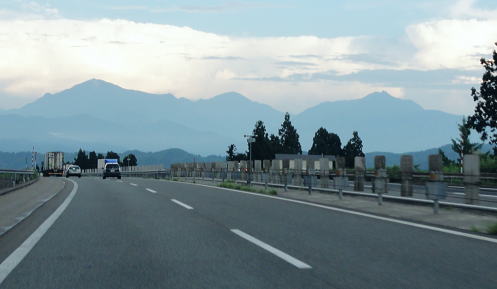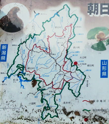 朝日山地森林生態系保護地域・・林野庁.東北・関東森林管理局左沢〜小国街道〜関越道 11:40テルメ柏陵「健康温泉館」=小国街道=15:40道の駅「円川」=16:00日本海東北道.荒川胎内IC=17:30越後川口= 19:00赤城PA.蕎麦=鶴ケ島IC(¥7.000が¥4.800)=20:30東上線若葉.¥500急行20:47=21:30池袋. 小国街道 昼食を摂り湯上りの体で左沢からR289を南下する。 最上川本流の左岸沿いに長井市に入り.jr米沢線を横切ると白川沿いのR113線.小国街道(越後街道.米沢街道.)に入る。 朝日連峰南端の裾野を時計回りにぐるりと街道は延びている。 飯豊町に入いると街道は米沢飯豊線を左に分け.小さくなった最上川を遡る。 狭まりだした山間に入りだし.緩い傾斜の直線からややうねり最上川を更に遡る。そして源流を越え宇津峠を越える。 最後に朝日岳を望む 背は飯豊連峰.14:00ここは最上川と荒川との分水嶺でもあった。車を降り飯豊連峰を眺める。強い陽射しに変わったにもも係らず.山稜はガスに包まれていた。 車は峠で新宇津隧道を潜って小国町に入る。ここで日本海坂田に流れ込む荒川の下りに流心は変わっている。 深く狭まりだした渓谷から朝日連峰南西端の登山口.五味沢からの道が合わさる街道は小国の街並へ。 今度は左岸から飯豊連峰に辿る玉川の出合が本流に流れ込み.この辺は渓谷美に優れ温泉地も多い。 3年前梅花皮沢石転び沢を詰めた時はjr坂田駅からタクシーで通った街道でもある。その街道を下っている。 その節は豪雨で米沢線は不通となり.荒川は濁流に揉まれていた。今は清い流れが清涼感を漂わしている。この山行も下山はT先輩にお願いしていた。 街道が次第に直線になると坂田の水田.平野に飛びだした。 jr坂田駅の南側で出羽街道(羽州浜街道)の十字路を横切れば海岸線を走る日本海東北自動車道の起点にでていた。 そこからは荒川胎内ICを海岸沿いに南下.長岡JCTからは東京へ関越道に乗っている。 越後川口SA 途中で寄った越後川口SAの台地から見下ろす魚野川々畔の田園風景の景色には驚嘆させられていた。 大河が大きく孤を描き緩やかな流れが丘陵を抜けている。田園と河岬に集まる集落が箱庭的な美しさを示していた。 夕陽を浴びたカラフルな家々が1軒ずつ斜陽した陽差しを受け.遠くからも眺められた立体感は絵葉書的にも思えた。。 広く見下ろされる大地に煌めく街並や田園が私の心を動かしている。後から思うと.もう1度見定めたいと思うほどの豊かな田園風景だった。 自然と建物との調和がとれ色合いがよい。SAの台地に登るとお伽の国の扉を開いた気を起させていた。カメラは車中に忘れたのが残念, 浅草岳.未丈ケ岳方面 越後川口SAを過ぎ.16:00 魚沼駒ケ岳.中ノ岳.八海山 堀之内PA付近より越後三山.18:00小出を過ぎると魚野川沿いの田園風景が広がり.関越道がその穀倉地帯を貫いてゆく。 豊かな穀倉地帯は途切れることなく続いている。その背後に迫るのが越後山脈の山々。その山に掛かる白雲が切れ.青空が山の肩に覗きだしている。 坂戸山633.7mと八海山 魚沼平野より.18:04六日町IC付近.八海山と中ノ岳が逆に位置して見える 魚沼中ノ岳 塩沢付近より高倉山と中ノ岳.18:03巻機山塊.金城山から続く坂戸山 塩沢付近より手前金城山1834.7m峰と牛ケ岳.巻機山・・正面が先々月登った雲洞コース 西側からの斜陽した日差しを受け.今は弱まり洛陽を迎えようとしていた。裾野に田園と集落が描かれ.稜線が絵になっている。 陽はもう向かいの山に落ちようとしていた。2ケ月前にこのメンバーで登った金城山の上に巻機山と割引岳の山々が望まれている。 懐かしい金城山の全容を目の前にして日没を迎える。撮れるかどうか走る車窓から岳を見る。 滝島氏 明け方からから一日中走り回って下さったT先輩. 飯豊山に続き今回も迎い車. 鶴ケ島から東北道に入り.小国街道から日本海自動車道.関越道と 大きな円を描くルートが描かれている。何時もの解散場所の東上線若葉駅に戻ってきた。今回も古寺鉱泉でタイミングよく再会し感激し感謝の言葉も失っている。 ただ感謝するのみだが何時も言葉に出すことはなかった。皆思うも照れ笑いで誤魔化している。お疲れ様でした。ありがとうございます。 総走行距離848km/24日スカパ布製登山靴・・21.433歩 21日.泡滝ダムから大鳥池タキタロウ山荘T 22日.大鳥池から狐穴小屋U 23日.狐穴小屋から朝日避難小屋V 24日.朝日小屋から古寺鉱泉=小国街道.関越道・・最後はブヨとアブ |