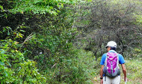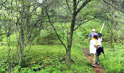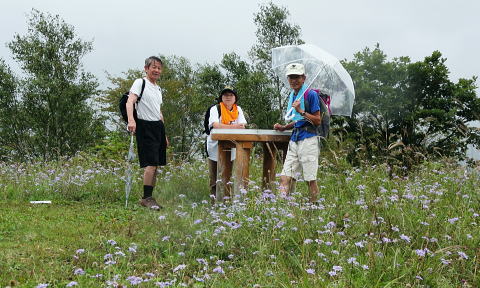 | 信越国境山. 湯ノ丸山々行は現地に入り荒天で中止・・北軽井沢と浅間牧場Top 北軽井沢生活W.茸狩りと薪作り・・ 20011年09月17〜18日 m見城.黒岩.滝島.鈴木.松村.(立松夫婦) 前日9月16日.夜9時過ぎに北軽から「今雨が降り始めた!」と見城先輩から電話があり.本降りのようだ。 予報では更に明日も崩れる見込み。吹き更にしなる湯ノ丸山々行。 予定では鹿沢温泉に地元在中の立松君を含めメンバーが全員が集合して.地蔵峠から烏帽子岳.湯ノ丸山をピストンする予定だった。 来春のOB親睦会鹿沢行では角間山(かくま)をシュノーシュで登る偵察も兼ねていた。 ただ北軽に入り待つも雨は降る続いている。時々激しく叩き山行は中止に.雨上がりを狙い.茸狩りと薪作りに変わっている。 鼻曲山登山口 二度上峠.9:58浅間隠山に比べ丸っきり人気のなかった登山口 9月17日(sat)雨.時々途切れる jr御徒町5:31=東上線池袋.準急6:15=6:45若葉=鶴ケ島IC=高崎IC=10:30北軽井沢S邸. 天気図では台風15号が沖縄南方に3日間も足踏み状態が続き.16号は関東南方から挟む形で北進している。 その間には強い南風が本土上空の秋霖前線を刺激.東京でも夜半は強雨となる。朝方の若葉駅に至る電車では天気雨に出会っていた。 信越道からは西上州の山々が望められるも,信越方面は厚い雨雲の中だった。十二上峠への道もガス濃く,視界は0に近い。 着いた北軽では気侭に途切れることなく.強弱に揺れ動く降雨に見舞われていた。そして湯の丸山山行を諦めた。 浅間牧場 S邸11:20=11:35浅間牧場売店⇔12:25天.山避雷所.大13:10一14:00白糸コース中間地点一16:00牧場売店=16:15S邸. 浅間牧場天丸山 今まだ頂を埋め尽くすく松虫草.12:19昼食 時折雨が強く打つ。悠著する中.K氏に誘われる間々に茸狩りへ浅間牧場へ出向く。 一昨年訪れた時より一ケ月ほど早い。牧草はまだまだ緑濃い丘が現れ続いている。傘を差しては畳み.雨粒を見つつ天丸山へ。 天丸山下にはコンクリートの筒箱のような避雷所が設けられ.ここで雨宿りがてら昼食を摂っている。 ワザワザ来て食事を摂る所が避雷所しかないが.と云われるも一番よい所だった。食事は前回朝日岳で好評だったタラコスパゲティー。 コンロを点ければ手順よく炊事は進んでいる。 まだ緑濃い牧草地.13:17国境平への道を横断し白糸滝コースへ 13:48散策路で暫しモグラの綺麗に掘られた穴を見る。 牧場から地震測量所の脇を抜け林道を横断.一昨年訪れた雑木の森へ。湯川枝沢源流の右岸沿いを歩む。 まだまだ若草色に染まる森 源流の谷底沿いはシダ類が被う 14:22天然の舞茸? 調べると云うS氏.14:08 茸狩り 先輩の目的は食事より茸採りにあったようだ。今朝別荘近くでは今まで「クリタケ」と呼んでいた「ジゴボウ」を何房か見付けて, 逸る気持で出掛けてきた。牧場を抜けた先の白糸コースへ。前回見付けた落葉松林の雑木帯に目を向いていた。 一昨年は白糸ノ滝へ散策した折,幾つもの大きなジゴボウを小径沿いに見付け.茸狩りをしていた。 まだ今回は2〜3週間早いとのこと。子.孫のような小さなジゴボウを各々幾つも見付けはキャンピフャイヤーではいい食材になる。 花びら茸 天然の舞茸? は翌月,吾妻連峰に出向いた折.正式名はハナビラダケと知る。 美味い茸で日本では夏から秋にかけ落葉松や楢などに寄生する白い茸。 中国や韓国では殆ど見られることのなく.天然のハナビラダケは幻の茸と呼ばれ非常に珍重されている。 又成長過程で木の栄養分を吸い上げる特性を持ち.日本では世界に先駆けて人工栽培を開始して注目されるようなった。 ハナビラダケは癖がなく料理方法は何しても合い.シャリシャリした歯ごたえがよい。 又犬や猫のガン対策にも最近注目されている。特許「生理機能活性を有するハナビラダケの菌床作成方法」 帰路の径 15:14ススキ原手前で珍しい標柱.14:47 牧場にあったススキの原を抜ける 冷雨と秋風に揺れるススキの白い穂.見頃を迎えると茎まで白金色に変わり.素朴な風景が原の広さにマッチさせていた。 白い穂は日差しがでれば黄金色に光り.揺れ動く。 頭には雨除けのブルーシート.9月17日7日20:27買い出しをして4時にはキャンプフャイヤーの支度に入る。昨年は激しい雷雨に叩かられた。 今回はクヌギの大木を支えにシートを張り万全を尽くす。 地元に住む立松君夫婦も参加。中庭に雨除けのシートを張れば雨にも負けず賑やかな夜になった。 彼は明日.日帰りで守門山に出向く。 アプローチはここから2時間半.酒を呑み干し・・24:00消燈 9月18日.晴・・クヌギの森に立つ別荘 陽が昇り朝を迎える.9月18日8:10手前が3年前に建てられた別荘と奥がカナダ産ログハウス 朝食に合わせるよう薪作りに滝島先輩も訪れる。信越道を松井田で降り.碓氷峠を越えてきた。 今回は通り角の別荘地が売り出され.半ば枯れ伐採された丸太が積み重ねられていた。少し整地したようだ。 売り出しの旗が2本立てられている。薪作りには立木を切り倒す間が省け.その上5人と人数も多い。 電動鋸,鉈がフル活動し.冬に備え十分な