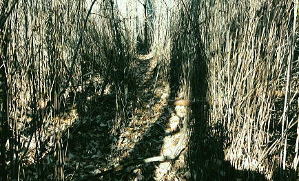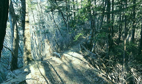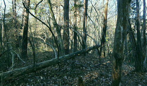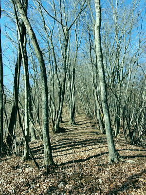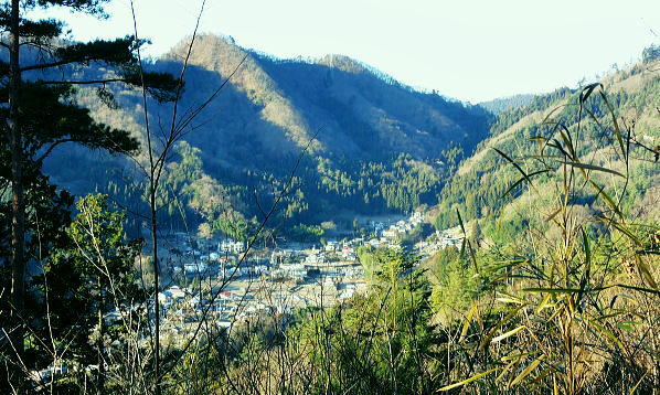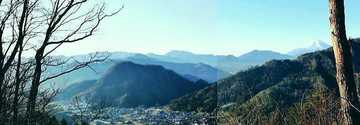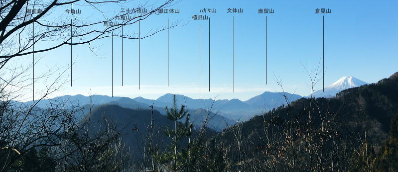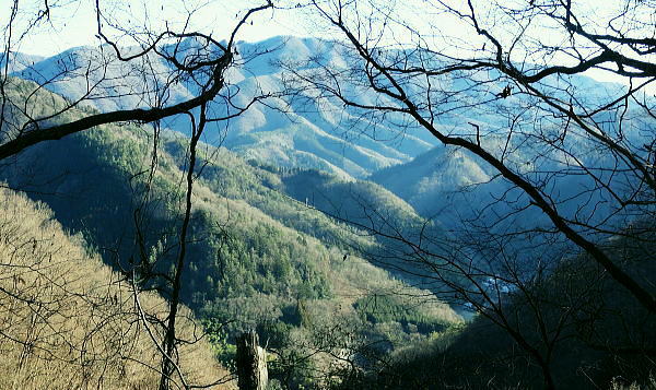 | 大菩薩連稜南部. 浅利川左岸尾根の晴明盤1・・浅利川流域Top 桂川葛野川流域Top 2012年01月.冬木のセイメイバン南東尾根を経て大垈山東尾根から宮地山・・田無瀬bsから葛野川右岸用沢川を周回 2014年01月.林沢戸からセイメイバン東尾根を経て深城線鉄塔尾根に乗り.さくら峠.高ノ丸から葛籠峠―浅利川左岸尾根下端の稚児落としと岩殿山 ・・奈良子川流域の青年学級・絵図 晴明盤は吹切尾根にある野脇ノ峰東尾根の大垈山から南方に延びる尾根に位置し.葛野川左岸沿いの大月市にある標高1.006.2mの山。 セイメイバン.清明盤.晴明盤とも表記されている。清明は重要事を占う時必ず用いた「式盤」を初めて復元し.陰陽道占術を決定せしめている。 又陰陽師の安倍晴明が麓の村に水を引こうとしたが失敗して死亡したと云う伝説が残されていた。 南大菩薩連嶺.東面に連ねる深城線鉄塔尾根・・セイメイバンを北上し.野脇ノ峰東尾根に乗り.東方の大垈山から尾根末端の宮地山に立ち.里は用沢にでる。 葛野川支流水俣川二俣の用沢川を取り囲む尾根を周回 田無瀬を起点にセイメイバン南東尾根から大垈山―宮地山から用沢・林沢戸に下り.奈良子入口から田無瀬 2012年01月13日.単独 小和田からセイメイバン南東尾根・・道志と葛野川流域の景観 北上し大垈山東尾根から宮地山.用沢 今回は暮れの30日に本社ケ丸を訪れた帰路.列車で知り合った単独行の方から最近の山行ではセイメイバンがよかったと耳にし. 楢ノ木尾根の南面に位置するセイメイバン南東尾根を小和田から詰め.深城線の鉄塔尾根に乗り北上し.大垈山へ。 吹切尾根の野脇東尾根の二重山稜の分岐.大垈山東尾根の肩にある宮地山に立ち用沢に下り田無瀬に戻る形で周回した。 南大菩薩連稜東面の山並みと前衛に並ぶ深城線鉄塔尾根 三ッ森北峰よりの展望・・2013.05.17/11:35セイメイバン南東尾根から大垈山―宮地山を周回.したルート写真。 左上が御坂山地・・三ッ峠山.鶴ケ鳥屋山と本社ケ丸. 左下が草木の集落. 晴明盤南東尾根南面と南面に開かれた畑倉地区 日影地区下り.右端が百蔵山右奥が権現山稜で.右端が百蔵山の長ぞうり沢の大ガレ 日影地区より撮影・・2015.03.22/14:46 ムジナ御前西尾根から葛籠峠越えし日影の集落入り.並行する大沢川を隔て.晴明盤南東尾根が横切るのがつぶさに観察できる。 斜陽した薄日を浴び.里山の長閑な風景に思われる。裏山として幾つもの山道が綴られている。 東尾根と合わさる灰焼場のツメまでは殆どが平坦な尾根.細かな起伏が波打ち綴られていた。尾根下端の裏側が小和田の集落になる。 大菩薩山連嶺の東面に位置する牛寝通り.長峰は数年前に歩んでいる。 南大菩薩連嶺の支尾根を主に歩み.東部の山域はまだ私には未知の領域が多い。吹切尾根・楢ノ木尾根の林道は冬季通行止. 又大峠まで1人で入るにはタクシー代¥9000が馬鹿らしく.入山の機会を失っていた。 この山域は大垈山が中心をなし.地形的には吹切尾根の野脇を頂点して.浅利川源流を横切る野脇東尾根を追い.金山峠を越え大垈山に至る。 ここ大垈山で東側と南側に2つの大きな尾根を分けている。南方は浅利川左岸尾根で深城線の鉄塔が連なり.晴明盤を越え桂川に没している。 主尾根の小コブに見えるセイメイバンは東側に東尾根と南東尾根とに2つの支尾根を派生させている。南下すれば高ノ丸.笹平を経て 稚児落しから桂川末端の岩殿山に至り.末端からは桂川を隔てた大展望が得られ.南方に道志・御坂山地へと広く開かれる。 この深城線の鉄塔尾根をサクラ沢峠・トヅラ峠へと更に下るとjr大月駅に直接下りられる。送電線は尾根の殆ど真上に並行して延びている。 前回暮れに本社ケ丸を囲む幾つもの鉄塔巡視路尾根を綴っている。その為同じような鉄塔を綴る尾根を今回は出来るだけ敬遠し.北回りを選んでいた。 そして用沢川を周回する形で.大垈山から宮地山へ回り込むことにした。 大垈から東側へ延びる尾根は用沢川左岸尾根に当たり東端は宮路山. ここから派生する尾根末端は小俣川の左俣用沢川沿いに用沢へ下りている。 右俣の奈良子川沿いには矢竹・奈良子集落があり.小俣川沿いの扇状に広がる丘陵には林沢戸の集落があり.薬師堂がある。 又その下流にはセイメイバン東尾根に取付きになる林集落があった。 滝子山と下弦少し前の月 夜明けのjr猿橋駅北口広場より.6:551月13日(金).快晴 jr御徒町¥1450. 4:36=4:39神田:41=5:42豊田快速:48=(5:59高尾.大月行6:01) =6:34猿橋.富士急山梨バス浅川行¥270. :53=7:10田無瀬bs. jr中央本線 jr環状線の御徒町駅で始発の次に乗車したことから今回の山へのアプローチが始まっている。 中央線東京始発に乗ると豊田発大月行の中央本線の始発に接続され.もう馴染みの電車になっている。 JRのシステムでは同一列車だが豊田~高尾間は中央線快速電車。時刻表を見ると中央本線は新宿ではなく.高尾駅発になっている。 大月以西は次の松本行鈍行が中央本線の始発になり.兎も角猿橋駅で下車した。 富士急山梨の路線バスは大月駅発浅川行に接
