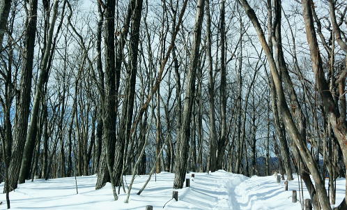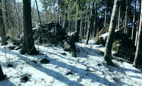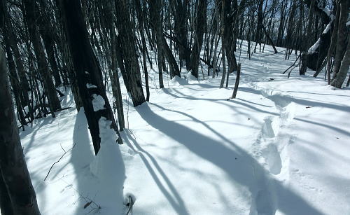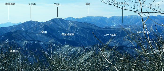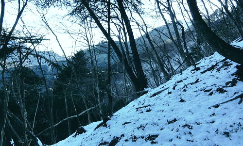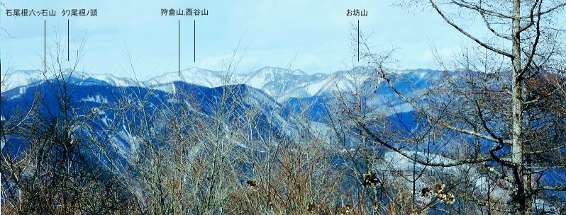 | 奥多摩三山の1つ御前山3を南北に横断する。多摩川むかし道からシゲクラ沢右岸尾根と尾根通しを経て北秋川の小岩・・奥多摩御前山Top 「惣岳の荒」と呼ばれる渓谷を知り.奥多摩むかし道.惣岳バス停から雪白く積もる御前山へ取り付く 多摩川からの惣岳山シゲクラ沢右岸尾根はトレースされていた。御前山湯久保尾根・尾根通りはラッセルし.北秋川に至る 2012年01月30日.単独 シゲクラ沢右岸尾根から惣岳山.御前山・・駅前の「丸花」と新雪をトレース 湯久保尾根.湯久保山南西尾根から尾根通し・・久し振りの春雪をラッセルで刻む 35年ほど前.子供達と数回,.奥多摩に入っている。それから長い年月を経て.この数年で再び奥多摩山域に入山するようなった。 5年ほど前にまず低山とは云え川苔山に登り.頂からの展望を楽しむ。ただ殆どの山々は山名も分からず.そこで奥多摩三山を教えて頂いている。 それほど奥多摩の山々は音痴だった。私が次に選んだのが川乗山の頂で教わった御前山。 jr奥多摩駅から鋸尾根を詰め御前山からは小河内峠にでて天平尾根を下り.少しでも地形を知ろうと考え.尾根歩きを続けていた。 その後.丹沢・道志・奥多摩に大菩薩とバラバラと云うほど点々と登り.始め.まずは山域の概念を掴むことに専念している。 そして御前山からは周りの山々を次第に取り囲むよう眺められるようなると今回は2度目の山行は縦走ではなく.町界尾根を南北に横断する形を取っている。 今回は「惣岳の荒」と呼ばれる渓谷を知り.御前山から北秋川流域へと繋ぐことを思い付く。惣岳山シゲクラ沢右岸尾根を詰め 御前山湯久保尾根の南面に派生する支尾根. 山上集落が点在する「尾根通」ををラッセルし.雪解けの尾根へと北秋川へ下っている。 ただ前回の大月北面の宮地山と同様に早い山越えになるかも知れない。その折は北秋川林道も初めてのこと。少し里道を歩こうかと考える。 今回一番の心配は取付きのシゲクラ沢の渡渉にある。靴が潜るようなら裸足で渡ればよいが。 ![]() ただ水深のある所では渡れず.朝方は初鼻とは言えは少し重い気持を抱いていた。それも沢底に降り.水量の少なさにホッとした。 春雪に覆われる山は久し振り.新たな芽ばえが生まれればよいが。 惣岳山シゲクラ沢右岸尾根 ![]() 右下が栃寄沢沿いの栃寄の集落と右端は小河内ダム。猛暑トレーニングで九竜山の伐採跡地からのの展望・・2010.08.05/9:24 惣岳山シゲクラ沢両岸尾根 本仁田山々頂から南東面・・2016.03.18/11:50根岩越えをし本仁田から平岩山尾根・妙指尾根と綴った折の頂から展望。 手前の右岸尾根の右下から二又の枝尾根が分かれ.西側の枝支尾根から詰めている。鉄塔を過ぎると810m圏で主尾根に乗っている。 惣岳山シダクラ沢右岸尾根 三ノ木戸林道(小中沢林道)の展望台より・・2016.03.04/9:00城・三ノ木戸から小中沢下段径路を経て榛ノ木尾根から「奥多摩むかし道」を歩んだ折.林道の林道から望む。 この時は城山南尾根の旧道で30頭近い雌鹿の大集団と出遭っている。背稜は鞘口山に御前山と惣岳山. 春雪 相模・武州・甲斐地方に雪が積もるのは冬型の気圧配置が崩れ.南岸低気圧が太平洋沿岸を通過するときに起きている。 又この低気圧の動きが規則的に移動するようなると春が訪れ.今回の二つ玉低気圧は大荒れを起こし.それが過ぎれば春の暖気を呼び込むようなる。 先週来の大寒波が裏日本沿岸を襲い,典型的な冬型になり.各地で豪雪をもたらしていた。 週半ばにはその偏西風が一度大陸へ北上し.太平洋沿岸沿に接近した移動性低気圧の影響をもろに受け.表日本にも大雪をもたらした。 関東でも氷点下の冬日が続き.その後は再び厳しい西高東低に変わり.奥多摩でも−6℃を記録した。 東京でも日陰はまだまだ除雪した雪塊が街の至る所で見受けられていた。 奥多摩御前山 御前山の左肩に聳える惣岳山から北面に流れる多摩川に向かい.シダクラ沢を隔てる2つの支尾根を延ばし.共に多摩川沿いに没している。 その1つのシダクラ沢右岸尾根は栃寄り沢とシダクラ沢との分水嶺を成し.尾根末端の812m点の右支尾根はむかし道の吊橋.シダクラ橋に没している。 左岸尾根は大ブナ尾根の名称で尾根伝いに登山道が綴られ,1010m圏点からサス沢山を雍する尾根を分け.852m点から左支尾根を下ればシダクラ橋。 右支尾根のむかし道は進所橋にでいる。サス沢山越えは奥多摩湖東岸に没していた。今回は足元から新雪被る右岸尾根を詰めることにした。 青梅街道から久し振り御前山を詰め.湯久保尾根通から北秋川林道に下りる。春雪の積った御前山の山陰になる北面では氷点下に落ちている。 シゲクラ沢右岸尾根は短い距離ではあるが雪尾根に覆われ.膝上のトレースが続く。午後には御前山を越え.念願の木洩れ日の湯久保尾根に乗っている。 春雪を自ら掻き分けながらラッセルし.雪の感触を味わいながら尾根通しから小岩へ下りる。 1月30日(月).快晴後曇 jr御徒町5:00=神田5:12=5:57武蔵小金井.青梅行快速6:05=6:49青梅:55 =7:28奥多摩.西東京バス小