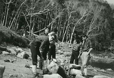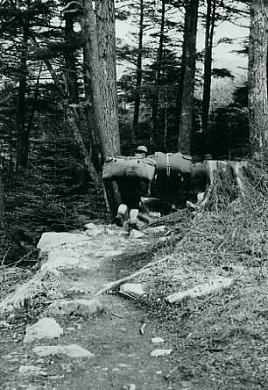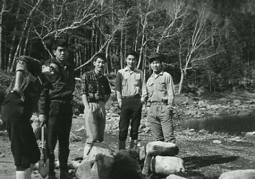 | 北八ヶ岳.新人養成合宿.V s42年(1967年)05月18〜21日.分散縦走集中形式.cL松村.sL和田.m男子27名.女子12名. 新人養成合宿.山域選定に関して 新人養成偵察s42年04月.渋ノ湯―双子池(集中地交渉)―八千穂 新人養成合宿に臨んで 今年は例年行われていた奥秩父を離れ.森と湖に囲まれた北八ヶ岳で行うことにした。 都会の雑踏を逃れ自然の懐に入るのは.我々の持つ情熱の一つでもある。 新部員諸君にとっては何もかも受動的な立場におかれ.辛く苦しいこともあろう。しかし山はそれと共に厳しく又.暖かいものである。 それを知り苦しみを乗り越えてこそ.君達の心は満たされるだろう。怪我せぬよう頑張って.山に挑み楽しんでもらいたい。 奥秩父から北八ヶ岳へ変更 数年の山行を集計すると積雪による影響が甚だしく多く.新人には時には酷と思われる。 又.梓川の林道の開発も拍車を掛けている。その上.残雪の必要条件であり.北八を選んだ。ただ欠点は高度差が少ないこと。 結果的にはやはり懐の浅さを考えさせられている。一長一短であるが.もう1年続けてもらい.後の判断に委ねた。 新人養成合宿 新人養成は森と湖に囲まれた北八ヶ岳で男子4パーティ,女子2パーティ.計5コースで行われていた。 北八ヶ岳は来月には更なる観光ルートが幾つか開かれるが.我々はその前に足を踏み入れることができ. 残雪も思いのほか少なく順調に行動を進めることがだきた。 集中地は現地調査の結果.双子池と決定。 20日には皆元気に集中地に顔を合わせ.池畔キャンプサイドで最後の一夜を過ごす。 最終日21日は男子蓼科山越え.女子は広河原を下り親湯で落ち合っている。 新合宿地の為.偵察不足もあって全パーティが集中できなかった事が残念だが.幸い合宿中.好天が続き, 茅野より一列車遅れて急行で全員無事.新宿駅ホームで落ち会い.合宿の幕を閉じた。 更に本年はキャンプファイヤーを催し親睦を深められたが.明年は観光開発.国立公園等で使用が危ぶまれている。 集中地.双子池偵察 4月14〜16日.m松村.大川 西村博臣.狐崎雄二.根岸哲夫.竹永靖正.日吉正博.滝島静昭(4) 松村進.鈴木輝雄.田沼栄一.三浦俊彦.和田一男.野中輝子.大川崇夫.松本弘美(3) 三田誠一.赤嶺成一郎.山田雅一.工藤具明,高橋雅之.池田千鶴子.水頭芳三.大高淑子(2) 中川保.関根利章.新崎啓一.西沢隆雄.斎藤吉男.満尾.大塚栄.伊藤雅子.豊永真琴.沼津久美子.古田和佳子.平田恵子 桧垣いく子.仲林幸子.島田純江.林幹夫.(1) 北八ヶ岳概略図 稲子一根石岳一丸山一縞枯山一雨池一双子山一蓼科山一親湯Aパーティ. L松村進(3).sL三田誠一.m高畑邦雄(2).関根利章.中川保(1).西村博臣.狐崎雄二(4) 食糧.関根. 装備.中川. 医療.高畑. 気象.三田 |