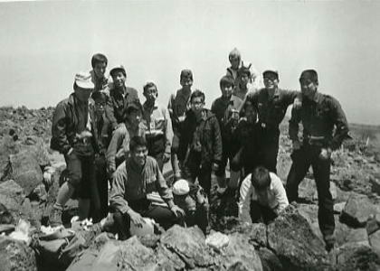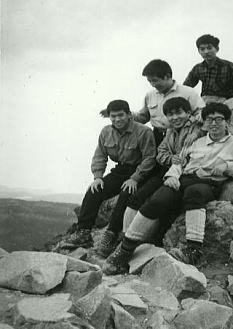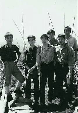 | 合宿費. 食糧費¥450.写真¥50,装備¥100.医療¥50.雑費¥100. 計¥750 食糧献立.19日.弁当.弁当.ブタ汁. 20日.ワカメ味噌汁.ダニ.食パン.カレーライス. 21日.味噌汁.納豆.食パン.(米5合) 新人養成合宿を終えて 関根利章 行きの列車の中では期待と不安でなかなか眠られず.うとうとしているうちに小淵沢へ着き.Bパーティと一諸に松原湖へ。 稲子で別れてこの日のTsである黒百合平をめざして出発。 初めからザックが肩に食い込む。途中には雪も多くやっとこのとで付いて行く。 天狗岳の頂上に着いた時は.くたくただったが.後は下りだけというので.ほっとして一気(?)に黒百合へ。 すぐに夕食の用意。この日のブタ汁のできの良かったこと.一流のレストランなみ(一流レストランではブタ汁は出ないかもしれないが)。 そして早く消燈したが.急激に冷えだして.シュラフの中に.体全体を入れても寒くて寒くてガタガタするほど。眠れないまま起床。 その朝は.そばの流れ氷が張っているほどの寒さで.食事の用意もままならず.予定時間をオーバー。 あとかたずけも早々に出発した。 今日の昼には皆に会えると励まされ歩いたが.なかなか進まず。集中地の双子池にはDパーティに次いで着いた。 夕食後.待望のキャンプファイヤー。3年生をエァーマットなしにし(もっとも僕は真面目で1回もやらなかったが?)胸をスッーとさせ. 「新人哀歌」を多大の共感を持って歌い.最後に「家路」を歌って解散。この時は最高の気分.本当に来て良かったと思った。 翌日は蓼科山頂までマンツーマンの登り,それから親湯まで遅れながらもどうにか下った。 3日間,晴天に恵まれく.苦しいながらも楽しい新人養成合宿であった。 自己反省 林 幹雄 今,目の前に地図をひろげて見る。よくもま〜歩いたものだとつくつく思った。 行く前は,さほどとは思っていなかった山は,実際には雪あり.倒木あり,岩ありで.まったく苦労した。 景色などは歌の文句じゃないが殆ど見なかった。 第一日目の登りは慣れぬキスの重さで肩と腰が痛くて.よっぽど引き返そうかと考えた程だった。 幸い第2日目には,痛みは取れたが早く歩けず.たえず怒鳴なれながらも.ともかく集中地,双子池にたどり着いた。 だが.最終日は破綻をきたした。前日までの疲労と3日間で1番重いキスで初めから息があがらず, 「行く前のトレーニングからすると.こんなはずではなかったのに。」と.ぼやくも先頭グループから落ち.途中のぼせて鼻血を出し. ますますコンデションを狂わせた。 そして蓼科山山頂まで登ったが.日差しに参ってしまった。 しかし先輩達のお蔭で先頭にはだいぶ遅れたが.ともかく自分の足で歩きとうせた事には.少し自信が付いた気がする。 今振り返ってみるに.行動中の自分は性格の弱さか.都会人の線の細さか.大分自分に甘えてきたよう思う。 今後は自分に対してもっと厳しく.根性を持って事に当り.もっとたくましくなりたいと思っている。 西沢隆雄 「西沢さん.あんた大じょうぶ? A子に駅まで自転車で荷物だけでも送られましょうか.でも.いやなクラブにはいったこんだネ。」 これはザックを背負い新宿へ向かう時の下宿出発の場面である。 内心上の話のとうりだと思ったが,ここまできて諦めるにはしゃくだ。 「大丈夫。なんとか行ってくる。」と下宿のあばさんとA子さんに挨拶して歩き出した。 無事に帰るかどうかは僕自信にもおぼつかないのだ。 新宿では,ベテランの田沼さんと山田さんにパッキングをやり直してもらった。 一応仕度だけは山男になったが.これからの心配や不安は頭から離れない。 3日目は出発が6時ごろ.根石,東西天狗のピークに立つ。我が県長野に. いや,日本にもこんな所があるのである。 来て良かった。本当に良かった。これがそこ時の実感だ。雪渓も空の色も遠くの山々もはっきり見える。最高である。 それからの稜線歩きは楽だったが.中山峠.高見石までのコースはきつかった。雪と棒切れの道である。 何をかくそう。今度は来るべきではなかった。「これが実感だ。」この後麦草峠.渋ノ湯までのコースは最も辛かった。 話すことも.ザックから手を抜くのもいやなほどであった。渋ノ湯に着いた時ホットした。 すべてすでに思い出化された。思い出は甘美であるべきものだ。その思い出は不思議にも,もう楽しかった。 クラブに入って良かった・・・・という感じだ。僕はこの山行を一生忘れることはできないと思う。 新人養成山行感想 沼津久美子 キスリングの重みが肩にくいこむ。体は少しも疲れていいないのに。1ピッチが2時間にも3時間にも感じられる。 呼吸が乱れると心臓がしめつけられるような気がする。 それでもザックをおろした時,見上げる空はあの山の.ベッタリとブルーの絵の具を塗ったような空だった。 森と湖の山,北八ケ岳。「あんなに憧れていた山に来ている。そこを歩いている。」ということばに,自らを励まし.かろうじて呼吸を整える。 下りでは自分の下りのにが手さ. 安定の悪さを再確認しつつ.必死に前に追いつく.幕場では
