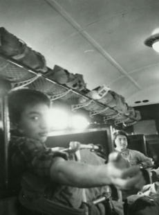 | cパーティ 昨夜.とうとうcパーティはここ集中地に来なかった。 3時半を過ぎても現れないので.雨池まで捜査にだしたが気配なし。 夕食後.2回目の捜査を出した時.日吉さんに引き連れられ山田が伝令にきた。 全員無事との事でファイヤー後.cパーティの事情及び状況を聞く。 小屋場で径に迷い.昨夜漸く夏沢にでる。今日は中山峠経由で渋ノ湯へ下る等を知る。 双子池〜蓼科山〜親湯 ![]() 蓼科山頂 元気な一年がいる.中央は大塚君5月21日晴.双子池7:35一9:20小:30一10:30蓼科山11:05一12:15小:29一13:15親湯一13:25プール平14:41. 諏訪バス\130+50=15:18茅野:22.\580=20:50新宿. 蓼科山 最終日蓼科山越えをする。撤収が遅れた為.出発からダッシュ.man to manで双子山を越える。 1年大塚がズーと遅れたが如何にか林に追い着き.一緒に蓼科山に立つ。 山頂には満尾のとぼけた顔があり.大塚.関根のやつれた顔。そして2年の何だと言わんばかりの顔が揃えていた。 頂で昼食後,まだバスがスト解除されていないことを知り.2年2人を交渉にだす。 一昨日.松原湖で知らされたストが本日決行されている。その下調べのため工藤.赤嶺を先に降した。 そして万が一の場合.トラックをチャーターするよう指図した。 後に付く.私と西村先輩下山 man to manで力量によりバラバラになった隊は一層激しく点々と離され親湯へ下る。 僕は最後から落伍者を1人々拾って行く。 もう随分下で「ガンバレ!」「最後だ!」「後に負けるな!」と怒鳴る掛け声が聞こえてくる。 大塚が腰を打ち.プール平まで付き切りになった。さぁ.僕等も頑張ろう。 親湯では女子パーティが我々を待ち迎えてくていた。バス停のプール平までもう直ぐだ。 ![]() ストは解除となる。 cパーティは茅野駅に着いていなかった。念の為.三浦.和田に駅に残ってもらい.先に帰京する。 結局.cパーティは後から急行に乗った為.我々の列車を追い越し.新宿駅ホームに無事集結した。 cパーティ 上槻ノ木からのルートは初日に夏沢までのルートを確定できず.さ迷った末.2日目を迎えた。 その為.迂回し麦草を経由.渋ノ湯で下山している。 偵察として最も必要と思われたコースを外してしまった。 後で分かるもdパーティの冷山,丸山コースは現在廃道化されていた。迂回し麦草峠を経由する。 今回は女子のみ慎重の上にも慎重を気したが不届きが出てしまった。実際.各コースを事前に踏破する事もなかった。 cパーティ新人養成合宿報告.(小屋場一夏沢一双子池) L田沼.sL山田.m西沢.親崎.日吉.竹永 5月19日. 5:45茅野6:01=6:28上槻ノ木:30一7:00朝食:35一8:30小:45一9:50小10:05一10:57昼食11:40 一12:55小13:20一13:28Ts. バスを降りると広い車道が続いていた。天気は良い。少し行って朝食をとり,7時35分出発。 いやな車道が続く。やがて左へ入る道があり.静かな平坦な道を行く。 道が3本あり右へルートをとり30分も行くと行き止まりとなる。 少し戻る。左に細かいかなりハッキリした道があり.そこに入る。 藪をこぎ尾根に出てから,再び藪をこいたところ.尾根を1本間違え峰の松目の下あたりへ出てしまった。 が,新人の疲労を考え,沢もあるのでテントをはった。 5月20日. Ts4:2515:25小:3516:00分岐:30一7:20小:30一8:30小:42一9:45小:55 一10:55昼食13:00一13:30オーレン小屋Ts, 3時起床.4時25分出発。いったん下まで下り夏沢へ。車をチャーターして入るつもりで飛ばす。 6時に昨日の最初の分岐に着き.4年生に下まで降りてもらい僕達は歩き出す。 しばらくして直ぐ4年生が追い着く。チャーターはだめなようだ。 3本道を左へ入り沢に沿って進む。今日も天気は良く新人もよくがんばっているが.そろそろ疲れが出てきたようだ。 10時半に夏沢鉱泉を過ぎる。そこから少し登ったところで昼食し.山田と日吉さんに集中地へ伝令に行ってもらう。 これから8時間近く歩いてくれる2人に心から感謝する。そこでゆっくり1時半オーレン小屋でテントをはった。 5月21日, Ts6:0017:00根岩:15一7:35天狗一7: 西天狗8:20一8:40天狗:50一9:50大10:10一11:10高見石12:00 一13:00麦草峠:10一14:50渋ノ湯15:15=16:40茅野17:07急=20:35新宿. 6時Ts発.ミカブリへ突き上げるピークは森の中だった。そこを下ると根岩と天狗が美しい。 3日目でようやくピークを踏めるとあって元気に根岩のピークへ登る。 そこから天狗へ快適な稜線歩き.北.中央しいては南に残雪をかぶり.アルペンムードも楽しめる。 天狗へザックをおき.空身で西天狗をピストン。そこに雪渓が残っていたので遊ぶ。 中山をへて高見石に着いたのが11時10分。昼食にし12時出発。丸山をへて麦草へ下る。 麦草峠は素晴らしい峠であったが.立派な車道ができてしまったのはがっかりだ。 車道を歩き,そこから左へ入り.渋ノ湯へ下る。man to manで新人はしごかれる。バテバテで3時近く渋ノ湯へ。 バスで茅野に着いたら.三浦と和田が待っていてくれた。5時7分の急行で新宿へ。 田沼栄一記 帰りの中央東線の鈍行列車内 |