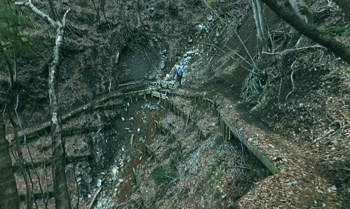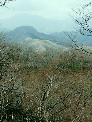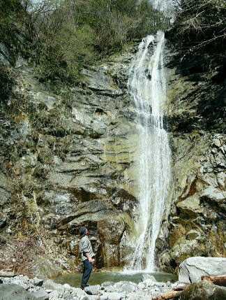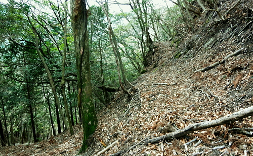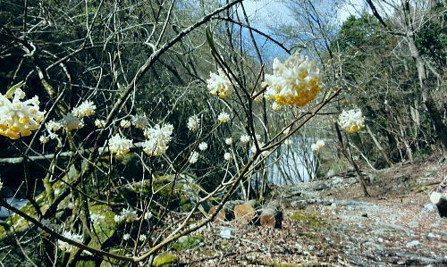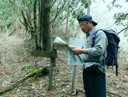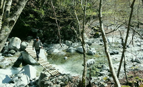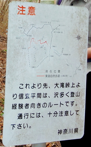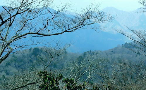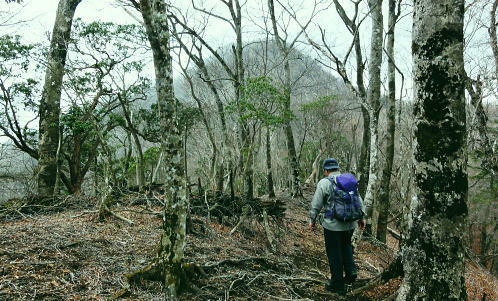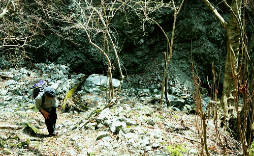 | 西丹沢.河内川右岸尾根・・丹沢の山々Top 河内川左岸尾根 2017年11月. 雷木沢左岸尾根から甲相尾根.水晶沢ノ頭―パン木ノ頭.諸窪ノ頭から畔ケ丸南尾根.大滝峠上を経て大滝橋bsへ 2017年11月. 水晶沢ノ頭雷木沢左岸尾根から甲相尾根―パン木ノ頭.諸窪沢ノ頭から大滝峠上を経て大滝橋・・東海自然歩道 2012年04月. 西沢流域の下棚・本棚を見物し.畦ケ丸・屏風岩山を擁する尾根を南下―ミツマタの群生地から二本杉峠・・上ノ原 大滝流域 2017年10月. 一軒屋避難小屋から鬼石沢左岸尾根を経て畦ケ丸吊尾根―善六山から塩地窪ノ頭北尾根を経てビジターセンター 2017年11月. 大滝沢と支流F1×3を巡回―地獄棚から径路を経て箱根屋沢ノ頭から東尾根下降・・中川bs 大又川流域・・地蔵平 2017年08月. 清水沢右岸尾根から大又沢.地蔵平―日陰歩道から屏風岩山南東尾根を下る・・丹沢ホテル時之栖入口bs 2017年10月. 大杉歩道から地蔵平―セキノ沢.権現歩道から屏風岩山・・東尾根を諦め.二本杉峠から周回 尾根末端・・丹沢湖以南 2017年12月. 塩沢ノ大滝から大久保山東尾根を経て不老ノ活路―不老山.番ケ平.日影山,六郎小屋山南東尾根から河内川右岸道・・平山集落 2018年01月. 芦沢の間伐林道から不老山線終点.径路を経て不老ノ活路―下半.谷ケ山を経て11号鉄塔を南下・・生土地区 西丹沢の河内川右岸の尾根を南下・・西沢渓谷から下棚.本棚を探索し善六ノタワから二本杉峠へ続く畦ケ丸と屏風岩山越えの尾根 西丹沢自然教室から西沢に入り.下棚・本棚と名瀑游山し.善六ノタワから畦ケ丸に立ち屏風岩山へ ミツマタの咲く河内川右岸尾根を南下し.二本杉峠から細川沢左岸尾根を下る 2012年04月18日.L松村m長塩 . 幼馴染Nとの山行は昨年.奥多摩の熊倉山南西尾根を詰め.浅間峠からドット浅間へと笹尾根を横断している。それからから一年近く経つ。 昨年暮れに玄倉林道から入り.臼ケ岳南尾根を経て沗殻山ガタクリ峰に通じる尾根に乗り.宮ケ瀬湖へ下る計画を立て進めていた。 それが彼の体調不調で中止になっている。その時は単独で大杉山稜を北上し.弥七沢ノ頭・ヤブ沢ノ頭を経て.板小屋沢ノ頭にでている。 又年が代わってからは.奥多摩.御前山を南北に横断する日帰り山行に変更し望む筈だった。 これも荒天で雪積もるとの理由で又もや中止なっている。先月は彼の希望をかなえ三条ノ湯から飛龍山に.それも不調とのこと直前で中止にした。 山行の意思はあるものの.直前で気後れを起こしているのだろうか? それでも今回は彼の希望を添えて.山行が実ることになる。 何度も誘いを受けて計画を練るも.選んで出掛けるまでが大変だった。難しいチームワーク? それでも幼馴染.大切にせねば。 彼の希望は畔ケ丸. 私の希望は同角山稜だったが以前に登りダブルと云うことで.河内川右岸尾根の畔ケ丸を選び,西沢から入山。 ただ天候は思わしくなかった。午前中は陽射しを受け蒼空に恵まれるものの.その後は薄暗い雨雲の中に入っている。 気にはならないほどの小さな雨滴が常に降り注いでいた。周りの山々はおぼろな雨雲に覆われ.やや肌寒い山行になった。 Nと「西丹沢」に入る これから目指す畦ケ丸は西丹沢自然教室バス停から西沢へ入り.まず下棚沢下棚と本棚沢本棚の大滝を見物。 善六ノタワからは古道を幾つも持つ中川川右岸尾根に乗り.モロクボ沢ノ頭から畦ケ丸に立ち.昼食を兼ね軽く酒を交わした。 そして屏風岩山を経て二本杉峠から上ノ原集落に下る。直進すれば世附権現山を越え丹沢湖に没する尾根。 丹沢湖の入江と中川川左岸尾根末端 山北藤野線.焼津より.8:134月18日(水).晴後雨雲 jr御徒町¥160 5:00=神田5:12=5:29小田急新宿急行¥750. :46=7:02新松田¥1150. :15=8:26西丹沢自然教室bs. 中川左岸尾根末端 路線バスが丹沢湖を渡り.街道の左前方に架かる中川橋が眺められると右前方に朝陽を浴びる遠見山西尾根が対岸に広く望まれる。 手前に大きく望めるのが湖上平600m圏峰. 重なる戸沢ノ頭。その右手には丸ノ山. 428m峰と重なる580m圏コブ。正面は戸川沢出合か? 写真は湖畔北岸に聳える大杉山山稜の末端近くに当り.河内川が流れ込む丹沢湖の大きな入り江の中になっていた。 路線バスの車窓から見上げる山並は昨年11月に初めに西丹沢に入り.左岸の大杉山稜を越えている。その折はここ中川橋が取付きだった。 箒沢権現山と右下が峰山の小コブ735m 湯沢・・山北藤野線.玄倉寺付近より手前が屏風岩山東尾根.窪地が箱根屋沢出合 畦ケ丸から二本杉峠 8:26西丹沢自然教室bs:45一9:40下棚沢出合:50一9:50本棚沢出合一11:10善六ノタワ:20一12:16畦ケ丸13:40 一14:30大滝峠上:40一14:45山林管理道分岐:55一15:25屏風岩山:30一16:23二本杉峠:30一17:16上ノ原bs付近. 山北藤野線 山北藤野線.県道76号線の起点は足柄上郡山北町向原.終点は相模原緑区小渕で総延長20.373km。 終点「西丹沢自然教室」バス停で下車.その先の林道は閉鎖されていた。迂回としての林道犬越路線は点線県道で一般車両通行止。 犬越路隧道の西側上には古道の峠路.犬越路があり.月夜野とを結び神