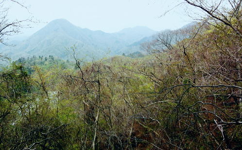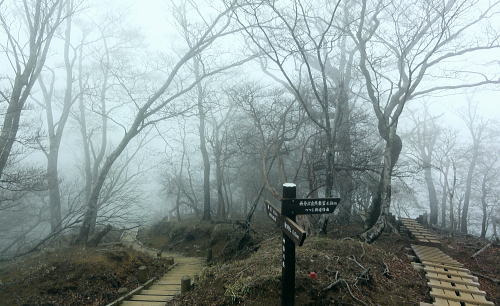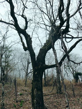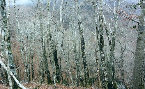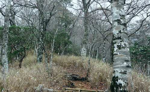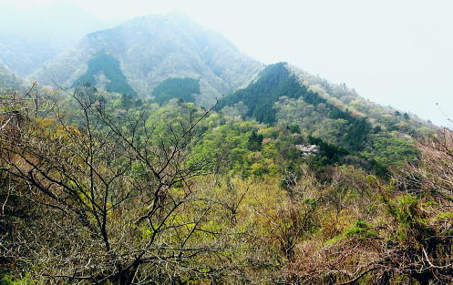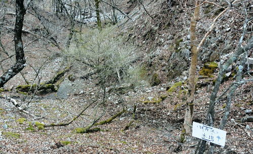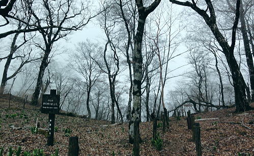 | 西丹沢.同角山稜.同角ノ頭.大欅平丸.石小屋ノ頭から雨山峠越えで宇津茂 .寄・・丹沢山塊Top 西丹沢自然教室からつつじ新道に入り.ガス濃く湧き上がる同角山稜を綴る 玄倉林道にでて古道寄ユーシン線を綴り.雨山沢から雨山峠越え寄沢の経路に入り.寄林道から宇津茂.寄bs 2013年04月17日.松村 西丹沢自然教室からつつじ新道に入り同角山稜・・霧中の岳 中ノ沢乗越から玄倉林道と古道寄ユーシン線から.桟橋多い雨山峠越えと寄沢の経路 西丹沢.自然教室に入るのは1年振り3度目になる。昨年の今頃は自然教室に入り.中川右岸尾根の畦ケ丸から二本杉峠まで南下した。 一緒に出向いたのが幼馴染の長塩で.彼が希望したコース。今回はつつじ新道から同角山稜を下り.玄倉林道にでて雨山峠を越え宇津茂へ下る。 ユーシンからの雨山峠越えの下山路は昔からの古道の1つとして.学生時代の紀行文にもよく出てくる峠路を訪れたい気持は以前から強く抱いていた。 玄倉林道は昨年の8月から人だけは通行可能になり..車両の開通前に如何しても歩んでみたい林道の1つになっていた。 その折り耳にしたのが雨山峠越えの古道が雨山沢右岸に綴られていると知り.桟橋の多いことも選んだ理由の1つにもなっている。 「山と高原」のコースタイムを読むと実働時間の計算ができず.エスケープとしてユーシンに下ってから雨山峠越えか.林道を玄倉に下るか判断することにした。 又当日の予想では風速10mを超す風に遭い.キレットの小橋を渡るのか? 想像だけが膨らみ現実に見るまでは不安が募るばかりの山行だった。 確りした橋であれば良いが山中で臨機応変に対処するしか方法はあるまい。 同角山稜と石棚山稜 不動ノ頭の鞍部より・・2008.11.01/7:36鍋割山稜から甲相尾根へ抜けた折.晩秋に錦絨の蒔絵模様が織り.重なり合う山並みの展望 同角ノ頭 同角ノ頭は西丹沢.檜洞丸の南側に位置し.2008年10月.鍋割山稜.丹沢主脈.主稜から甲相尾根に抜けている。 その折.時計と逆回りで同角ノ頭を遠巻きに見つつ.又檜洞丸からは真近な青ヶ岳山荘に宿りながら.霞み強く見えぬ同角ノ頭を眺めていた。 その時は晩秋に錦絨の蒔絵模様が織りなす.重なり合う山並みの中にいたが明け方だけはおぼろ過ぎていた。 それ以来十数回.丹沢山域に入山しているものの今だ天候.地形により.遠望でしか同角ノ頭を望むことはできなかった。 一昨年は戸沢ノ頭からヤブ沢ノ頭まで西隣りの尾根を歩むも望めないでいる。今回は初めて同角山稜に入る。そして又しても濃いガスの中にいた。 箒沢権現山 西丹沢自然教室4月17日本曇一時霧雨 jr御徒町.山手線¥160 4:44=5:18小田急新宿.急.¥750 :31=6:47新松田.富士急湘南バス.自然教室行.¥1150 7:15 =8:26西丹沢自然教室bs. アプローチとして鶴巻温泉付近では薄日が差していたものの.山は次第に霞が強く.曇天から霧雨舞う山懐に見舞われた。 つつじ新道登山口 ![]() 尾根を越え東沢に入る登山口.8:35 登山口前の急稜を現わす堰堤群 同角山稜 西丹沢自然教室bs8:28一8:35つつじ新道登山口一9:11ゴーラ沢出合:20一10:52檜洞丸への分岐一11:05石棚山稜への分岐:25 一12:11同角ノ頭一12:36ザンザ洞キレット一13:22大石山:35一14:11ユーシン. つつじ新道は5月のツツジの名所として知れたコース。西丹沢自然教室から右手に「山の神」.東沢の流れを見て.150mほど先でツツジ新道が分岐する。 小さな沢沿いに入り離れると急な山腹を回り込み小さな枝尾根を越すと堰堤上で東沢を横断。ここがつつじ新道750m付近の.ゴーラ沢の出合。 石棚山東尾根の板小屋沢ノ頭 東沢と広い河原状の石棚沢出合.8:50誰もいない山径を辿る。4月の中旬と云うのに閑散とし.陽気も今一つ。樹葉は若葉色に染まり始めていが重い雨雲に覆われている。 今にも冷たい雨粒が落ちてきそうな雰囲気をかもちだしていた。陽光が差し出せば.陽気はガラッと変わり.春先の歓喜に心も踊る筈だった。 春のうらうらな霞みは何処に行ってしまったのだろうか? 山懐に入るにつれ.霞みは更に重みを増し.侘しさばかりが勝っている。 ![]() 権現山と畦ケ丸の吊尾根 右後方の展望・・右脇が塩地窪沢ノ頭.9:01権現山の正面が北東尾根になり.れば西丹沢自然教室にでる 今回は久し振り.4人のハイカーと終点.西丹沢自然教室まで同乗した。高曇りの空はツツジ新道を登るにつれ.春の霞に覆われた。 背に聳える箒沢権現山と畦ケ丸の山容はおぼろに聳え.右手に望めた東沢対岸のヤブ沢ノ頭も春の霞みの中に埋もられている。 奥の二俣・・東沢と右俣ゴーラ沢との出合 東沢二俣は左俣が本棚沢・右俣がゴーラ沢.9:13つつじ新道が綴られている二俣の中間尾根で石棚山稜の分岐にでる ゴーラ沢出合,堰堤の脇にでる。道標に被さるよう満開を過ぎ散り始めた山桜が見られた。 ゴーラ沢出合の河原は対岸に飛び石伝いに渡り.右下のコンクリートの塊のような石階段から山稜へと中間尾根に取付く。 大まかには檜洞丸と石棚山稜との分岐.その奥に同各山稜の分岐がある。 登りだすと直ぐ雑木の茂みから開放された小平な台