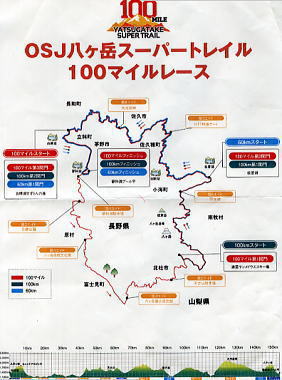 | 2013年09月08日以降の記録・・八ケ岳概念地形図 2013年09月06〜08日.「第二回2013OSJ八ケ岳スーパートレイル100マイルレース」24:29:49.12位.30代3位 ・・車でサポート.M.松村 八ケ岳スーパートレイル.ポスター. OSJ Yatsugatake Super Trail 100 miles race (JPN)1週間前に息子から「2013OSJ八ケ岳スーパートレイル.100マイルレース」に参加するので.彼女と一緒にサポートして欲しいと希望があり. 八ケ岳連峰の長い裾野を大きく廻り.又横断することになる。又100マイルを33時間掛け運転することになる。 このレースの詳細は白樺湖「すずらんの湯」がスタート地点. 一エイド蓼科駐車場12km. 第二エイド岳麓公園5km. 三エイド自然文化園12km. 四エイド八ケ岳歴史館14km. 五エイド天女山13km. 第一関門サンメドドウス清里スキー場7km. 六エイド南八ケ岳林道出口ゲート18km. 第二関門松原湖公民館横15km. 七エイドNHK受信所19km. 八エイド大河原峠17km.第三関門白樺湖「すずらんの湯」17km. そしてコ蓼科湖プール平11kmがフィニッシュになる。累計160km.100マイルのスーパートレイル。 競技は白樺湖の湖畔をスタートし.彼の進む先々を先廻りする。サポート車は八ケ岳連峰の西麓を南下し.編笠山の南麓を廻り.杜から佐久穂へ北上。 松原湖から広河原峠へは再び白樺湖を抜け.北西側から峠をピストンし.蓼科湖プール平にゴールする。 運転しながらレースの流れをその場で判断し先々へ回ることになる。 7日11時頃から天気は怪しくなり.15時頃から崩れ,本降りと濃霧の重なる厳しい競技になった。 コースは林道が多く舗装された道も多く走る。その道中.裾野を横切る河川.街道を幾つも横切っていた。 2007年10月に「昭和40年代前半に大きく変貌した登山形態とその後歩んだ登山アプローチ」」の記載と重複することも多い。 今回は気侭にその場で気が付いた想いを綴ってもいる。 jr茅野駅北口前茅野市民館.6日14:499月06日(金)晴後曇 竹町9:45=神田IC=13:45諏訪IC=「そば蔵」.茅野市民館.大門街道16:40=17:15白樺湖「パイプのけむり」. レース開催の6日前.大月の市街から見上げられる花咲山に登り.下山の折見下ろしていた岩殿山の大月隧道口を今日は潜り抜け.中央道を西進した。 そして諏訪ICで降り.jr茅野駅北口前の市民会館で受付と説明会を受け終わるのを待つ。 市民会館が建てられてから2年目になるという。2005年08月に立教学院八ヶ岳環境ボランティア登山で再び山に目を向かるようなった。 その時の入山口が茅野駅だった。地元に住む先輩.後輩と駅前の喫茶店で再会した後.赤岳山頂周辺の清掃をし清泉寮に下りている。 又私の節目になるのか茅野駅でもあった。下車する都度.駅周辺の風景は変わっている。高校時代から点々とした経緯が時の流れを示していた。 大門街道を北上し.白樺湖「パイプのけむり」に開催日前日の宿を取る。 夜半湖畔を望むと厚い雲が垂れ込んだ湖面に映る灯りがおぼろに霞み漂わしていた。 宿前は先程綴ってきた大門街道.上田への道。佐久野沢方面からの大河原峠への蓼科スカイラインは1970年代の初めに,望月に下っている。 ただ最近は山道の運転に不慣れで.又夜道でもあり.危険を感じ西側の「町道夢の平線」から往復することにした。 その為麦草峠のメルヘン街道を松原湖から横断することにした。他のコースもチェックポイントに時間前に着けばルートは何処でもよかった。 白樺湖東湖畔 スタート地点「すずらんの湯」P.4:179月07日一時晴.11時頃より霧雨.雨後.濃霧・・車行程 「パイプのけむり」03時起床. 3:50=白樺湖すずらんの湯,スタート5:00=5:45二エイド岳麓公園=8:05道の駅「小淵沢」 =8:40四エイド八ケ岳歴史館=五エイド天女山. ⇔天ノ河原.散策=13:15第一関門サンメドドウス清里スキー場=16:00第二関門松原湖公民館横 =21:24八エイド大河原峠 9月08日濃霧後雨 =2:20ゴール地点の蓼科湖プール平. スタート・・2013年09月07日am5:00.スタートチェック5:00:16スタート地点 ゼッケン400番を腰の前後に付けスタート地点へ。夜明け前の白樺湖々畔.8日まだ夜半の5時にゲートを潜りスタートする。 そしてランナー達を見送り.二エイドステーションの「岳麓公園」へ先回りした。 昨夜の大門街道を戻り.新井上交差点を左折して.湯の道街道(渋ノ湯堀線)に入る。先は渋温泉への道. 1967年04月,残雪の高見石から白駒池・雨池を経て.新人養成の集中地を双子池予定し.現地に入り交渉。そのため鞍部からピストンした。 八千穂駅に下っているが大岳川は中流までて.残雪に覆われていた。 トレイルのコースポイントとしては天候も悪く.この東側の林道.山径のアップダンに泣かさせられている。頂稜の方が楽なコースだが。 当時渋ノ湯から入山しているがバスの運転手は投票日と重なり.途中で投票所に寄りていた。 又下山の八千穂駅では哀れに思ったのか? 私と仲間の大川に駅員からラーメンの差し入れを受け.駅事務所で食べている。 地図先を見詰めると何時も想いだす風景だった。 二エイド岳麓公園 7:00スタートからの累計距離17km 「岳麓公園」の近くまで来ているにも