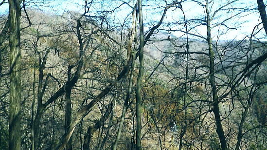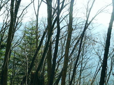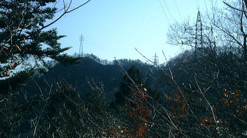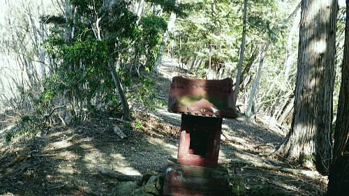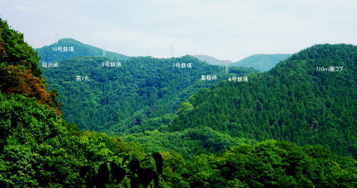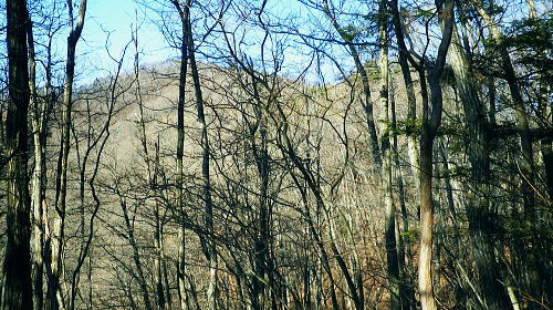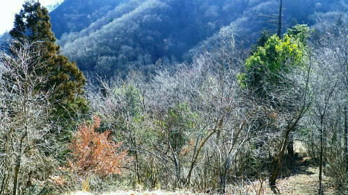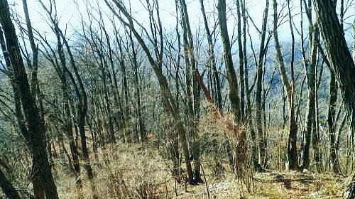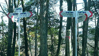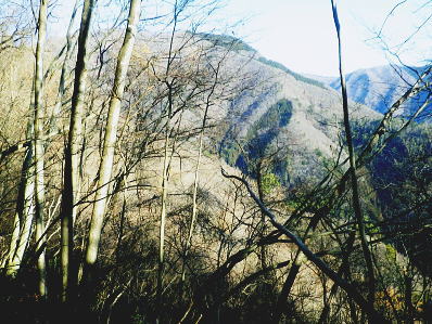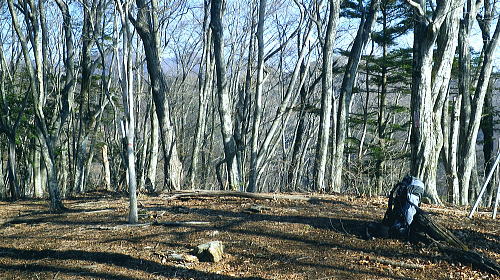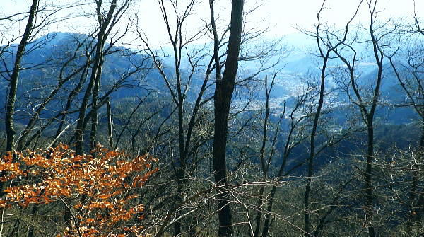 | 続.南大菩薩連嶺東面の鉄塔尾根を南下し.末端に聳える里山.岩殿山に立つ ・・晴明盤Top 奈良子入口からセイメイバン東尾根を詰め.浅利川左岸尾根の送電線深城線の鉄塔尾根を下り.天神山から岩殿山に至る。 セイメイバン東尾根から鉄塔尾根に乗り.さくら峠.高ノ丸から葛籠峠へ―尾根末端の岩殿山からは改めて道志山域の大展望を 2014年01月28日.松村 林地区から晴明盤東尾根を詰め深城線鉄塔尾根を下る・・jr宣伝全車両.と送電線深城線 葛籠峠から更に南下し笹平.稚児落しへ 稚児落としからは尾根末端の天神山と岩殿山 セイメイバン 吹切尾根の野脇から浅利川の源流を横切る東尾根は大垈山から更に2つの支尾根を分けている。東方の宮地山へと延びる尾根と 大垈山から南下する鉄塔尾根とに分かれている。.南方に延びる尾根を選び尾根筋に入れば小コブに乗りるセイメンバンに至る。 セイメンバンからは更に東方と南東方に2つの支尾根を分けている。過ってはセイメンバン南東尾根を詰め.大垈山へと逆上して宮地山を下っている。 それから丁度2年目にして.セイメンバンから深城線の鉄塔巡視路を綴り最南端の岩殿山にでている。 昨年師走には林沢戸から宮地山タカザス沢右岸尾根を経て.宮地山から大垈山を抜け.さらに上部の吹切尾根の野脇にでていた。 そして正月明けには小俣川沿いの林地区から東尾根を詰め.浅利川と葛野川大沢川を分水嶺とする長い深城線の鉄塔尾根を南下しようと思っていた。 それが2週間前の師走には日川尾根の末端の日川沿いから眺めた北面の山々は.何処もが新雪の白さにに覆われる。 jその折はr甲斐大和の北側に横たわる古部山南東尾根・勝沼尾根に変更している。 今回は改めて深城線の鉄塔尾根を南下しようと思っている。一昨日は夜半に降雪があった見込み.積雪はどの位あるだろうか? 灰焼場から上部は既に歩んでいるが東尾根は初めてで.不安が募り始発で出向いている。上手く南下しjr大月駅まで進むことができればよいが。 1月28日(火)快晴 jr御徒町4:46=神田5:00=6:13高尾.松本行:14=6:47猿橋.浅川行.¥320. :55=7:12奈良子入口bs. 広告車両 まだ闇夜のjr御徒町駅ホームに立つと始発の京浜東北線が入線した。 私の立つホームにはちょっと気品のある飴紅色調のワイン色に飾り立てられた車両が入線した。宝塚歌劇100周年公演の宣伝車両. 車内の広告は全て宝塚に関するものばかりで,出演する歌劇員の顔々が一枚づつ.或いは集合して吊り並べられている。 又液晶デスプレイの電子広告にも,電車の案内以外は全て宝塚に関するものが集められ.吊り広告と共に飾り立てられていた。 ジックり見る間もなく神田駅で乗り換える。電車が立ち去ったホームには再び痺れる寒さが忍び込み.自然と体は小刻に震えさせていた。 ホームで待つ身.2番電車は何時もよりやや長く感じられた。土.日曜の山行の場合は常にこの山手線始発の時刻が定番になっていた。 今回は何時もより早めに葛野川と支流の小俣川出合のある奈良子入口バス停前で下車した。 「集落の案内板」があり.何時も窓越しなので.ジッくり見たいと思っていた。その為.バスも先行する浅川行に乗車した。 猿橋駅バス停で2人の男子学生を降ろすと車内の乗客は私.独りになる。 又「奈良子入口」バス停にある絵図には入山する林地区の略図に住民の各氏名が名指しで示されていた。・・周辺の集落絵図 小俣川.愛郷橋富士急山梨バス.奈良子線の林入口バス停に下車. 県道を右に分け.左下の道へと林地区に下りる。7:25 セイメイバン東尾根の末端のある林地区へと落口の愛郷橋を渡る。. セイメイバン西尾根から葛籠峠 奈良子入口bs7:12一7:27愛郷橋一7:37尾根取付き地点一8:55灰焼場一9:39セイメイバン一10:53桜坂峠 一11:10高ノ丸一11:50葛籠峠.大12:30. 奈良子入口で降りたため.小俣川の左岸沿いを走る奈良子線の路線路を歩む。このルートを歩むのは丁度1ケ月振り。 街道は山陰に覆われているものの.路面を照らす朝の明るさは大分早くなった。セイメイバン東南尾根を巻き込むよう東尾根の末端に向っている。 本来乗る筈の奈良子行バスが私の脇を通り過ぎ.時たま通勤の自家用車と擦れ違う。 ただ上和田からの139号線の往来に比べると静かなものだった。 これから登る東尾根を見上げると頂点の左隅にちょこんと小和田山の頭.一角だけが朝陽を浴び.黄金色に煌き望まれた。 朝方の陽光はまだ私のいる大地には届かずにいる。残り雪はこの辺は全く見られず.気を休まるも肌寒い。 今回は林地区のメーン通りを抜け.東尾根に取付く。 林地区 地区中央に建つ十王堂と火の見櫓を右に見て抜ける.7:33林地区を取り囲む背は楢ノ木尾根から続く瀬戸境 710m圏コブより集落を見下ろす左端の民家手前からUターンする形で山道に入り.刈り払われた原に取付く. 集落. 良子線を15分ほど歩んで林入口バス停にでる。やや高台の車道からは林地区の全体が見下ろされ. 坂を下ると愛郷橋を渡り林地区に入る。下る途中で地元の小学生4人が坂を登ってきた。大きな声で「