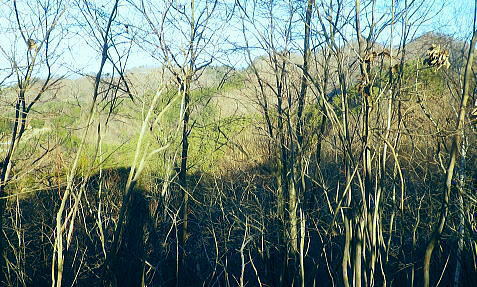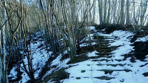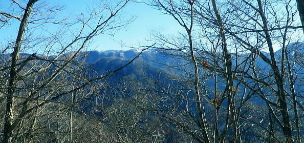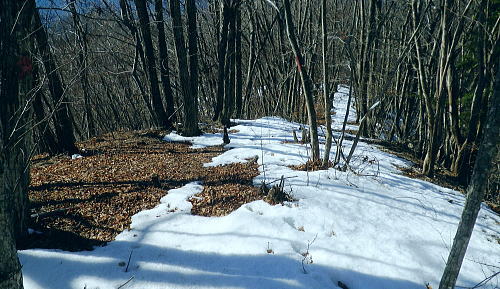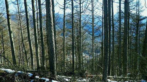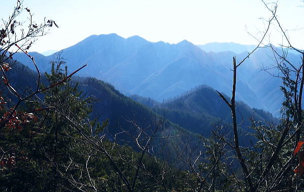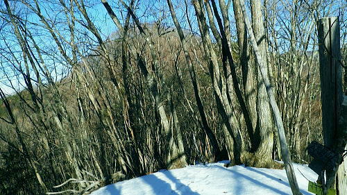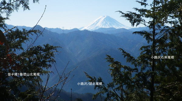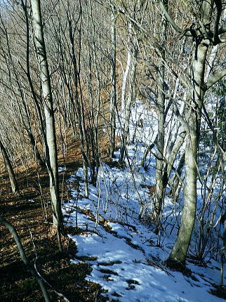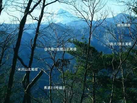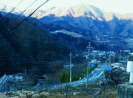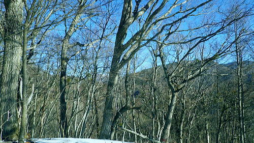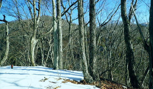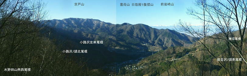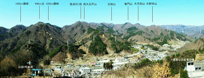 | 大菩薩嶺南部.甲斐大和の北側に横たわる尾根. 古部山南東尾根から勝沼尾根・・笛吹川日川流域Top 南大菩薩連嶺.日川尾根の棹尾を取り囲む山々を辿り.東電の初狩発電所と柏尾発電所とを結ぶ。 古部山から東と西大志戸山.徳並沢ノ頭.944.7m三角点峰.644.2mから尾根末端の三角点峰へ。 初鹿野から大天狗.竜門山を経て.新雪の古部山南東から南西支稜へ―徳並沢ノ頭から勝沼尾根の末端.フルーツラインへ下る。2014年01月12日.松村 初鹿野発電所から古部山南東尾根を詰め南西支稜へ・・共に発電所の鉄管から登り鉄管を下る。 無名の山々が多い勝沼尾根を綴り柏尾発電所 2回の山行に分け.南大菩薩連稜西面の古部山南東尾根と東面のセイメイバン東尾根から浅利川左岸尾根(深城線鉄塔尾根)を下る。 田野の集落と日川尾根末端の山々 赤鳥居より大谷ケ丸南東尾根から大鹿峠天狗尾根を下り.日川の対岸を望む。氷川神社の赤鳥居より・・2012.06.23/15:43 古部山南東尾根を下ると大天狗から南西に支尾根を分けている。大志戸林道を横切り.遊歩道的な道から水野田山に至る。 南東尾根を更に1128m点まで下ればやはり林道を横切り茶湯山を擁する尾根を下り.尾根末端はこの天狗尾根と同じく景徳院にでている。 県道215号線で田野地区を抜け甲州街道からjr甲斐大和駅にでた。 甲斐大和の北側に横たわる鶴瀬・大和付近と扇状に広がる日川尾根の末端尾根 ![]() 小路沢左岸尾根(jr大-勝線鉄塔尾根)の左支尾根末端の伐採飯場より・・2012.03.29/15:03 北面の日川を隔てから見た古部山南西尾根と末端が途切れるが勝沼尾根。左手から大和町鶴瀬.宮本.古部.水野田地区. 宮本.古部地区の間にjr甲斐大和駅と長くホームが横たわっている。 水野田山の右下中央が南東尾根で植林と境の547m点コブの麓に1本の水圧鉄管が見られるのが初鹿野発電所。 その左下の広い集落は古部地区。広い道路がカーブした所がjr甲斐大和駅。駅から集落を抜け登れば徳並沢ノ頭に立つ。 日川右岸沿いの送電線鉄塔は笛駒線 柏尾発電所から初鹿野発電所までは日川線との併用線. 初鹿野発電所で昇圧され.笛駒線に給電している。 左端から3つ並ぶ送電線は白い笛駒線鉄塔から分線し.赤白2つの鉄塔を繋ぐ公団送電線. 手前鉄塔に並びKDDアンテナがある。 右端は大蔵高丸南西尾根に乗る強大な西群馬幹線の202号号紅白鉄塔。 日川尾根末端の日川右岸尾根 今回は大菩薩連嶺のセイメイバン東尾根から入り.鉄塔尾根を南下して岩殿山からjr大月駅にでる予定でいた。 それが天候と平日山行の組み合わせがその都度噛み合わず.先延ばしの状態が続き.今回は40日も山に入らぬままになっている。 体の不調も治まり.まずは出掛けねばと中央東線の駅から直接入・下山のできる山域に絞り山した。 jr甲斐大和駅から写真右の甲州街道・国道にでて.北面を見上げると日川尾根末端の山々が連なり.右手奥の谷間には古部集落が望まれる。 その上部に聳えるのが徳波沢ノ頭. 懐かしい昔の響きを持つ初鹿野は国鉄時代に付けられた駅名でもある。現在は甲斐大和駅. その集落から入山し古部山から徳波沢ノ頭を越え.南大菩薩連嶺の末端にある勝沼尾根を綴る。 小コブを並べたような頂稜は天に聳え立つ鋭さはない。今回は南大菩薩連嶺西面の最南端の尾根を綴り.塩山盆地に至る。 水野田山南西尾根から大天狗山を経て主尾根に乗り.白蛇沢源流を回り込んで古部山南西尾根から徳波沢ノ頭に立ち. 徳波沢ノ頭からは更に日川尾根末端の勝沼尾根を経て.jr勝沼ぶどう郷へ下ることにした。 1月12日(日).快晴 jr御徒町¥1890. 4:44=4:47神田5:00=6:13高尾:14=7:18甲斐大和 アプローチとしては初鹿野発電所の水圧鉄管沿いを登り.柏尾発電所の水圧鉄管を下ると云う.2つの発電所を結ぶルートを選んでいる。 以前は甲斐大和駅から徳並沢ノ頭に立ち.境沢ノ頭を経て甲州高尾山から勝沼ぶどう郷駅へと深沢川を取り囲む尾根を 馬蹄形に回っている。今回はこのルートの南側に位置し.古部山を源とする深沢川の左岸尾根沿いを歩む。 明け方の山陰.松智院前の参道 右手が農道寺東線.7:31側壁の看板は農道の宝くじ寄贈の由来板 水野田山南西尾根から徳並ノ頭南東尾根 7:18甲斐大和一8:32水野田山一8:43大志戸林道.展望台一9:27大天狗一9:45竜門山:55一10:22古部山 一11:17西大志戸山一12:00徳並ノ頭 jr甲斐大和駅の改札口に独り降りる。平日の早朝のせいか駅前は閑散とし通う人もいなかった。 右手にある線跨橋を渡り.線路沿いに戻るよう下ると甲州街道.R20号線に突き当たり.左折して笹子トンネル方面に回っている。 国道にでる直前の左手から坂道が合わさる合わっている。このT字路を左に折れ.古部の集落を綴り. 数年前には南尾根から徳並沢ノ頭に立っていた。 まだ車の往来が少ない国道に沿い歩むと直ぐY字路の景徳院入口にでた。そして笹子トンネルへ入る国道を右に分けている。 真っ青な空を見上げている割には.まだまだ私の足元は薄暗かった。左に折れ日川渓谷方面へ。 直ぐ正面に松智院の参道石階段が目に入る。寺院への