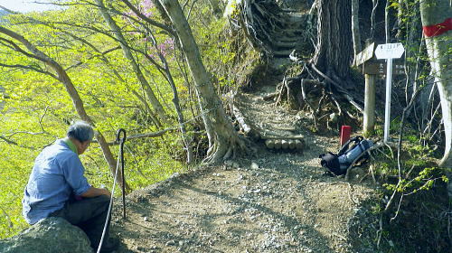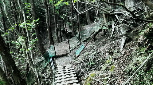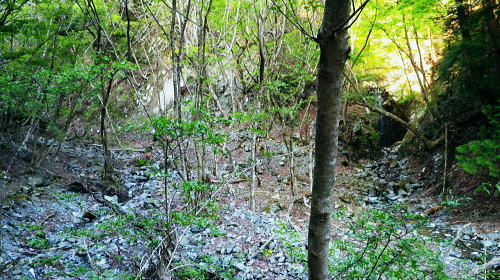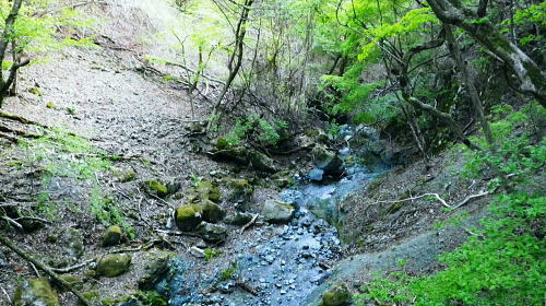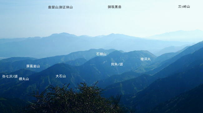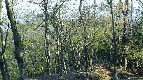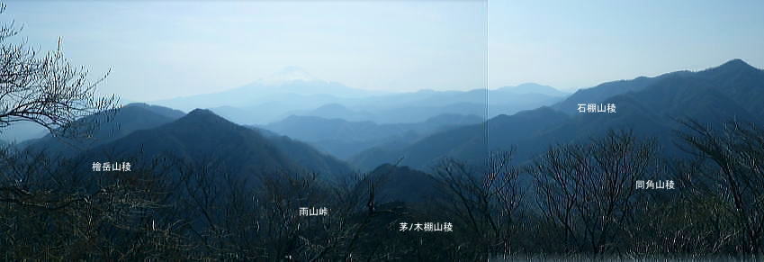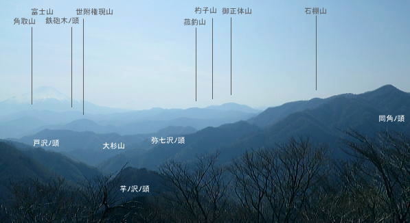 | 松田町西端の南北に走る市界尾根の山と谷 鍋割峠から鍋割山に立ち.海原の遠望を楽しみ.南山陵の後沢中間尾根を選び.やどりき水源林周遊歩道(寄沢林道)を下る 玄倉から秦野峠林道.玄倉径路を繋ぎ玄倉山ノ神峠 檜岳山稜から茅ノ木棚山稜を越え鍋割峠 古い峠路.鍋割峠から鍋割山南山陵―後沢中間尾根からやどぎり森林遊歩道・・宇津茂・寄bs 箒杉沢流域 鍋割峠付近の源流域より.15:01山並は左から蛭ケ岳. 鬼ケ岩ノ頭を越えて柳沢ノ頭.手前に延びる尾根は弁当沢ノ頭を越えている。不動ノ峰から突き上げる丹沢山。 手前が鍋割山北尾根.オガラ沢左岸尾根の1000m圏コブから西北西に延びる尾根。 14:56鍋割峠一15:25鍋割山:35一16:14後沢乗越一16:46後沢二俣一17:10遊歩道一17:20ゲート一17:50寄bs. 鍋割峠までの痩せた鎖場多い尾根とも遠のき.鍋割峠からは小ブナ林の茂る森が続いている。このブナ径は鍋割山稜まで綴られていた。 5.6年前に鍋割山から甲相尾根に抜けた折. 混み合う頂での昼食を避け.鍋割山稜に入り.落葉が敷き占められたブナの森の中で摂っていた。 濃霧の強い漂う入山だった。霞む山稜にブナが乱立し満り.山に入る歓びに満ち.2泊の贅沢な山行を想い出している。 峠から次第に大らかな尾根に変わり.頂近くでは広いブナの草地に被われ.鍋底を逆さまにしたような地形の鍋割の台形台地にでる。 草付き故.展望はすこぶるよかった。 気持ちよい鍋割山西肩の広い大地.15:17鍋割山北尾根 山荘から鍋割峠方面に5分ほど下った所に目印と看板に「この先ユーシン方面踏み跡で不明瞭な所あり通行厳重注意」とある。 鍋割北尾根の分岐.裏が取付きで立木に赤いペンキのマークと枝に黄色いテープも結ばれていた。 オガラ沢出合への尾根ルートは下降点(赤いリボンと黄色いテープ)を外さないようすれば難しくないようだ。 次回は熊木沢出合付近の.この西面の山々を歩き回ることになる。 西丹沢の中核・・中川川流域の山並 鍋割山より.15:42西丹沢・・世附川.玄倉川流域の山々 ![]() 昨年は同角山稜を.今回は山神峠から左側の山波を越えてきた。・・鍋割山西側肩より西丹沢から続く山々を望む. 檜岳山稜と朧な富嶽 寄沢を隔て画像左景アップ.15:20檜山山稜・芽ノ木棚山稜と綴られる市界尾根・・伊勢沢ノ頭と重なる檜岳.雨山.雨山峠.オツボ沢ノ頭 右の谷間に玄倉林道が走り.対岸は玄倉川右岸流域の山々で今の登ってきた山並を振り返る。 檜洞山へ繋がる尾根 右景.玄倉川右岸の山並から甲相尾根鍋割山 鍋割山荘.15:26鍋割山・・三等三角点標石1272.48mを持つ鍋割山の基準点は「三之萓」. 伊豆半島への海岸線は今回も朧すぎるモヤに包まれ.全く望むことはできなかった。期待に期待を膨らませ登ってきたのだが。 その上,予定より1時間ほど遅れて鍋割山の頂に着く。気落ちし.まだ時間はあるものの.昨年の帳を迎えた大菩薩連嶺を思い出す。 雁ケ腹摺山楢ノ木尾根から吹切峰真木川左岸尾根の取付きまで至りながら.諦め夕暮れの林道歩きを延々と続けていた。 その二の舞になってはと日没が気になりだしていた。テーブルベンチを独占し.最後の食事.サンドイッチをキンカン湯を飲みながら共に摂っている。 桟橋の多い後沢中間尾根を下らなくてばと。アクシデントを起こし.気落ちした場合は鍋割峠から寄に下ることも考えたが早急過ぎると思う。 まだ焦る必要はなかった。まだ日没まで時間はある。この寄沢周りは何処も鍋割峠でも.雨山峠コースでも.アプローチは何処も殆ど変らないでいだろう。 山頂小屋に名物は「やきうどん」.更に宿泊者は西川林道の終点に置いてあるヘットボルトに水のボッカのお願いらしい。 鍋割山南山陵 鍋割山南肩より.15:35手前が1725m圏コブ.後沢乗越から栗ノ木洞.檪山.中山峠へ至る山並. 南山陵後半・・南山陵の半ばにある栗ノ木洞と水平に延びる南西尾根 上の写真アップ・・1725m圏コブより見下ろす.15:43遥か先が相模灘. 左奥が蘇我丘陵 左端が大倉尾根末端と秦野の市街地. ガスが切れていれば向かいに相模灘があり. 左端に江ノ島.正面には伊豆大島.右には伊豆半島が望める筈だった。 南山稜西面 栗ノ木洞908.3mの右奥が檪山(くぬぎ). 尾根沿いに下り,県民の森の頭を横切れば三廻場林道を横断し.右手に折れ寄bsにでる。 栗ノ木洞から寄沢沿いに長く延びる幅広い植林帯に覆われた尾根は栗ノ木洞南西尾根。栗ノ木洞の手前が後沢乗越(うしろさわ). 西面が後沢流域で.後沢右岸尾根と後沢中間尾根(左岸尾根)を隔てている。この後沢を下る。 栗ノ木洞南西尾根(稲郷沢右岸尾根) 尾根から寄水源林管理棟にでるには620m付近(屁ノ玉洞)と590m付近で尾根の分岐の地図読みが必要。下り1時間40分. 590m点の分岐を左の枝尾根に進むと林道三廻部線入口付近にでられる。 栗ノ木洞 1725m圏コブより.16:06後沢右岸尾根 檜林の斜面を下る道。地図の寄分岐.後沢乗越手前の右手の小立木に赤ペンキで「1000m」の数字の印があった。 直ぐ先の立木には丸い標識がある所が寄沢中間尾根の下る取付きになる。タカノス沢とウ