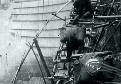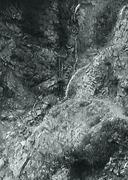 初期の工事は建設材料を徒歩や,ヘリコプターで輸送するというもので.作業ははかどらず困難を極めた。