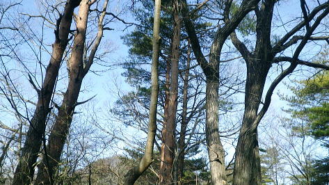 | 御坂山地.最北東端の山.高川山西尾根から東尾根・・甲斐.御坂山地Top 市界尾根(大月市.都留市)に聳える高川山と旧往還の古道と石仏を綴る jr初狩駅から高川山西尾根の肩.大幡峠にでて.近ケ坂峠.カンバノ沢ノ頭.羽根子山―高川山東尾根からは天神峠からむすび山へと結ぶ 桂川河段丘陵の展望と低山群が対峙する山域. 2015年02月28日.松村 高川山西尾根端.大幡峠から近ケ坂峠・・幾つも峠路は重ねて呼ばれていた カンバ沢ノ頭から高川山東尾根とむすび山 高川山東尾根と西尾根 橋倉峠へ.老人ホーム「富士見苑」より.左奥が鹿留山.杓子山. 高川山の右肩が羽根子山. 右手は八幡峠越えの685.1m三角点峰。・・2013.08.30/7:39 高川山 真木温泉付近より南西に望む・・2015.04.02/14:56桑西下真木線の真木温泉付近から撮影・・北面.高川山975.7m.羽根子山896m.神馬沢ノ頭890m圏. 高川山 4月に鳥屋ノ丸南東尾根を詰め.御前ノ頭の南西尾根から真木温泉へ下りた折.街並みが近づくと軒を並べ家屋の背に雄大に聳える高川山。 里山としては大き過ぎる山容で描かれ望まれた。高川山を取り囲む囲む山々からは何度となく見眺めていた里山だった。 ここからは立体感溢れるふくらみを持つ0包容力ある姿を抱かさせている。 桂川本流と笹子川.大幡川に挟まれる高川山は東西に細長く西・東尾根抱く市界尾根で旧往還を始めとする多くの峠路を持っている。 羽ばたく尾根は鷲の翼の如く.その大きな領分を広げ.中央の高川山からは手前.北側に延びる支尾根も堂々としていた。 「バリエーションハイキング」松浦著に記された「高川山西尾根と近ケ坂峠」によると高川山西尾根は藪山で近ケ坂峠を中心に旧往還と石仏があり. 古道がある。対照的に東尾根には天神峠があり.尾根上からは道志・御坂山地の大展望が開かれ.大河を綴る街並みを抱いている。」とあり. 大月市を間近に控えていた。むすび山に対峙するする花咲山・菊花山・岩殿山も互い見下ろしながら下りている。 今回はその両尾根を結び付けて訪れることにした。高川山は山梨県都留市と大月市の市境界線上にあり.相模川水系の桂川と支流笹子川に 挟まれた鶴ケ鳥屋山から東方へ延びる尾根の末端にあたる。又高川山東尾根は御坂山地北部の最東端にも位置し.地元の篤志家が整備し. 近年急激に大衆化したポピラーな尾根。大幡峠以東は高川山までは藪絡みのの西尾根として知られている。 今回は大幡峠を出発点として綴ることにした。前半は藪尾根だったが最近刈払いがなされていると聞き.疑問を残しながら足慣らしに 出掛けている。鎌倉往還を始め幾つもの古道が峠を横切り.後半はポピラーな登山道.昔は大月高尾山とも呼ばれ.優れた展望に酔っている。 この流域は山へのアプローチとして笹子川沿いに走る.jr中央東線や桂川本流沿いを綴る富士急線の各駅を起点とし.山道も数多く造られ. 展望のよいこの桂川流域のミニチヤのような世界を見下ろしながら.気侭にjr大月駅に下りられた。・・写真は真木川の台地より. 滝子山南面・・浜立山と滝子山三峰 朝方の旅たちの駅前広場よりjr初狩駅に下車。駅前の広場から晴天の岳が仰がれる。以前歩み通した滝子山の頂から繋がる各々の尾根が一望され. この辺りからは一番どっしり構えている。浜立山浜立尾根.西峰南尾根.東峰南東尾根.手前にU字に横切るのが滝子山南東尾根末端の567m点コブ。 その頂に建つのが紅白の笛駒線鉄塔. 奥側の白い鉄塔はjr大-勝線鉄塔。 右上奥(右端)の東尾根に乗るのは葛野川線の巨大な20号鉄塔.手前が北方沢左岸尾根に乗る21号鉄塔になる。 笹子川上流北面の大菩薩連嶺末端の山々 jr初狩駅脇の住宅地に入り.7:37滝子山南尾根末端の峰ノ山と北方川右岸の696m点コブ 遠くお坊山東峰 右端に建つのが葛野川揚水発電所からの葛野川線23号鉄塔. 北方沢右岸尾根の末端には24号鉄塔が滝子川出合脇に建つ。 笹子川を横切り新山梨変電所と結ばれていいる。左中央の小さな鉄塔は大鹿峠を越えてきた笛駒線の鉄塔。 2月27日(土)快晴風強し jr御徒町¥1660. 5:00=神田7:07=6:25高尾.:30=7:05大月.松本行:21=7:25初狩一8:42大幡峠一8:48分岐 ⇔680m圏コブ. 一9:07大窪山685.2m三角点峰一9:15コル一9:38(729m峰への分岐一9:47近ヶ坂峠. うっかり大月止まりの電車に乗り25分待ちで.1つ先の初狩駅に下車した。留置線を渡る駅前駅広場は久し振り. 紺碧の大空に迎えられた。私を含め3パーティが下車.男女パーティは甲州街道の方に向かっている。 昔は湯ノ沢峠への登山口だったが今は滝子山南東尾根に登るのだろう。もう1人は待ち会わせとのこと。 駅舎前に留まっている。私は独り.大幡峠へ向かい細い住宅地を縫い入っている。 お坊山東峰南東尾根.棚洞山と峰の山 切り取られた残存の引き込み線の遺跡より宮川右岸の道 駅舎前を左に折れ,.住宅街の細道を抜けると宮川にぶち当たり.右岸沿いの道を遡る。宮川踏切を横断し.本線のガードを潜ると 引き込み線にでる。過ってのスイッチバックの線路跡.車道で途切れ.右手にも短いながらドン詰りまで線路が