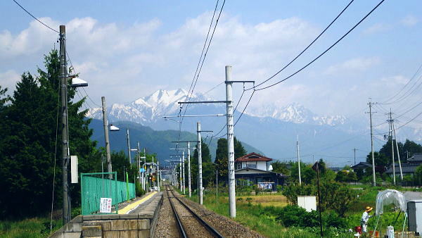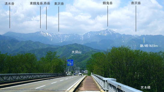 | 14日. 全員で奥裾花自然公園.と大町山岳博物館を回り.大町温泉郷「ときしらずの宿の」の「織花」に宿る。 15日. 朝解散.jr小糸線安曇沓掛駅からは独り旅. 安曇野の里道を散策し.高瀬川左岸道の歩道を下りjr安曇追分駅・・高瀬川流域Top 新津邸・・奥裾花自然園 大町山岳博物館と高瀬川左岸道・・大町温泉郷 13:00奥裾花温泉「鬼無里の湯」昼食=R406.奥裾花街道.白沢峠=白馬.アルプスパノラマロード =14:45大町山岳博物館15:45=アルペンルート=16:15大町温泉郷「織花」.h2 白沢峠 鬼無里から小川村を横切り.白馬村との村界尾根を横断し. 蕎麦粒山と東山の鞍部.白沢隧道を潜ると隧道口から後立山の頂稜が突然開かれた。 招待された手紙のパンフレットに描かれた景色だった。再び飛び出した後立山の雪多き山稜を見届けている。 新津さんによると4月は異常に多く降雨に見舞われ.岩壁の残雪は例年以上に落ちているとのこと。 それでも圧巻する姿を大きく現している。残念ながら峠に車を停めるだけの余地はなかった。白馬への峠越えは.深い樹林に閉ざされるが. 新葉の樹海を潜ることになる。R148号から青木湖.木崎湖の南岸を南下し.大町山岳博物館へ出向く。 博物館前からの展望 大町から仰ぐ山並・・キレットから唐松岳 玄関前乗鞍岳.北尾根ノ頭.G5とG4.五龍岳.白岳.唐松岳 八峰キレットの手前谷間が天狗尾根に挟まれた「カクネ里」・・鹿島川の支流大川沢.その源流部に当たる。 高台に建つ大町山岳博物館には北アルプスの地層の生い立ちと自然の姿. 登山の歴史を踏まえた山道具等が展示されている。 又後立山の展望に優れている。今日何度も眺めているのの全員で残雪被る山並を見詰め.互いに鋸状に刻まれた峰々を見詰めては 過っての自分を想い.浸り綴っているのだろう。博物館の裏山に鷹狩山1164m.(町営展望台無料)があるそうだ。 頂へはハイキングコース.1時間半と林道.車15分が綴られていた。大町の街並が広く見下ろされ,更なる展望が開かれている。 又共にライブカメラ設置され.1時間置きの画像と30日前までの映像がみられるとか。6:00〜20:00 カクネ里氷河 館内の玄関脇にシンボジウム「日本アルプスと氷河」と題するチラシがあった。大川の源流部天狗尾根の北側に.カール地形のU字形をなす 「カクネ里」がある。標高1800〜2150m付近.長さ700m.幅250m,厚み40mの氷体。 昨年は雪渓が崩壊する恐れがあり.危険で調査を中断していた。今夏の再開を予定してのシンボ。 氷体の流動を確認できれば立山.剣岳とならい.4つ目の県内初めての氷河になる。明後日.16日にプラザ大町で催される。 篭川流域の山並 中央.篭川流域・・蓮華岳.赤沢岳.鳴沢岳.岩小屋沢岳.爺ケ岳三峰 後立山・蓮華岳以南の山並 右景.右端が蓮華岳天下り裏銀に続く南沢岳.不動岳. 七倉岳と北葛岳 高瀬川以南の山並 左景.餓鬼ケ岳手前は乳川流域燕岳に続く東沢岳. 餓鬼ケ岳南尾根と正面が東尾根. 餓鬼ノコブ.唐沢岳 黒四ロイヤルホテル 2日目の宿は大町温泉郷.「ときしらずの宿,織花」に全員で宿る。アルペンルートは何度か通っているが常に通り過ぎている。 「織花」前のアルペンルートを扇沢方面へ.大きく右にカーブすると2km先に黒四ロイヤルホテルがある。 昔卒業して1年目の正月.爺ケ岳南尾根から下山の折.山を下りて地吹雪になり.大変お世話になっていた。 何度ものこ道を通ると.その都度想いだす場所。私にとって大切な記憶になっている。 5月15日.晴・・解散後一人.高瀬川左岸道.歩道を歩む 「織花」=9:40小糸線安曇沓掛駅一高瀬川左岸道.歩道=11:45jr安曇追分駅 大町温泉郷「ときしらずの宿.織花」.玄関前夕食後.富山さんがスライドを持参した。即映写会が催される。私も現役前後のスライドはかなり持っている。 段取りが悪く申し訳ないと思う。昨夜の呑み疲れか.早々に皆眠り付く。私も習い寝床に入るとアッと云う間に眠り込んだ。¥12.000 青木さん,池田さんは朝方早めに宿を発ち.東京組は予想に反し.私一人時間をもて遊ぶことになる。 結果的には新津さん夫婦に千国街道.R147号線沿いの安曇沓掛駅まで送って頂いた。ここは昔.富山先輩と現役を混じえ餓鬼岳に登っていた。 急遽.高瀬川左岸歩道から餓鬼の山並の展望を楽しみながら里道を歩む。 安曇沓掛駅からの入山と高瀬川探索 1969年12月30日. 中央東線鈍行の旅・・国鉄新宿=安曇沓掛駅 12月30〜04日. 安曇沓掛駅から餓鬼岳南尾根 2015年05月15日. 高瀬川左岸道.歩道・・安曇沓掛駅から安曇追分駅 jr小糸線安曇沓掛駅 爺ケ岳と鹿島槍ケ岳.五龍岳.9:40爺ケ岳南尾根と白沢天狗尾根.東尾根 昔はホームには駅名の掲示板以外.囲いも何もないホームだけがあった。ただホーム幅はもう少し広く想っていた。 千国街道,沓掛の十字路を左折し.安曇沓掛駅の南側の踏切で送って頂き.新津夫婦と別れている。 右折すれば直ぐ.県道山麓線に交差.乳川を挟んで.西山神社と国営アルプスあずみの公園口がある。昭和40年代当時は舗装されていたものの. 信号もなく.西側は乳川林道.東側は狭い里道で.右岸角から奥
