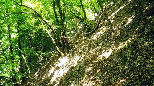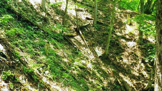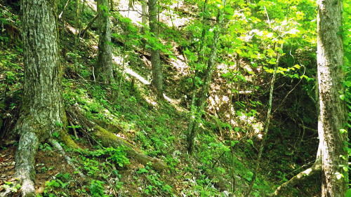 | ・・奥多摩西北部 ・・奥多摩.奥秩父東部概念図.山行表 タワ尾根の篶坂山を横断U・・小川谷下段歩道から篶坂尾根とオロセ尾根. 2015年05月26日.松村 日原鍾乳洞バス停から大ミズナラを経て小川谷左岸下段歩道―篶坂ノ東尾根を越えオロセ尾根から孫惣谷左岸作業道.林道孫惣谷線を周回する 大ミズナラから小川谷右岸下段歩道と篶坂ノ丸東尾根・・化け文字でページ1を削除.記録も失う オロセ尾根から孫惣谷左岸歩道と林道孫惣谷線 一石山神社.8:47再び日原川源流に入る。大ミズナラからタワ尾根を越え.小川谷右岸下段歩道から篶坂尾根を越え.オロセ尾根から孫惣谷左岸作業道へ。 小川林道は今だ車両も人も林道は通行止めの工事が続き.一昼夜完全に閉鎖されている。 8:48小川谷から三又へ.左岸歩道に入り水源巡視路を回り込む予定も挫かれていた。 それ故.タワ尾根の取付き.一石山神社から入山し.金袋山のミズナラへ迂回してから人形山東尾根を下り.小川谷の下段経路にでることにした。 ミズナラ巨樹巡回分岐点.10:00金袋山のミズナラ 1ウッドサークル.10:10小川谷右岸下段歩道 伏木窪東隣りの窪.10:50右衛門窪左岸尾根を下降して下段歩道を捉え 大栗尾根 下段歩道より小川谷対岸を望む.10:50犬麦谷とカロー谷を隔ての大栗ノ頭1591m.(滝上谷ノ頭) 下段歩道 「峰小屋尾根」末端.突き出し.10:58顕著な沢を回り込むと小屋跡(残骸)1010m10:30.35. 山側に古い道跡あり。 大きな山の鼻先に「奥多摩分区23/24」林班界標柱が立ち.柱にはマジックで「峰小屋尾根」の書き込みある。1030m. 末端から取り付.落葉が積もり獣道程度か明瞭な踏み跡は既になくなっている。 下段歩道のザレたトラバース地点 11:02 下段篶坂窪.危険に思え迂回している.11:08峰小屋尾根 上段歩道にでて.11:34篶坂窪右岸の枝尾根を回り込んだ所にあった林班界標柱と同じ標柱がある 篶坂ノ丸東尾根(篶坂尾根)までのおおよそ 上段篶坂窪を横切り更に篶坂ノ丸東尾根へ.12:16 上段の篶坂窪本流.12:20鈴坂窪東尾根 12:26 12:48 12:53 12:53 篶坂ノ丸南側の篶坂東尾根のツメ.タワ尾根にでて.13:04篶坂ノ丸 読めなくなった山名標.13:21大ミズナラから小川谷右岸下段歩道と篶坂ノ丸東尾根 オロセ尾根から孫惣谷左岸歩道と林道孫惣谷線 |