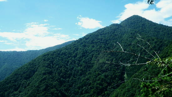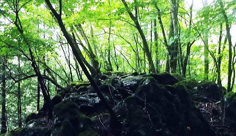 | 奥多摩.巳ノ戸尾根から石尾根.鷹ノ巣山X.石尾根を下る ・・日原林道南面の尾根Top 鷹ノ巣山から将門馬場に出るも漂う濃霧が強すぎ.取付きの先が全く分からず.樽沢尾根から東日原への下降を諦めj氷川へ 東日原から巳ノ戸尾根.鷹ノ巣尾根.稲村尾根を経て鷹ノ巣山へ―濃霧で樽沢尾根を諦め石尾根を末端へ下る 2015年08月22日.松村 旧巳ノ戸の部落から入り巳ノ戸尾根を綴り鷹ノ巣尾根・・「武蔵日原」の絵地図.寺屋敷と岩稜の展望台 お伊勢山.稲村尾根からヒルメシクイノタワを経て鷹ノ巣山に立ち石尾根を下り氷川へ 日原川左岸.旧道寄りの中日原集落 東日原バス停より集落を見下ろす.7:56日原川対岸の河原はタル沢尾根の末端 8月22日(土)曇後濃霧.御前中一時晴れ間あり jr御徒町4:49=4:52神田5:00=5:55立川6:04=6:34青梅:35=7:18奥多摩:27.西東京バス=7:51東日原bs. 都心では盆を過ぎても猛暑日が続いている。前線が薄れ.何時も午後になると雷鳴が轟き.狭い東京の何処かで大雨.洪水注意報が発令されていた。 不安定な天候の中.鳥島沖に台風16号が接近.北日本は北東の風を呼び込んでいる。その曇天を狙い奥多摩に入る。 暑さに対する疲労を考え.東日原を起点に巳ノ戸尾根から鷹ノ巣山に立ち.タル沢尾根を下り周回するルートを考えていた。 2年前の2月.榧ノ木山ノボリ尾根から鷹ノ巣山に立ち.このルートを下る予定でいたがヒルメシクイノクワからの北側の雪斜面の地形が呑み込めなかった。 アイゼンを持参せず氷化して諦める。又樽沢尾根自体は安定し.モノレール起動もあり楽な筈だったが.今回では3度目の挑戦になる。 ただ今回は尾根に入りながら濃霧で動けなくなり.尾根沿いに多く付いている筈の印さえ.見付けられず.戻り.迂回して石尾根を下った。 今回はよい機会に恵まれるも.滴る汗に体力の消耗が激しく.一歩.一歩が重く圧し体の動きを鈍くさせていた。 その上タル沢尾根の下りでは午後の凄い濃霧の壁に隔てられていた。地形が全く呑み込めないばかりか.立木すら分らなくなる。 一度下るも真近な尾根が起きる所さえ呑み込めず諦めめざる得なかった。登り返し.無難な石尾根を末端に下っている。 この下山の選定は四季の味わい噛みしめるには違った意味でよい下山になってもいた。 樽沢尾根末端 バス停広場より今回の下山ルート?旧道と4度目の樽沢尾根 日原の集落からタル沢尾根末端に下るには旧日原道から日原川無妙橋を渡り.右岸にでると旧日原道にでる。又タル沢尾根には旧樽沢道が綴られていた。 地元学マップによると旧日原道(日原古道)は現在の日原街道の対岸に位置し.「日原開拓時の600年ほど前から昭和20年頃まで使用されている。 道幅が狭く.地形は殆どが断崖絶壁を通り.眼下には日原が小さく見下ろされていた。」・・後略. 又樽沢尾根には現在モノレール軌道が設置されている。その新設が却って.旧タル沢道として通う人が減り,荒れ始めていると最近聞いている。 この樽沢尾根には昨年3月に下る積りで入山していたが残雪に埋まる,倉戸山南西尾根のトレースに魅せられ.急遽変更し今回に至っている。 ただ今度も頂から軌道まで下れば.末端まで如何にか下れたものの.現地に入り先が見定められぬ濃霧に遭遇.尾根に乗りながら頂へと諦め戻っていた。 7:51東日原bs一8:20取付き分岐一8:38旧巳ノ戸.廃村一9:06巳ノ戸尾根東端一10:09岩尾根一10:36八丁山一11:21お伊勢山. 東日原行,路線バスの乗客は5.6人が立ち.川乗谷バス停で2/3ほどが降りている。倉沢谷バス停では1名が下車.残りは終点東日原へ。 分散されたハイカーは鷹ノ巣山へはその1/4ほどが入山した。又巳ノ戸尾根に入るのは私独りだけになる。 連日の猛暑から考えると曇天に覆われ.20℃台の楽なコースに思われた。初めは一片の蒼空を仰ぎ足を運んでいる。 稲村岩と八丁山 中日原地区.8:03日原に入ると日原街道から常に見上げる風景。朝モヤの湧き上がる雰囲気に登行欲を掻き立てられ.目的の山へと足を向けさせていた。 今回は鷹ノ巣山に登るため.日原の中央左下の取付き看板「稲村岩を経て鷹ノ巣山方面登山口」から日原川左岸の河原に降りている。 鷹ノ巣尾根と巳ノ戸尾根 石灰岩の露岩した稲村岩稲村尾根の末端に稲村岩が立ち.そこを境に日原川右岸の支流,鷹ノ巣谷と巳ノ戸沢とを分け.日原川本流は右前方へ遡っている。 鷹ノ巣谷出合を飛び石伝いに渡れば左端がネズミサス右岸尾根の取付きになる。数年前に初雪のこの北尾根を詰めている。 呆けるが図形がよいバナド岩から撮影・・2012.05.05/10:30横篶尾根から長沢脊稜を綴り.七蹴山から秩父大平山を越え峠ノ尾根から浦山.川俣に下った折 日原川左岸へ降り.鷹ノ巣沢沿いの杉の植林帯に入る.8:05 日原川巳ノ戸橋.8:09鷹ノ巣沢出合 昔.巳ノ戸の集落(3〜4軒)に通じる橋が架かり.その直ぐ近くに大きな淵があった。洪水の度に埋まり.今はその面影はない。 左岸からさほど離れていない下流側.大岩のたもとに.古ミノト橋が架けられ.巳ノ戸の集落の入口になっていたようだ。 又鷹ノ巣山より流れ下