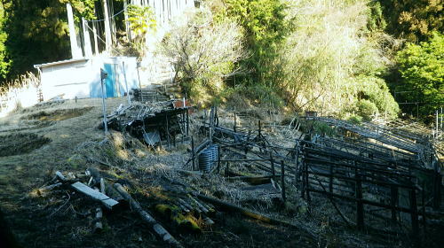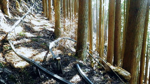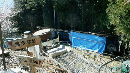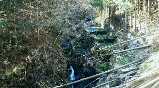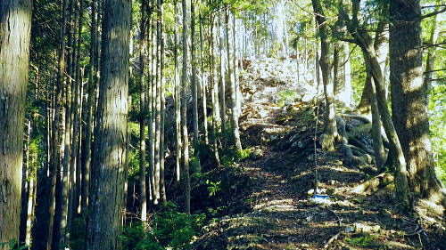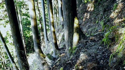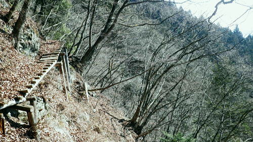 | 小中沢の縦横に走る水源林巡視路 ・・多摩川支流左岸.小中沢周辺Top 城山の古道.から三ノ木戸林道終点にでて.小中沢の下段経路を取り囲む尾根とその山腹道. 沖ノ指山.イソツネ山 橋詰から城山の古道と繋ぎ三ノ木林道から多摩川左岸の小中沢・中流を取り囲む尾根を周回し多摩川本流に戻り.朝方の取付き地点に戻る。 城山南尾根から小中沢右岸道を綴り.榛ノ木尾根に乗り.沖ノ指山.杉ノ森.イソツネ山と越えて.境集落からは奥多摩むかし道を周回して.氷川へ 2016年03月04日.松村 小中沢左岸尾根・城・三ノ木戸から小中沢下段径路・・統制の取れた雌大鹿の大群団 小中沢右岸尾根・榛ノ木尾根.沖ノ指山とイソツネ山 境から奥多摩むかし道.jr奥多摩駅 再び小中沢へ 5年前に山ノ神尾根から六ッ石山のトオノクボへ下り.榛ノ木尾根に乗り.小中沢右岸の下段の経路にでている。 ここで山葵畑で鹿柵のジャングルに取り絡まれてしまっている。脱け出すに沢沿いに入ってしまった為.幾重に重なる鹿柵に取り囲まれ .時間的に大きなロスを生んでいる。それを踏まえての入山。 浅い踏み跡の小中沢右岸山腹道を探り出し.「三ノ木戸からの右岸むかし道」と合わせ.最後は日没と競争しながら境集落に下り着いた。 日没が迫り.万事休す.途中の575m点から直接.集落に下り.大きな窪溝を利用してカカトを蹴る劇斜面から境集落の北側端に変更して降りている。 1/2万5千地形図「奥多摩湖」を読み.鹿柵のジャングルで小雨の降る中.一時でも野宿しなければと考えた山行だった。 今回は「奥多摩むかし道」.境集落の少し下流側の橋詰から「城」集落への古道を選び.綴りながらその時の経緯を改めて見直そうと思っている。 青梅街道.橋詰から城(じょう)集落への古道. 684m点コブから南南東に派生する尾根を詰め.城集落から林道三ノ木戸線を経て三ノ木戸へ。 今回は小中沢左岸径路から榛ノ木尾根に乗る。前回の右岸の巡視路から榛ノ木尾根に移り.新たに沖ノ指山を目指した。 イソツネ山からは尾根筋を綴り境集落に下りている。午後のアプローチとしては奥多摩むかし道(旧青梅街道)を通りjr奥多摩駅へ散策した。 檜村・城への取付き階段 正面は多摩川で右手前に回り込み檜村橋が架かる.7:49階段は小中沢左岸尾根の取付きでもあり.城を経由している 足元は奥多摩湖から続く「奥多摩むかし道」. 私の背を進めば.小中沢出合から境地区への多摩川左岸道に入る。 午後にはイソツネ山から境地区に下り.多摩川の左岸沿いの「奥多摩むかし道」に入り.この橋詰の階段を登っている。 正面のT字路は多摩川と並行する青梅街道に突き当り.橋詰のバス停があり.ここで朝方下車した。 左脇の階段を登った台地が檜原地区. 「奥多摩むかし道」の通過点で.先は氷川まで綴られ.又ここが「城」集落への 南尾根末端の取付にもなっていた。中沢.榛ノ木尾根へと径路を繋ぎ.周回し.午後にはこの階段に戻っている。 14時に改めて階段を登り檜村地区からの「奥多摩むかし道」を散策しながら.jr奥多摩駅にでた。 3月04日(金).快晴 jr御徒町4:44=4:48神田:50=5:55立川6:10=7:28奥多摩.西東京バス.小菅行:38=:43橋詰bs. 日の出は大分早くなる。立川駅.青梅線ホームに列車が入線する頃,白みだし.電車が動き出す間もまく日の出を迎えていた。 今朝は車扉が開く毎に忍び込む冷え込みも緩み.3月の声を聞き冷たさで身を振るわすこともなくなった。 日本海北部に発達中の低気圧が東進し.29日には南風強く東京でも最高気温が14.8℃を記録した。 低気圧は24時間で976hpaと急激に強まり寒冷前線の通過に伴い.今年3度目になる最後の大寒波が襲来した。 その後.移動性高気圧に覆われ沖縄から東日本太平洋側は概ね晴れ.気温は平年を更に上回る。 予報では快晴の雲1つない蒼空になり.気温は10数度と高く.暖気が流れ込み.これから向かう奥多摩の山々を包むとのこと。 終着駅の奥多摩駅広場から正面に見上げると江戸小屋山に続く九竜山の山々は既に雪白き装いを落としていた。 昨日に続く暖気団は見る見る残り雪を溶かしている。その暖かさをよそに梅の開花は少々遅れ気味. 青梅.宮ノ平沿線では白梅が満開に咲き競っていた。まだまだ紅花は乏しいが更に御嶽付近の庭先でも梅の満開が見られるようなる。 榛ノ木尾根・・イソツネ山と沖ノ指山と 城山南尾根の古道より.7:54手前の多摩川右岸の台地が多摩川の橋詰で.既に九竜山の尾根末端に当たる上流側の山ビコ尾根に乗っている。 見下ろす橋詰 橋詰の台地をUの字に流れ込む多摩川沿いの左岸に.頭上高くに.今回最後に立つイソツネ山が登り始めて最初に望まれる。 境地区を覆うよう小中沢を囲む山並があり.背には六ッ石山が聳えている。 この写真は橋詰地区を城山南尾根の檜村の高台から西側の多摩川対岸の境集落を高みを見下ろした風景になる。 6.7年前には九竜山.江戸小屋尾根を登り.多摩川線10号鉄塔基部から北西方面に広がる橋詰を逆に見下ろしていた。 路線バスはバス停直ぐ先の檜村橋を渡ると多摩川に突き出した橋詰の脇