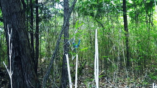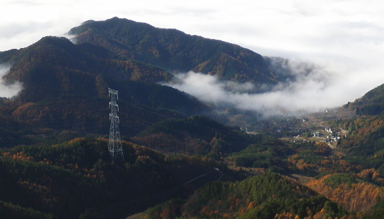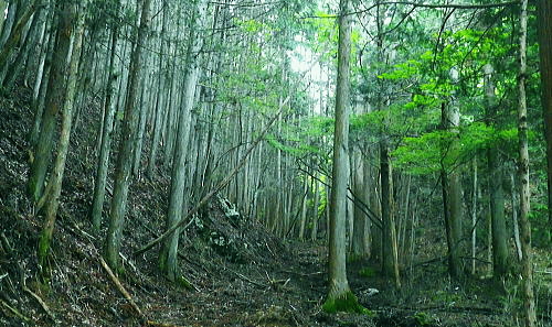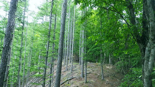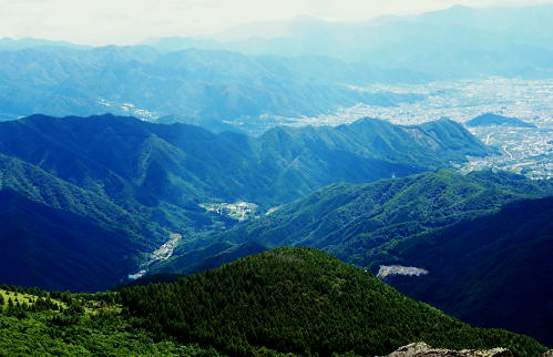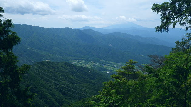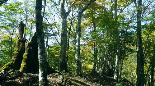 | 室床川から高芝山越えをし竹森川へ・・重川と支流竹森川流域Top 高芝山から1362m点コブを経て西群馬幹線180号鉄塔尾根―巡視路から1100m点南西尾根を経て平沢集落へ ・・竹森川沿いの「座禅草のみち」を散策しjr塩山駅に戻る。 重川大菩薩峠登山口から室床川中間尾根・・西群馬幹線の老番鉄塔群を望む 高芝山の巡視路.南西尾根から旧林道を経て平沢・・若番の鉄塔群と座禅草の道からjr塩山の道 高芝山と182号鉄塔 ハンゼノ頭からの展望・・2014.11.21/8:58笠取山から南に延びる境界尾根の柳沢ノ頭から連ねる高芝山。高芝山西尾根に建つのは西群馬幹線182号鉄塔。 背は郡内と国中との境をなす山稜で手前の長い尾根が重川左岸尾根。送電線は重川左岸尾根を越え大菩薩山稜を南下している。 冨嶽と御坂山地 高芝山から南方面.10:43富嶽を頂点に御坂山地の三ッ峠山が大きな山容を現わし.山麓正面に小さく突き出ているのが黒岳か? 御坂最北端の日川沿いの山々も望まれる。手前の山稜は日川尾根から源次郎岳を越える恩若ノ峰と裏側の南西尾根。 恩若ノ峰を下れば塩山へ。以前南西尾根を下りjr勝沼ぶどう郷駅にでている。 樹林を分けて小倉山954.8mが見下ろされ.手前の鞍部には林道北条線が横切っている。裾野は栗生野. 若草色に広がる塩山盆地の上部は塩山桃源郷. 下流の山腹斜面にはフルーツラインが横切っている。 jr勝沼ぶどう郷駅に5.6年前に徳並沢ノ頭から境沢ノ頭に回り込み直接下山する為.フルーツラインを横切っていた。 山越えは極端に岩稜へ 頂からは南西の岩稜帯を下る.10:481480m付近の尾根分岐 西斜面の分岐点.要注意.左下が北西の支尾根.10:56左の立木に赤テープが目立つのが南西の支尾根 分岐・・高芝山からの下りは黄色いテープのマーキングに変わり.暫くは痩せ尾根の岩稜帯が続き.根土の急斜面も合わせドンと落ちていた。 1510m圏で地形図にない小さなコブを越えると1480m付近で.ポイントの分かりずらい所にでる。ここは北西の支尾根でなく南西の支尾根に乗っている。 色々な褪せたテープに.立木には手製の小さな細長い道標が掛かっていた。ただ古く木片に書かれた字は失われ読めなかった。 それ自体が目立たぬ板切れになっている。初めは北西の支尾根に入り.主尾根でないと気が付いたが前知識がないと間違い易い。 進む方向の幹に巻かれた大き目の赤テープが以外と目に付いた。南西の支尾根に入ってからも1435m圏に.地形図にない小さな尖っ突きを越えている。 岩稜帯を終え振り返り.11:03前方の樹林の区切れる所で岩稜帯は終わり.竹森川側は切れ落ちた尾根斜面にでている。 前方右手の樹林が切り開かれると竹森川右岸に続く鉄塔群が望まれる。 滑沢山1291.7mと主尾根 背は笛吹川を隔てた小樽山方面.111:10竹森川対岸の滑沢山1291.7mが乗る稜に繋がる5つの177号〜181号鉄塔群。 手前2つの鉄塔が西群馬幹線の鉄塔尾根の末端の二又に建つ180号鉄塔とその手前がややL字に送電線を延ばす181号鉄塔。 奥の3つの鉄塔は竹森沢を隔てた対岸に延びる177号.178号.179号鉄塔。179号鉄塔基部を右折すれば滑沢山にでる。 左の笛吹川下流の丘陵台地は牧丘.恵林寺方面。 滑沢山と坂脇峠から鈴庫山の稜 右上が乾徳山.黒金山.11:12180号.181号鉄塔・・坂脇峠には鈴庫山林道が横切っているが竹森口側は通行止の処置がなされている。 峠からの右(北方)の尾根は詰めると鈴庫山に至る。 鞍部に乗る182号鉄塔鞍部手前の小さな窪地に巡視路標柱があり.西尾根の1310m地点で合わさる 大菩薩嶺と日川尾根 182号鉄塔基部より左手を振り返り.11:161330m明るい主尾根鞍部より背は小金沢連嶺(小金沢山と牛奥ノ雁ケ腹摺山) 1435m圏の小さな尖っ突きを越えると小鞍部の右下に竹森林道が見下ろされ.その先の1330m鞍部には182号の巨大鉄塔が建つ。 181号鉄塔にはトラバースしてここから巡視路を通るか.主尾根の1362m点コブを経て.支尾根から西尾根に入っている。 林道 柳沢峠が起点の竹森林道は高芝山の北西面に回り込むと法面の崩壊拡大の恐れがあるため通行止になっていた。 又県営鈴庫山林道と接続されているものの鈴庫山林道も坂脇峠手前で崩壊し.やはり通行止になる。そして共に改修どころか開通未定とのこと。 2年前坂脇峠から鈴庫山を経て.柳沢ノ頭.高芝山.小倉山とバテイケーに南下する企画を立てたが.前日のタクシー予約は林道が通行止めで中止した。 又当林道は塩山平沢から塩山滑川を結ぶ山梨県営分で.終点からは山梨市営に変わり綴られていた。 境界は山梨市と甲州市との境界尾根上にあり.赤岩御殿.二ケ引ノ頭を下った後のゲートで.境界点になっていた。2014年11月.柳沢峠より. 大菩薩嶺.熊沢山.小金沢山.牛奥ノ雁ケ腹摺山.手前に砥山 同基部より・・天狗沢.11:19天狗沢の中間尾根に乗る183号鉄塔と先程登ってきた室床川右岸尾根に乗る184号鉄塔。 1362m点コブ 左手の支尾根へ.11:30主尾根に乗り振り返る分岐.右前方から下ってきた。左前方の肩から左側へ西尾根に乗る。 鞍部から巡視路を通らず1362m点コブを経て.主尾根と離れ右手(