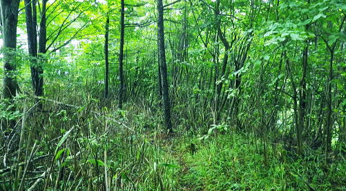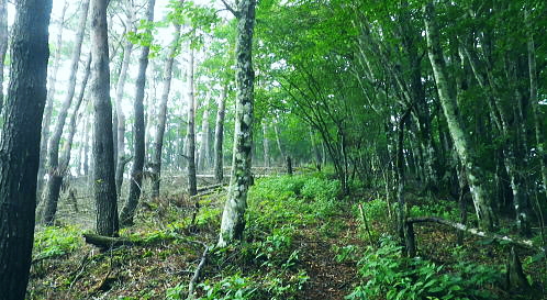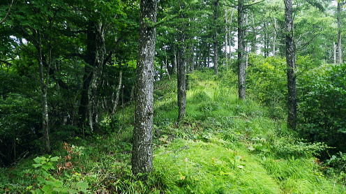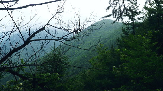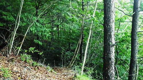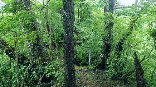 | 御坂山地の北面を繋ぐ.狭い間隔の市界尾根群・・笛吹市.大月市.富士河口湖町 清八山.刈置山.大沢山.ボッコノ頭 清八山から幾つもの境界尾根を細かく綴り.刈置山を経て女坂峠―大沢山からボッコノ頭を経て摺針峠へ.狩屋野川林道と新田 都留市の宝鉱山チチョ沢の巡視路から21号鉄塔を経て清八山 清八山から女坂峠.摺針峠を経て狩屋野川林道.新田とjr笹子・・短い市界尾根群 境界尾根(笛吹市と大月市) 7号鉄塔と霞む刈置山に建つ6号鉄塔.12:42清八山から大沢山.ボッコノ頭へと境界尾根を綴り.狩屋野川林道へ・・女坂峠.摺針峠 12:43清八山一13:05八丁山分岐一13:36(7号鉄塔分岐)一13:51刈置山一14:08女坂峠一14:28大沢山:40一15:13ボッコノ頭 一15:55摺針峠16:10一17:04林道ゲート起点.新田一17:58jr笹子. 清八山の分岐の戻り.八丁山への短い境界尾根(大月市と富士河口湖町)を辿り.右手の対岸に笛吹市との境界尾根を望みながら歩む。 以前歩いた大沢山の逆コースで綴っている。手前が奥野沢川の源流々域で大月市の管轄下に入る。 ここから大沢山までの尾根沿いの山径は.やや荒れ気味だが新たに確りした道標が幾つも設けられていた。 以前,大沢北東尾根からこの各境界尾根を抜け.角研尾根から笹子駅へ下り周回している。 5年ほどの違いだが主尾根沿いの整備は大分進んでいた。東山梨変電所からの都留線の巡視路も登山道として昇格し整備されていた。 境界尾根(大月市と富士河口湖町) 八丁山分岐まで.12:55 賑やかな各種の雑木に覆われる.13:00 八丁山の分岐.13:05八丁山分岐は笛吹市と大月市.富士河口湖町とパズルのような3つの境界尾根が合わさる分岐。5年前の師走に訪れた時は小さく足元に 八丁山分岐と示されていた木片が.これほどまでに立派な道標に建て直されているとは思いもよらなかった。 この先にある7号鉄塔分岐.刈置山にも.足元に示された小さな板切れだった。ここも見劣らぬ立派な道標に立て変えられている。 ここからは雑木の灌木帯に少し荒れた山径になる。それだけ又荒らされぬ静かな山域になっていた。 境界尾根(笛吹市と大月市の境界尾根) 分岐から痩せた境界尾根.13:06 黒木の茂る尾根.13:19人気の薄い自然に任されているような少し荒れ気味の尾根筋を歩む。 ここは北側の奥野沢の源流地帯は殆どが伐採され.落葉松の若木帯になっていた。疎林になり. 奥野沢下流の変電所周辺の展望が開け.明るい尾根を創っている。又1531m峰の西側は昭和63年2月に山火事にあった所。 本社ケ丸北面の尾根末端 奥野沢川沿いに建つ東山梨変電所.13:16左下に大きく白く反射して見下ろされるのが東山梨変電所。そこを中心に西群馬幹線.葛野川線と2つの巨大鉄塔の送電線があり. 繋がれている。左中は大沢山北東尾根に建つ西群馬幹線213号鉄塔と999m点峰。 右端は葛野川線32号鉄塔. 1つ置いて手前が終盤の33号鉄塔. 間の西群馬幹線220号鉄塔と接続し.境界尾根越えをして 大幡川に降り三ッ峠山へ。又右端の3基は本社ケ丸の東峰北尾根に乗っている。背は角研山北尾根. 東山梨変電所周辺 左側アップ.右上が追分と笹子町黒野田地区西群馬幹線と御坂線.都留線 写真から見る西群馬幹線ルートは左上の213号鉄塔から裾の214号.217号.216号と218号(重なる).215号.219号へ。 綴ればジグザグに折れている。この西群馬幹線は群馬変電所から上州の県界尾根を綴り.奥秩父.大菩薩山稜と長く綴られてきた送電線の鉄塔。 この先今朝の入山した大幡川に架かり.三ッ峠山や御正体山の山腹を通り.丹沢から足柄の新富士変電所と結ばれている。 馴染み深い山々を幾つも通り抜けている送電線になる。 大きな中央鉄塔の左脇にある小さな鉄塔は御坂線と都留線の併用鉄塔。1列に手前に並ぶ4基の鉄塔が見下ろされた。 取付きは変電所の下流側にある。併用線は刈置山北東尾根を6本の鉄塔で繋ぎ.境界尾根を越えた金川の河原左岸に建つ10号鉄塔で分割された。 郡内に入る都留線と国中に延びる御坂線とが東西に分かれている。 そして金川を遡り.詰めた鞍部に先程麓から詰めてきた21号鉄塔がある。入山は鞍部反対側の大幡川を詰めてきた。 清々しい色彩の雑木林.13:29送電線の展望を1本づつ綴り愉しんだ後.15分ほどで併用7号鉄塔の分岐にでる。以前はなかったと思う道標がここにもあった。 石塔に赤帽黒の境界プラがある。又年季の入った白いL字鋼の送電線標柱があるが「7」しか読みとれなかった。 左手に直進し少し入ると南西方に眺めがよい円頂の台地肩に建つ鉄塔を見ている。先ほど清八山から望んだ7号鉄塔で. 以前訪れた時は足元に金川が見下ろされ.都留線と御坂線の分岐送電線を見下ろしていた。ただ富士河口湖町側はガス濃く.今回は諦めている。 乱立する落葉松林.13:44落葉松林の刈置山 刈置山からの巡視路コース.13:51真新しい登山道と道標 刈置山1448m点の周辺は新たに整地され.6号から7号鉄塔への尾根筋は巡視路と兼ねた登山道で.丁寧に手が加えられていた。 黒プラ階段はフルに利用され.細尾根にはロープが張られた道標も新たに造られている。 6