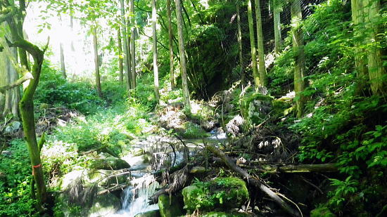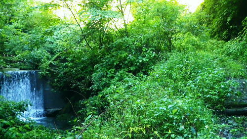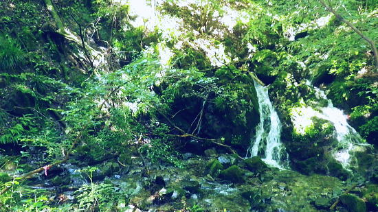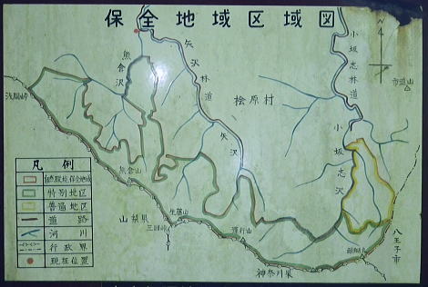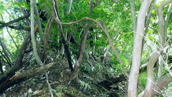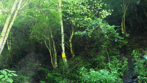 | 笹尾根大ツイジ周辺Top 大ツイジ北面の矢沢熊倉沢・・陸軍ノ滝と815m点北尾根を目指し. 861m点台地から軍刀利山西峰の北尾根を下る 大ツイジ北面の南秋川の矢沢熊倉沢流域に落ちる2つの北尾根・・千ケ尾沢右岸尾根から軍刀利山長尾尾根に回り込む 南郷の熊倉林道起点からトヤド沢出合を経て千ケ尾沢右岸尾根―広河原源頭から笹尾根を綴り軍刀利山西峰の長尾尾根を下り再び落合橋へ 2016年08月26日.松村 熊倉沢右俣右沢出合奥の滝を目指し.左沢の千ケ尾沢右岸尾根から熊倉山先・・陸軍ノ滝 広河原沢源頭860m圏から軍刀利山西峰.長尾尾根下り落合橋 5年ほど前の2月.中学の時の幼馴染と熊倉山省武指尾根を詰め.笹尾根から大ツイジを経て.浅間峠からトヤド浅間に回り込み上川乗に下りている。 その折.薄い春雪混ざりの大ツイジの笹尾根から冬木越えに覗き込んだ広河原沢の源頭に突き出す顕著な台形の台地861m点を真近に見下ろした。 何時かその尾根のツメに乗る平頂のような台地を下から登ってみたい願望を抱いていた。見染めてしまっただけの何の変哲もない台地。 頂手前の熊倉沢左岸側の支尾根に,はここだけが尖ッ突くが如く張り出す細長い台地状の平坦地が築かれている。 何度か見て定めているが.何の変哲もない台地かも知れない。頂に立つのは二の次で.そこに立ちたくなる。 下調べして漸く見付けた取付きの出合にある陸軍ノ滝と共に.今回の山行を思い付く。 860m圏コブから見下ろした深く落ち込んだ谷間の先にはドヤド浅間が聳え.そこを囲む背の山並みは浅間尾根。 更に大岳山馬頭刈尾根が遠巻きに重なるよう波打ちし望まれていた。熊倉沢に入渓したいと云う願望はこの頃から芽生え始めていた。 まず矢沢林道口の南秋川.矢沢橋を渡り.願いの山々へと入り込む。 矢沢本流と右俣の熊倉沢 又.左矢沢林道と右熊倉林道の合流点.8:09矢沢は南郷で南秋川と合流する沢であり.本流より支流である熊倉沢.軍刀利沢が沢登としては名が知れている。 矢沢は矢沢林道が上流部まで延び.奥矢沢橋で林道終点になると沢の水量をグッと少なくなる。 踏み跡に変わると水はなくなり.立派な炭焼き小屋が直ぐ上にある。踏み跡を忠実に辿ればと茅丸にでる。 矢沢.落合橋 南郷bsから矢沢沿いに入り.矢沢二俣で右手に熊倉沢を分けている。 浅間峠から熊倉山に掛けての大ツイジを水源とする熊倉沢は林道の終点付近で.右俣と左俣に分けていた。 右俣の右沢に少し入り込むと陸軍ノ滝18mが落ちている。右俣の左沢の右岸尾根は千ケ尾沢右岸尾根.そこから大ツイジでる。 その直下の850m圏付近に細長い平坦な台地がある。そこを目指した。冬木の時期だけが視界が広がり.背稜からでもはっきり目定められる台地だった。 矢沢左俣は落合橋を渡り林道矢沢線が矢沢沿いに綴られ.先は笹尾根の茅ケ丸に突き上げている。又矢沢二俣は軍刀利山西峰からの中間尾根は 長尾尾根で末端を落としている。復路はこの尾根を下り.落合橋下の矢沢林道側を渡渉して.右岸の護岸を這い上がり戻る形を取る。 「奥多摩」宮内敏雄著には「浅間峠から熊倉山間の稜線を南側の里では大ツイジと呼んでいた。 ここれは凸凹のすくない尾根の連なりが築地(泥で築いた塀)を連想させるからだろう」とある。 どっしりした平坦な起伏の尾根でありながら.熊倉沢から壁のよう高まる地形を築地と云いはなしている。 鶴川沿いと檜原街道を結ぶ大ツイジの主な峠路としては浅間峠.栗坂峠があり.南面の緩やかな斜面に対し.北面は滝が掛かる急峻で構成されていた。 今回はドヤド浅間を南側から回り込み.熊倉沢の源流を詰め大ツイジを東進し.広河原源頭から軍刀利山西峰北尾根を下り.熊倉沢出合に戻るルートを取る。 非常に強い台風10号.中心気圧945hpaが大東島の南.日本の南にほぼ停滞し.迷路を選び.今朝以降は東方に進み接近中。 この停滞で今日一日の予報は.関東地方では曇天から晴天に恵まれた。程ほどの気温が予報されていたが早朝から陽射しは強く,32℃を超す猛暑。 関東以西の各地では厳しい暑さになり.又日本海には高層雲で構成された前線が延び.対流雲が発達し九州北部で非常に激しい雨を記録する。 大岳山馬頭刈尾根と浅間尾根 笹尾根坊主山851mコブからの遠望.2011.02.19/13:14手前はトヤド浅間の稜と重なり合う熊倉沢沿いの尾根群 写真手前が860mコブから緩やかな台地状の肩が広がり.200m強先から尾根が延び谷合いに落ちている。この尾根の末端は熊倉沢二俣に没している。 2段並びの奥にあたる対岸の植林された山稜は左側が815m峰.右側がトヤド浅間831m. 浅間峠から時計回りに左手より支尾根伝いに回り込んでいた。 中間奥が浅間尾根に乗る浅間嶺と松生山. 更に遠方中央右が鋸山からの大岳山西尾根と南尾根から回り込む馬頭刈尾根。 足元に広がるのは熊倉沢の源流地帯.トヤド浅間とに挟まれた熊倉沢流域を見下ろしてはこの藪谷に気を惹きつけられていた。 檜原街道から熊倉沢に入り.北面の大ツイジに立つのも面白かろう。ただ行程的には短