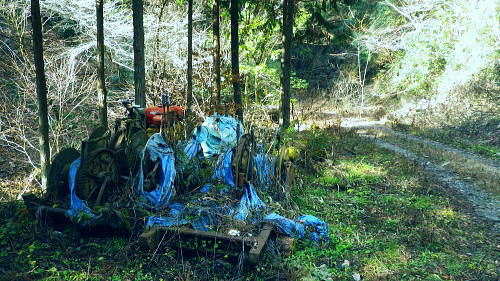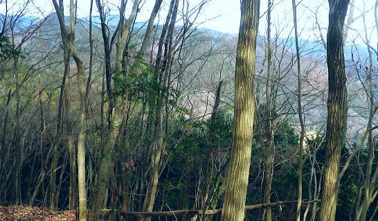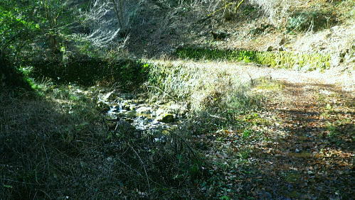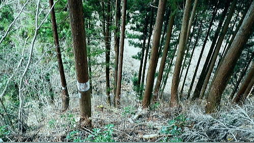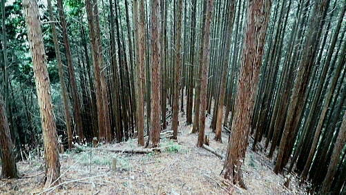 | 先月に続き再び盆堀川流域へ 峰見通り720m圏コブの市道沢左岸尾根の北支尾根から千ケ沢―盆堀沢出合.勝負口から左俣金堀沢を遡る。オリゾクナイ沢出合に至り昼食 醍醐路の散策と冥加沢右岸尾根(峰見通30m圏南東尾根) 市道沢左岸尾根北支尾根から千ケ沢を下り.金堀沢オリゾクナイ沢出合で昼食・・繋ぐ盆堀林道 オリゾクナイ沢右岸尾根を詰め.弾左衛門ノ峰の肩から南尾根を下り醍醐に周回 石津窪山高萱尾根 千ケ沢側より.10:26730m圏コブからオリゾクナイ沢出合へ 峰見通り730m圏コブ10:25一10:32(720m圏コブ):40一11;15千ケ沢本谷(千ケ沢林道)一11:26石津窪出合一11:26林道最奥の橋 一11:46勝負口一11:52栗ノ木橋一12:00オリゾクナイ沢出合付近.昼食:40. 峰見通りの頂稜に乗り.西隣の720m圏コブとの浅い鞍部へ下る途中で千ケ沢流域が見下ろされた。 その向かいに横切るのが前回盆堀林道から取り付いた石津窪山高萱尾根。その奥は臼杵山グミ尾根.更なる奥は離れて馬頭刈尾根だろう。 720m圏コブ 峰見通りの北尾根口.10:34峰見通り(栗ノ木尾根)から通り尾根 727m点コブ.手前の720m圏コブに立ち.道標は「←市道山・臼杵山,刈寄山→」とある。頭には「152-530」の管理番号が示されている。 コブ上から西北に掛け植林に覆われている市道沢左岸尾根は「奥多摩」宮内敏雄著によると「通り尾根」と呼称され.「雑そうに覆われた古道」と 解説されている。 峰見通り北面斜面の斜面は全体的に檜の植林に覆われ.北尾根筋には点々と木の屋号が記されていた。 尾根末端は石津窪出合に没している。河原に降りると.「雑そうに覆われた古道」と云われるような台地を抜け.次第に確りした古道.林道にでている。 市道沢左岸尾根 通称「通り尾根」の美林.10:54市道沢左岸尾根,北支尾根 720m圏コブから千ケ沢に向かい市道沢左岸尾根を下る。峰見通りから離れると笹原は薄れ. 間を空ける間もなく地肌を現わし失われている。ただ主尾根は疎らでも生い茂っている。 730m圏コブと同様に尾根筋に合わせ木の屋号が幾つも幹に印され.コブ上から西側を「宮本」.東側は「市」と分かちあっている。 700mで左から支尾根を合わせ.670mでも左から支尾根を合わせている。右側(東側)の木の屋号は途中から「岸」に変わっていた。 それから630m圏では右前方に下る主尾根「通り尾根」を分けてをり.左斜前方の北支尾根を選んでいる。 西側の木の屋号を含め途中から無屋号の自然林の灌木地帯に入いる。灌木帯を下り尾根末端の河原が近づくと樹林になり. 再び木の屋号を見て驚かされた。まして同じ屋号「宮元」が表示されていた。 700m圏支尾根 北支尾根より九郎ベエ沢?を隔て.11:03市道沢左岸尾根700m圏から左に派生した支尾根だろう。尾根筋の東面はガレ縁で刈寄山の遠望と共に千ケ沢沿いが見下ろされている。 又北支尾根の右下に延びる本尾根は灌木に覆われ見定められぬが.旧道の尾根筋は確りした踏み跡が綴られていた。 恐らく末端の急斜面まで続いているのだろう。 660m前後の急斜面を左寄りから回り込むと560m前後で.右に伐採地が広がっている。 上の写真と同様な地形をなしているのでは?そして尾根末端はワイヤロープが設置され.石津窪出合の真向かいに下りている。 北支尾根の灌木林の景観.11:05 尾根末端の植林.11:09北支尾根末端を下り.再び現れた「宮元」の屋号。最後は土壁状になるが左手前方下にあった1本の赤テープに導かれ助かっている。 本尾根と離れ北支尾根に入ると屋号はなくなり.藪の踏み跡になり.マーキング類もなくなっている。最後の河原に下りる所で.再び現れた。 九郎ベエ沢? 千ケ沢にでて.11:18千ケ沢 前回は伝名沢林道から高萱尾根に登っている。その分岐から1km奥に入り.勝負口から支線の千ケ沢林道が入っているのを確認していた。 石津窪出合から林道は小径になり.沢沿いの踏み跡になり.千ケ沢の河原に下りると急に赤テープのマーキングが多くなる。 沢底に降り左へ遡れば直ぐ.先にF1(高さ15m)が掛かり.沢に慎重に下り.上流へ50m進むと幅広い松尾ノ滝にでる。 林道終点からはF2(4段高さ25m)を見て.左岸を高巻き小沢を合わせ.テープを追えばよい。ジグザグの踏み跡を拾えば市道山にでられる。 下降地点から細い沢沿いを10分ほど下れば石津窪にでた。 千ケ沢 千ケ沢の左岸から石津窪が流入する.11:26急に飛びでるよう現れた左から小沢を合わせ.広い河原の石津窪出合にでる。 右岸沿いに千ケ沢林道が綴られ.左から石津窪.右からは市道沢を合わせると右から盆堀川を合わせ二俣にでる。 千ケ沢林道 林道最奥の千ケ沢に架かる橋.11:27林道らしくなり道幅も広く取られ.目の前には右岸に渡る立派なコンクリ橋を渡って.右岸沿いを進むと右手から市道沢を合わせている。 入山峠付近? 林道からの遠望.11:32千ケ沢林道 勝負口への千ケ沢林道を下る.11:39 冬至を過ぎても緑多い大地.11:43石津窪山高萱尾根 盆堀沢出合.勝負口より右俣を見上げる.11:46右俣から下り.真向かいの出合上は刈寄山南西尾根の末端.鋭く抉り落ちる垂直の側壁で見上げられず。 
