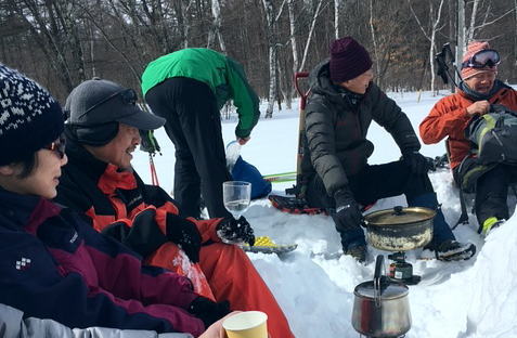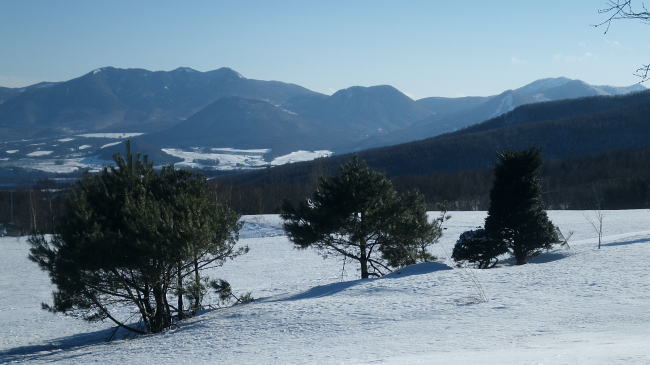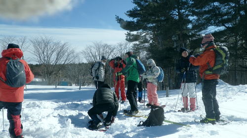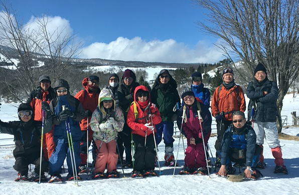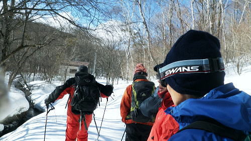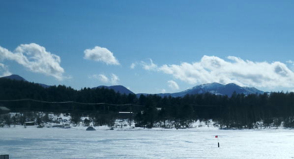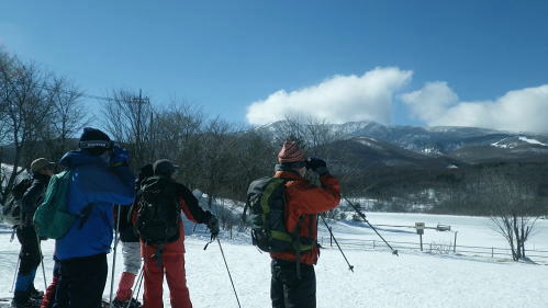 OB親睦山行Top 春季OB親睦会Ⅳ・・パルコール嬬恋スキーリゾート ルーナ前で解散前にて.2月19日9:00 四阿山東麓.パルコール嬬恋スキーリゾート「コテージ・ら・ルーナ」18時集合. 2017年02月18~19日 m.見城.田中.池田.松村.鈴木(輝).工藤.田島.立松.吉武.石戸.宇塚.高橋.石田.児玉.加波.鈴木(俊).河原.青山.立松.中川 ・・20名参加.OB会々長.工藤 上信越自然歩道と草津高原ゴルフ場 四阿山東麓.バラギ湖周回・・OB親睦会・八ッ場ダム本体工事現場 パルコール嬬恋スキーリゾートからバラギ湖周回 湖畔に下り.14:00昼食風景 バラギ湖南岸で昼食.12:302月18日(土).快晴 スパックス草津10:25=草津道路.長野街道144号=日帰り入浴「バラキ温泉.湖畔の湯」=11:00パルコール嬬恋スキーリゾート「コテージ・ら・ルーナ」 渋川ICより約62km.碓氷軽井沢IC約50km 「コテージ・ら・ルーナ」12:00=バラギ湖.昼食13:25一15:20「コテージ・ら・ルーナ」.h2 12時集合に合わせゆっくりスパックス草津をでる。今朝は太平洋沿岸を長い前線が通過したため.気温を急激に落している。 長野街道に戻り右折.嬬恋への長野街道に入ると道路伝いの温度計は-1℃を示し.快晴で風は強い。浅間山を正面に見て.右手に回り込むと嬬恋へ。 一度コテージに入り.全員が集合したところで.スキー組とスノーシュ組に分かれ.各々が夕方まで楽しむ。バラギ湖組はバスを出して頂き.湖畔にて昼食を摂っている。 昼食風景2朝方,T君から雪のテーブルを作ると連絡が入った通り.湖畔南岸の雪原に立派なテーブルが作られていた。ただ風強く足元でコンロを点す。 時間は十分ある。オデンに焼酎が回され.ゆっくり昼食を摂り.雪上の雰囲気を味わってから散策に出掛けている。 昼食風景3 昼食風景4バラギ湖南畔 初めての者も多いスノーシュ取り付け風景.13:25登山靴 前山行は1/29日.東京近郊の御前山に出向く直前.明け方に雪山用に使用している皮登山靴ハンワグの靴底が剥がれるアクシデントが起きる。 張替をアートスポーツにお願いしたが間に合わず.長靴よりよいと慌てて布製のカスパ登山靴を活用している。その時使用しのがアートスポーツの大袋2枚。 5月14日に学内で行われた2016年度RHC定例総会の事業報告書が6月に送られてきた。 その中にs51年度卒の石田君の親睦スキー「スノーシュ編バラキ湖周辺」の紀行も添えてある。その中の文章を抜粋すると。 「・・立松さん夫婦により男子Pと女子Pにそれぞれ分かれ周遊を始めました。サクサクと雪を踏みしめて歩く感覚が何とも云えませんね~。 噴煙を上げる雄大な浅間山を望み.空は真っ青で.真っ白な雪面. みんなのカラフルなウェアーのコントラスト。(そういえば松村さんが足首にスーパー? のビニール袋みたいの細引きで巻いていましたがスパッツですか? 変に浮いていましたけど。松村さんだから何も言えませんでした。」 途中・・とのこと。 結果的には長く歩くには長靴より楽で安定していた。スパッツをビニール袋の上に被せると見栄えはよいが.ビニールの摩擦で不安定さを増し.ズリ落ちている。 又風体もウェアーがカラフルなため目立たぬと思っていた。それは私が考えるほど甘くなかった。一言.言ってもらえば何でも答えたのだが。 この靴は2005年07月に購入。11年10月からは積雪用と無雪期とに分けて使用している。 まだ靴本体は崩れず確りしているため.゙アテックスとビブラムを張替をお願いした。 それが遅れ.オーバーシュズの如く厚手のビニール袋を工夫し.2本のゴムバンドで締め.スノーシュに対応している。・・・真新しい登山靴.2014年04月 北岸の万座方面 湖畔を右回りに周回左手が黒湯山2007.1m. 中央が万座山1994.4mで右麓の斜面が万座温泉スキー場。 万座山の右手鞍部が山田峠になり.右肩奥に小さく煌めく白銀は横手山だろう。 バラギ湖は四阿山東麓のバラギ高原,標高1400mにある周囲約2kmの湖。無印良品による管理釣り場がある。 又高原キャベツの産地としても知られる妻恋村にあり.上信越国立公園の一角を占め.浅間山.四阿山.本白根山などの山々に囲まれる高原地帯。 亜寒帯湿潤気侯に属し.村の規模はほぼ山手線内の大きさで.人口は約5千人。 この湖畔の東半面は例年では氷穴のワカサギ釣りが行われている管理釣場。 釣果残念ながら例年に比べ低調過ぎ.一週間前の2/12日を持って閉鎖されている。例年ならば3/中旬まで営業していると云う。 先輩宅に泊ることになり.時間をつぶすにはワカサギ釣りは.もっともよい機会に恵まれている筈だった。宴では天婦羅の肴にもなる。 明日,昼頃まで半日穴釣りをしていれば丁度よい時間に新居に着き.和気あいあいと楽しめただろう。 HPによると試釣という形で釣りをすることができるが.それも惨い話だった。 フィシングエリア.(フライ.ルァー.テンカラ.餌釣り)対象魚・・レンボートトラウト.ブラントラウト.イワナ.ヤマメ(自然繁殖)は無印食品.キープは日時.券により15~2匹. 西岸の四阿山方面 右手がパルコール嬬恋スキーリゾートで裾が宿泊地.4:10今朝は昨日とは比べものになら