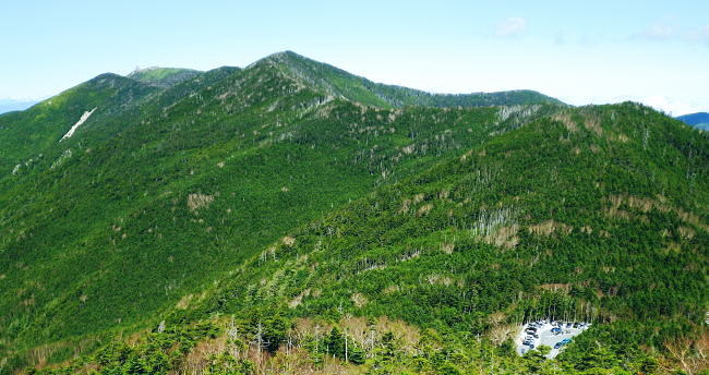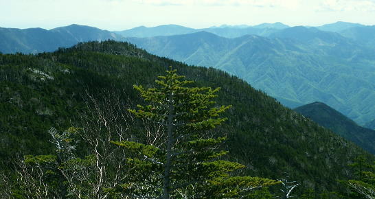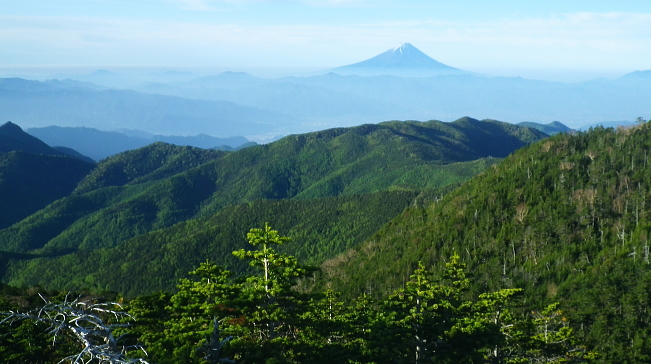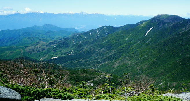 | 昔懐かしい奥秩父.大弛峠に立ち.石楠花新道から北奥千丈岳.奥千丈岳.ゴトメキからトサカ ・・笛吹川流域Top 学生時代に何度も通った大弛峠と峠路の林道が開通し.直ぐ新津先輩と山岳ドライブに向かったが.その時はまだクリスタルラインに回り込み.清里にでていた。 それから家族全員で金峰山を目指し.寝袋も揃え出掛けたものの.豪雨後の修理ができず..其の儘信州.霧ヶ峰へ変更させられていた。 今回はデマンドタクシーで直接大弛峠でてい。北奥千丈岳からゴトメキを経て石楠花新道から大ダワを経て東奥山窪から徳和へでる。 2017年06月04日.松村 大弛峠から北奥千丈岳.奥千丈岳.白檜平・・甲斐側の大展望 白檜平からゴトメキ・トサカ・大ダオ 東奥山窪を下り徳和林道から徳和 北奥千丈岳石楠花新道 国師岳山頂から南面を望む北奥千丈岳から延びる2つの山並を国師岳山頂より望む・・2018.06.04/5:47 大弛小屋で一泊.鳥ノ尾根を下る折.国師岳から望んだ山稜・・北奥千丈ケ岳からゴトメキで.右に鳥ノ尾根を分け.左手の石楠花新道へ。 東奥山窪に下らず.尾根を直進すればトカサから大ダワ・乾徳山へと続く。 今回綴ったルートの一枚の写真 乾徳山から北西面を望む乾徳山から黒金山.牛首ノタルへ出向いた折.乾徳山々頂からの展望・・2012.09.16/12:53 大弛峠から国師嶽.北奥千丈岳からゴトブキ.トサカ.大ダワと繋ぎ.東奥山窪を下り.徳和へ乾徳山登山口に繋がる分岐にでている。 その今日一日の行程がこの写真に全て映されている。又北奥千丈岳の頂からの大展望も素晴らしかった。 北奥千丈岳へ 北奥千丈岳から石楠花新道を経て鳥ノ尾根を下る積りで.栄和交通の「募集型企画旅行契約」に関するデマンドタクシーの予約を取っている。 その折予定より大分早く明日.明後日の席がガラガラと知る。この数日好天にも恵まれていた。 それではと2週間振りのトレーイングを兼ね.急遽東奥山窪へ下る石楠花新道のルートを選び実行する。日帰りの高度差は1771m. この山域は笛吹川の本流西沢と笛吹川の支流琴川に挟まれた流域から荒川を遡る。「甲斐国志」のいうところでは西沢御林山と奥千丈にあたる。 関東から東海.九州に掛け細長く.高気圧帯が延び.気圧の谷や上空の寒気の影響で.山梨県中北地域は強風と乾燥注意報がでていた。 25%前後と湿度は低く.カラッとした爽やかな朝を迎えている。日陰に吹く風が心地よく感じられ.ゴトメキや大ダオでの1本ではやや肌寒く上着を羽織っていた。 昔の面影を全く失った大弛峠 8:44開通する以前は車も通れぬ峠路だった。今は懐かしさも何処やら全く分からぬほど開かれていた。 右の写真は峠越えをする甲斐側.塩平からの川上牧丘林道の終点 6月04日(日).快晴後晴 jr御徒町.¥1944. 4:44=4:49東京:58=6:13高尾:14=7:22塩山駅北口.栄和交通.¥1800 7:30=柳平=8:50大弛峠b. 4時24分.日の出と共に元浅草の自宅をでる。頭上を見上げるとビルの谷間は厚い層雲に覆われ.西方の端空だけが途切れていた。 やや西風があるも暖かい。八王子辺りで明るい白雲に変わり.高尾にでた頃には雲1つない蒼空に恵まれている。 今回は始発から4時間強.帰路は3時間と山中だけでなく.日帰りにしては長い乗物の旅にもなっていた。 土.日.祭日だけの予約乗合バス(予約は前日の午前中まで).デマンドタクシーに初めて乗車した。本来は柳平まではバスに乗り. 林道規制で中型車に乗り換える処.乗客は9名と少ない。7時半に塩山を発ち柳平で休まず.その間々大弛峠にでる。 柳平へ 塩山盆地.塩ノ山の南側を回り込み.塩山勝沼線,県道38号線で窪平から牧丘トンネルを潜り.出て左折すると右角に「クリスタルライン入口」の杭を見る。 直進する西沢渓谷への雁坂みちを分け.琴川沿いの杣口塩山線.県道219号線に入り.一直線に延びる2車線の道が葡萄畑の中を抜けていた。 柳平まではクリスタルライン(同・・杣口林道・杣口塩山線・柳平塩山線)に入り.鳥ノ尾根の南沿いを綴り.乙女湖北岸の柳平へ。 乙女高原沿いに入るクリスタルラインと分かれ.塩平から登ってきた林道川上牧丘線を合わせ大弛峠へ。 クリスタルライン クリスタルラインの経路は東方の山梨市牧丘町窪平(R140号・秩父往還・雁坂みち)から西は北杣市高根町清里(R141号.佐久甲州街道.清里ライン)まで. 標高1000m以上の森林地帯を抜け.総延長は68.1kmで県道.林道.農道.市道等の舗装20路線から構成されている。80%は林道. 柳平から先のクリスタルラインは林道川上牧丘線(焼山林道)に乗り換え.乙女湖の南側を戻りよう回り込み. 焼山峠にでて荒川林道に乗り変えている。乙女高原を経て甲府市黒平に至る荒川林道。更に林道を繋ぎ続けると清里へ抜けられる。 この林道を綴る北部山岳地帯一帯は水晶の産地としても知られ.クリスタルラインの愛称で呼ばれていた。 金桜神社と鳥 琴川の小さな流れを渡った所で.杣口林道が右手から入り繋がれている。次回は北奥千丈岳山からここまで下山できればと思う。 更に1.5車線と狭ばり.変形の十字路がある林道塩平徳和線を横切る。右折す