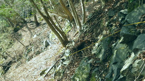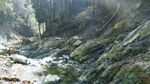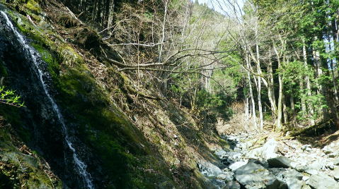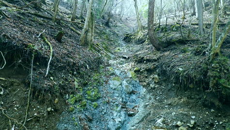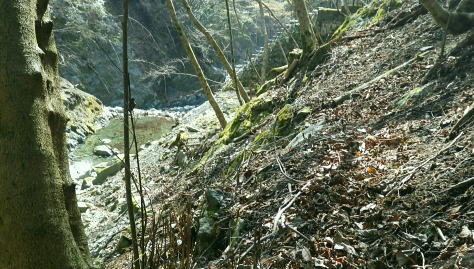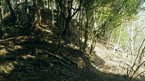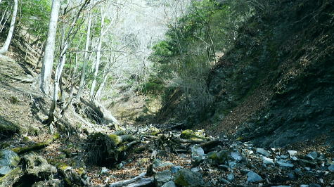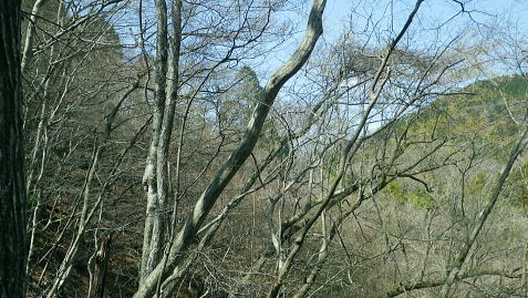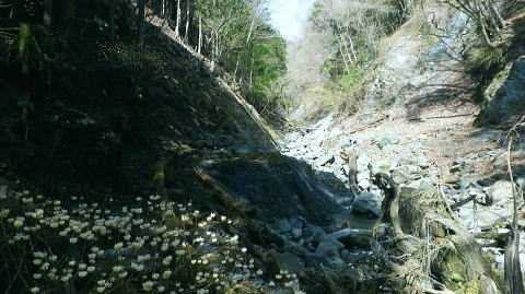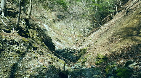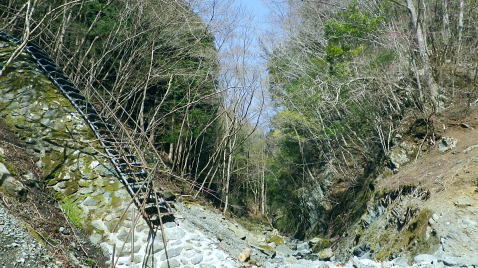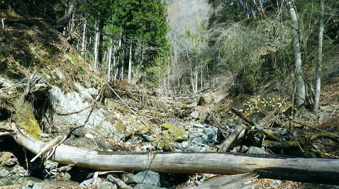 | 世附川悪沢流域・・西丹.世附川流域Top 2018年04月.浅瀬から悪沢山神沢を経て世附山神峠越え―馬印周辺と水ノ木林道の軌道跡を探索・・北岸から丹沢湖bs 2018年04月.浅瀬から悪沢熊沢を経て椿丸南尾根―熊沢ノ頭南尾根から小熊沢ノ頭南東尾根・・世附林道から三保ダム.丹沢湖bs 続.再び世附川水ノ木川流域に戻り.4月一杯の三連荘で「西丹沢の西」を探る。 「旧三俣山荘」の悪沢取水口から入渓して.世附山神峠越と.世附ノ大棚へ.水ノ木(馬印)に係わる山域に入る。 ・・復路は林道以前の旧森林軌道を探索して浅瀬に戻り.浅瀬から左岸の湖畔道.車道沿いに丹沢湖左岸沿いに丹沢湖バス停にでる。 2018年04月01日.松村 山神沢枝沢から入渓し.手前の小尾根から世附山神峠・・東電の取水塔 山神峠越えで「水ノ木」周辺を探り.世附大棚林道 水ノ木林道.旧軌道から浅瀬に戻り.左岸の湖畔沿いから落合発電所 西丹沢世附川流域 以前.この広大な流域の山々は「世附山」と呼ばれ甲州平野村や駿河の柳島村などでは入会の山として古くから利用されている。 森林軌道のできる前は国有林の払い下げにより水ノ木に製材所を設け.木材や木炭を馬の背に乗せ峰坂峠を越え. 鉄道のある駿河小山まで運ばれていた。又平野村では「切通峠」越えが入山し易く.水ノ木との係り合いが多い場所だった。・・山中湖村史より 水ノ木林道は水ノ木(馬印)を終点に膨大な面積を持つ国有林を擁する幹線林道で.大又沢幹線林道と共に世附川流域の木材運搬を担っていた。 共に起点は浅瀬. 大又林道の終点は大又沢の部落(地蔵平)になる。 今回は前々回に偵察した吊橋から悪沢径路を綴り.山神沢世附の山神峠を越える。そして世附川の奥地.待望の水ノ木(馬印)へと世附大棚へ。 それと林道以前の旧森林軌道を探索しながら水ノ木林道伝いに浅瀬に戻り.世附川の全体像を朧ながら知ることにになる。 浅瀬橋 欄干の補強もレールを再利用しているのだろうか? 7:41傾いた銘板柱.対岸には旧軌道の橋脚跡が臨める. 4月01日(日).快晴後曇 jr御徒町山手線.¥1940:11=5:17東京.東海道線始発H:20=6:32国府津.御殿場線:35 =7:04谷峨.松田合同タクシー.¥4270=7:25浅瀬ゲート. 始発の東京駅ホームで白みだし.都心の品川辺りで日の出を迎えている。5:29. 何時ものようにボックス車に乗り込む。向かいのボックス席脇には鉄道マニアが乗り込み.ホームで出発を合図する駅員と.その姿を収める為.カメラで追っている。 何度かの経験で何時も同じ場所に立つのを知っているようだった。恐らく録音もしているのだろう。 平塚辺りまでは殆ど進行方向の左後方にカメラを向け2席を一人占めしている。丁寧に撮る姿に車内は満席だが席を求める人はいなかった。 撮る姿を誰もが見守っているようだった。行楽日和の好天に恵まれ.今日ばかりは御殿場線も以外と込み合っている。 地図を見ながら語り合うハイカー.ハイキングにゴルフャー.ホッケー用の道具を持つ団体もいた。 移動性高気圧が夜明けに関東地方を横切っている。それでも関東南岸は一日中快晴の予報がでていた。 御殿場線に入ると富嶽の裾野はまだ一面の雪斜面に覆われ.額から食み出す大富士を正面に仰ぎ.車内は暑過ぎる暖房で腕を捲くるほど。 既に朝方から霞み掛かる春らしき陽気で.無人の御殿場線谷峨駅に下車し.予約したタクシーで前回と同様に丹沢湖々畔の浅瀬に入る。 渓流釣り 浅瀬の林道に入ると漁業協同組合の関所のようなプレハブ小屋が道沿いにあり.組合員と再会した。今日はまあまあの釣人だが多くはないと。 広い流域で蜜漁が多く.山中湖を越えて来る釣人や泊り掛けの釣人が多いとのこと。焚火の殆どが密漁者だという。 又協同組合は自然保護のため放流の義務も課せられている。数は少ないが林道終点付近を主に大型を放流していると語っている。 昨日は尺イワナ40cmが含まれたと聞く。本当かと天然では信じられぬ言葉を聞いた。釣り場所にもよるが地形的に殆どは放流したイワナだろう。 私は先週.都釣連の鮒釣り大会に参加.与田浦の畦道でフナ39.5cmの大型ををグルテンで釣り上げている。 釣歴・・何十年だが尺フナでも初めての大型。「素晴らしいですね!」と告げ別れている。 堰堤上流側の整地作業中.7:56前回1月に訪れた時はまだ堰堤は築かれていなかった 浅瀬から山神沢を経て山神峠 7:27浅瀬ゲート一18:12吊橋一8:44巡視路分岐一9:10悪沢二俣一10:03山神沢二俣一10:34手前の枝沢一11:10山神峠. 今年になり湯ノ橋まで偵察して2週間前には椿丸南東尾根を詰め.吊橋までは予備知識を持ち.既に慣れた道中になっている。 1月には芦沢橋手前の小沢で2台の大型シャベルカーが沢奥に入り沢底の基礎整地作業を始めている。 挨拶を交わしていたが.それが3ケ月ほどで大きな堰堤がほぼ完成し見上げられる。堰堤の立派さと早さに驚かされた。 蒼さが目に沁みる素晴らしい小春日和に恵まれるも.やや風があり朝方の山陰はまだまだ肌寒い。 芦沢出合と左岸尾根 芦沢橋手前左岸より.7:58悪沢峠へと旧山神径路が綴る 