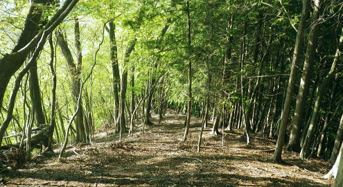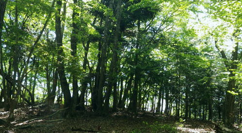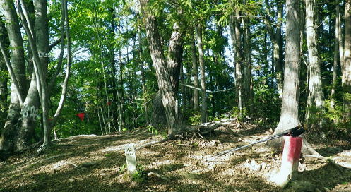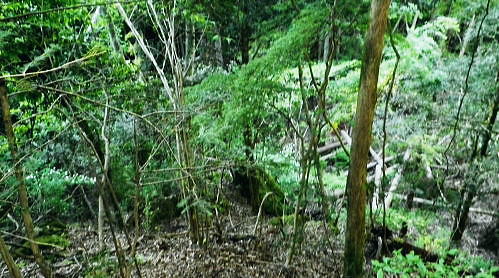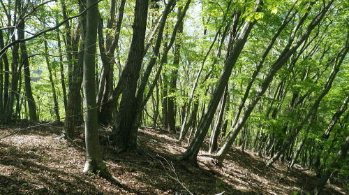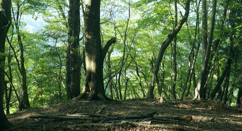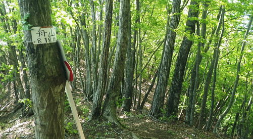 | 前道志北面の尾根を西へ綴る・・道中で過って下った大平沢沿いの尾根を探索し.鳥屋山北尾根とその左支尾根 田野入林道から高柄山・大丸―矢平山・舟山から北尾根に寄り.鳥屋山北尾根を下る。そのまま直進し立野峠の峠路にでた 田野入林道から高柄山・矢平山 730m圏のコブ北尾根の探索と鳥屋山北尾根・・jr梁川 矢平山北西尾根 塩瀬川中間尾根のツメ.13:31矢平山から50m先が北西尾根の取付きになる。立木に古い黄色いテープを見ている。 初めて前道志山域を訪れた時に入山したルート.主尾根にでて奥道志の展望を楽しんでから倉岳山北東尾根を下っていた。 一面に覆う春雪に雪山の煌めく姿を望み. 時はズレルも次回の山行だと二十六夜山を眺めていた決めた山行だった。 北東尾根はトレースし下っている。この尾根を下れば塩瀬沢二俣にでて.富士東部林道を横切り.塩瀬地区にでられる。 寺下峠からの登山道と合わさり甲州街道にでていた。 今日も暖かい日差しを目一杯受けている。ただ午後のなると南東の風が強くジャンバーを被っても肌寒い。北側に入れば風は途切れるだろう。 矢平山からの岩場下り 矢平山から丸ツヅグ山への鞍部へ.13:40以前こんなに下ったかと思うほど鞍部までの高度差があった。その岩場を繋ぐ延々と続くロープ。痩せ尾根は更に両側を抉り落ちている。 谷底は見えぬものの鞍部にでれば露岩は失われ.今度は緩やかなオワン形の飯盛山の樹林の茂みに変わっている。 この急激な縦走路の変化は覚えていたものの迂回せず直登。頂から踏み跡を失い.地図も見ずに西方の尾根に入り.可笑しいと戻っている。 何とマ〜,適当に歩いているのだろう。落葉を蹴り.枯葉に溺れては喘ぎ戻っている。 丸ツヅグ山 標高776m→763m訂正.13:52楽だと思い何も考えずに頭に頂稜を描き.丸ツヅグ山を越え西側の小尾根を下っていた。 大平沢コゴア沢左岸尾根を降りている。登山道からは外れている。 最初は踏み跡があったものの消える始末。可笑しいと地図を読み.素直に背稜まで戻る。コースは北側を巻いていた。 渋い下り道.14:07寺下峠 14:19桂川塩瀬←富士東部林道横断←寺下峠→秋山川下尾崎・林道の起点・・間は延伸工事中. 丸ツヅグ山と寺下峠との鞍部に左下に降りる踏み跡を見ている。峠路へ降りる山道だろう。舟山の長い東肩下が寺下峠. 秋山地区は以外と公共の便が悪く寺下峠越をして奥秋山に入るハイカーが多い。 私も以前穴路峠から入山し二十六夜山を越え.寺下峠から梁川駅へ戻り周回していた。 舟山 14:44 何処が頂だか意識していないと通過してしまいそうな細長い平頂の西側の肩が頂になる。 山名標はあるが展望はない。又短い北尾根を持ち自然林から植林帯に入り.寺下峠の峠路に延びている。 頂稜を西側に下り.727m点コブとの鞍部と云うより窪みから北側に延びる712m点コブ尾根(大平沢コゴマ沢左岸尾根)が延びている。 6年ほど前に訪れ二十六夜山の帰路.寺下峠に登り返してから下山した尾根で.再びこの尾根の514m点コブからコゴマ沢沿いに下る積りでいた。 730m圏コブ北尾根 西隣りの尾根を偵察.15:35その712m点コブの北尾根を見過ごし.1本先の中間尾根にでてしまった。中間尾根上部を三度往復するも,先を考えず, 知った所だと暗黙に歩み続け先が分からなくなっている。諦め1本先の尾根を探索し.15時45分に670m付近から頂稜に戻っている。 大分時間をロスした。・・この尾根の右(1本手前)に並行して横たわっているのが大平沢コゴマ沢右岸尾根。 中間尾根.15:39 ここからは崖縁の如く落ちている.15:46670m圏から戻り.頂稜を更に西へ向い鳥屋山に立つ。 鳥屋山 ロープに赤布が付く北尾根の取付き.16:08鳥屋山808mは雑木に囲まれている何の変哲もない狭い頂。立木に手製の山名標が掲げられ.その裏側が北尾根の取付になる。 手前には太めの赤いコンクリート柱の恩賜林標に石柱が立てられていた。又この先頂稜を西へ進み. 見晴らし展望を持つ伐採地跡のある細野山を越えると倉岳山とのたわみ,立野峠に立つ。 鳥屋山北尾根 甲州街道.梁川より矢平山北西尾根から春雪覆う倉岳山北東尾根を綴り.立野.梁川に下って撮影・・2012.03.14/7:09 鳥屋山北尾根 暫くは北側に傾斜が傾く尾根を綴っている.16:14北尾根の下り初めて直ぐ赤い恩賜林石標に「境界見出標」を見て.マーキングのある尾根と知りホッとした。 地図を一度見れば確実に下りることができる。人とは現金な者だ。ただ今度はマーキング類が多過ぎ.反ってカックリをもしていた。 自分ながら人とごとに何と天邪鬼なのだろう。これで展望がよければ絶唱したかも知れない。 露岩の急斜面にはトラロープが付けられ.下ると686m点で石標385を過ぎて.680m付近では勾配は緩む。 見るからに歩き易い尾根筋.16:17 ほぼ平坦な台地が続く.16:21次第に赤コンクリート杭に「境界標」とピンクテープが目立ち.土壌の硬い尾根道が続いている。 北尾根636m圏 恩賜林石標389のある尾根の二又.16:27尾根中央に谷間が落ち込む尾根の顕著な二又にでる。左支尾根は月尾根
