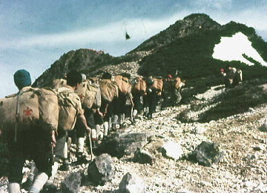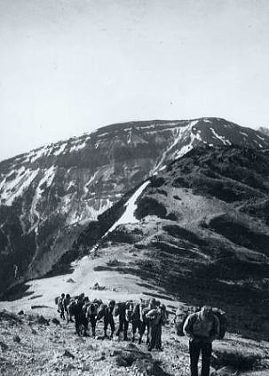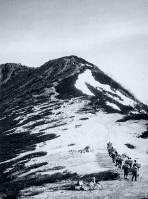 北八ヶ岳.新人養成合宿W s43年(1968年)05月16〜19日 上槻ノ木コース.L赤嶺成一郎(3).sL斎藤吉男(2).m飯田哲夫.松本雅夫(1).松村進(4). 新人養成合宿 昨年度同様北八ヶ岳において.男子2コース.4パーティ,女子は1コース,2パーティによって行われた。 北八ヶ岳は「森と湖の北八ッ」の名にように新緑の森.それに囲まれた鏡の様に静かな小さな湖を持ち, 新人部員には最初の山として強い印象を与えてくれる事だろう。 今年は予想通り昨年以上の雪があり.また体調の悪い者もあってペースはあまり良くなかった。 初日.男子パーティは予定を変更し全員がオーレン小屋に集合.2日目は統一行動となった。 また集中地「双子池」に全員が揃ったのは予定時間をかなり過ぎてからであった。 最終日,雨の中を男子は蓼科山を越えて.女子は大河原峠から.それぞれ親湯へと下った。 豊富な残雪.そして雨と合宿の目的を達成する為の新人養成としては申し分ないものだった。 だが予想以上に時間を費やしてしまった事など.計画の甘さを反省する点もあった。 更に新人から脱落者が出るなど.決して満足できる合宿ではなかった。 赤嶺成一郎 私が新人養成合宿を北八ヶ岳に選んでから早くも2年の月日が流れた。 その間,後輩もこの山域を選び.今日に至っている。山域変更の切っ掛けは森林開発にあった。 しかし,それは別として穏やかな起伏に包まれた森林は湖を生み.北八の森はその情緒を注られる。 参加者 鈴木輝雄(経4).松村進.和田一男.大川崇夫(法4).松本弘美(文4). 工藤具明(法3).赤嶺成一郎.高橋雅之.水頭芳三.三田誠一.高畑邦雄(経3).関美枝子.池田千鶴子(文3). 西沢隆雄(文2).富田幸男.斎藤吉男(経2).中川保.新崎啓一.関根利章(法2).桧垣いく子(社2). 沼津久美子.古田和佳子.平田恵子.豊永真琴(文2). 鈴木茂.日比谷.松本雅夫.太田.佐藤.久米(経1).飯田哲夫(法1).中沢康(社1).中西久美子(理1). 遠藤美子.杉山.島田良子.松永育子(文1). 天狗岳一中山一丸山一茶臼岳一縞枯山一横岳一蓼科山 5月16日.新宿23:45= 新人風景 相変わらずこの合宿は列車待ちが長い。私は遅くその中に飛び込んだ。 仲間が占領しているホームはかなりのペースで荷が散らばっている。 新人初めての養成山行で例年どうり.ホームで最後の点検を行っている。 団体.個人装備を広げ.再び上級生の指図によって.パッキングを行っている。 まだ新しい衣類の横に.黒ずんだ煤だらけの凹んだナベがありヤカンがあった。 隣の一年生は一生懸命タッシュを開け閉めしていた。 漸く終わったと思うも忘れ物が現れ.又詰めたばかりの荷を全部を出し丁寧に入れ直している。 この風景は毎年の事であるが.心の準備には一番良いようだ。 |
