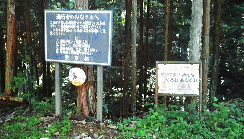 | 檜原街道を横断し旧醍醐峠を越え醍醐林道の「石しるべ」から醍醐林道.そして陣馬街道.関場へ ニニク沢の源流下降の旧醍醐峠道を下り.ニニク沢林道から醍醐林道にでて.醍醐道から北浅川醍醐川と案下川の二俣.関場にでる。 瀬戸川から払沢ノ滝にでて.払沢ノ峰北東尾根を詰める 淺間尾根.出野沢左岸尾根から檜原街道にでて柏木野バス停 小坂志林道から市道山の嫁取坂を詰め旧醍醐峠越えのニニク沢 ニニク沢からニニク沢林道.醍醐林道.醍醐道から陣馬街道.関場・・後一歩が届かず ニニク沢林道 看板設置個所からでてきた.15:24上流側の分岐.現在のニニク沢への取付き. 15:23ニニク沢林道―15:42林道の合流点―15:52冥加沢出合―16:34陣馬街道.関場bs. 沢沿いの旧道は登る場合. 藪絡み強く.ニニク林道の上部へとここで逃げている。 下りだした林道には「保健保安林と山火事注意」の看板があり.林道の起点から1kmほどの所にあった。 林道の終点は520m圏で.踏み跡は間もなく消滅し.沢沿いに藪に求めることになる。 旧醍醐峠からは伐採された木が覆い道形が怪しくなるが境界見出し標に導かれジグザグに下り.尾根に挟まれた凹地は左側を下ったが右寄りの方がよい。 沢底を伝いに赤テープと見出し標が続く。ニニク沢を渡ってからは道形もはっきりしていた。そのままの沢沿いの下りは難渋するのみだろう。 林道を下ればニニク沢線林道の起点で醍醐線と合わせ.合流点の境には醍醐川沿いに立つ天保11年(1840年)の道しるべ石標が立っている。 前回は集落からここまで探索し.戻り冥加沢右岸尾根から通り尾根にでている。 暫くは下草の絨毯に覆われた林道を歩んでいる。下山してからは木洩れ日の心地よい林道歩きだった。 ここは以前.吊尾根から春雪を踏みながらウルシガヤノ頭に立ち.ニニク沢を見下ろしていた沢底。醍醐峠越えに憧れを持ち出した頃だった。 下草茂る広場に確りした路肩の石積み.15:26 林道が山陰に入り.15:32赤テープは林道に入ってから山側の側壁に落ちる流水の点検ケ所。時には2〜3m置きに連なり.集計した後に護岸工事が行われるのだろう。 ここが最後の赤テープ.この下流側にはなかった。歩んできた道中に以外と数は多い。特に湧き出る岩盤付近では塊り団子のよう付けられていた。 起点から500mほど・・旧入渓口.15:40簡易舗装に入ると細かく路面が割れている。橋にでて右後方を振り返ると水道の貯水堰堤があり.ここから完全なガードレールが備われ舗装されていた。 地形図に記されている林道との分かれた破線路で.ニニク沢左岸沿いに綴られていたが踏み跡は怪しくなっている。 又取付き脇に前回あった古い「カニほりバーベキュー・地元町会」の看板は取り外されていた。 1974〜79年の地理院地図(1974〜79年)を読むとニニク沢沿いの旧道は410m付近の堰堤(直ぐ上で右岸に枝沢が合わさる)が設けられている所まで. 細く青い2線の旧道が記されている。それに対して下って来た林道は.410m付近で沢に下りる破線路を分け.左岸の520m付近が終点で記されていた。 暫くして右脇に古い林道の標識を見ている。「1.道幅狭い(幅員2.8)2.急カーブ(急勾配の連続)3.路面未舗装,落石,崩土が多い 単車線で交換場所が少ない.東京都」とある。今は道幅6mで全てが倍以上に広く造られていた。「たき火.たばこに注意」の看板は懐かしい。 15:42右下の林道醍醐線との合流点・・先に見える林道分岐の中央に定められているのが旧道しるべ石。天保11年の道しるべが刻まれている 醍醐峠越え 林道醍醐線とニニク沢線との分岐にあるゲート561m点に,ぽつんと天保11年(1840年)の道しるべ石が道中央にある。 そのまま残された形で林道は改修されていた。「(右)臼木山ひのはら,(左)さの川.天保十一年.野島氏建立」と刻字されていた。 ここから旧醍醐峠越えをし.嫁取坂を経て檜原へ下る道しるべ。この逆コースを登り越えてきた。 又左手は和田から佐野川へ.古道の山しるべが印されている。・・前回訪れた改修中の林道と分岐の道しるべ ニニク沢林道の起点ゲート.右手に合わさるのが醍醐林道・・2年足らずの間にこの区間は綺麗に改修されていた。 2016年12月には大型シャベルカーが陣取り.あっちこっちの片隅には,土砂が山積みにされていた。当然ゲートもなければ路肩も整備されていず。 その時は関場から醍醐道をここまで歩み.猟場はここと待機する猪狩りの猟師達に出会っている。 沢沿いから旧峠を登ることを勧められたが.戻り冥加沢右岸尾根を詰め「峰見通り」に乗っている。初冬の明るい尾根道だった。 醍醐道と繋がる林道醍醐線の起点.15:46改修された林道 初めて醍醐の集落を訪れたのが2年半前. この周辺の林道では改修・拡張工事が行われていた。 今回訪れた所は驚くほど立派に改修され.ニニク沢林道はこれからも工事が続くのだろう。最近は部分的改修というより.全体的な改善が多く. とんでもない所までダートに変わり舗装がされていた。災害時の被害を極小にし.又造林小屋の存在も便の良さで失われつつある。 以前