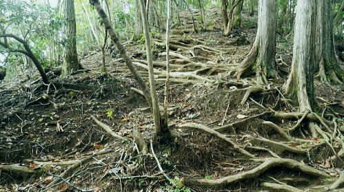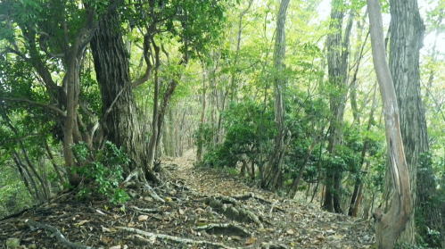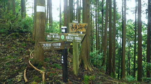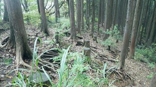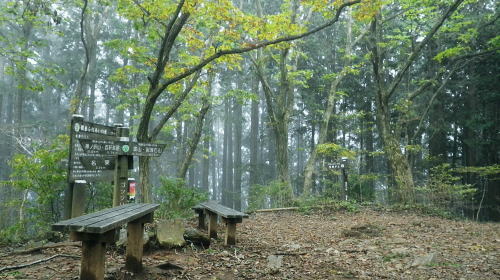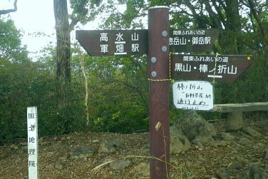 | 長沢脊稜の棒ノ嶺・黒山へと綴り.都県界尾根を分け.黒山から常盤尾根へ・・奥武蔵・都県界尾根Top 物静かな槙ノ尾山から棒ノ嶺―今回も黄砂で霞む黒山から常盤尾根を南下し.逆川ノ丸.輿越山.名坂峠と下り返し.岩茸石山に立つ。 ・・今年に入り2度.7月に成木尾根を越え間野黒指へ下りている。 清東橋bsから槙ノ尾沢左俣右岸尾根を詰め槙ノ尾山 棒ノ嶺にでて黒山から常磐尾根に乗り岩茸石山・・点々とした細かいコブ群と名坂峠 逆川ノ丸から小さな馬仏山を越え沼沢尾根下る 長沢脊稜(都県界尾根) 一瞬の切れ目.棒ノ嶺への登山道.10:09槙ノ尾沢中間尾根は槙ノ尾山を過ぎ2.3分下った所に取付きがると思われる。 ただガス濃く見付けることはできなかった。登山道に出るも先は足元のみを見詰めている。 山道右脇の立木.10:10槙ノ尾沢中間尾根の取付きを過ぎて直ぐ.立木に「△山 山ノ神」と記したテープを見る。「△山」が不思議に思えると同時. 「山ノ神」とは? 祠や社があるのではと周りを探すも見当たらず。何かを意味するのは確かだろうが。 幻想的な頂稜.10:13 棒ノ折山直ぐ手前の林班界標識.10:24標識板の裏側が笹尾沢右岸尾根の取付きで.右下に長く尾根を延ばしていた。 緑深い茂みが棒ノ嶺の入口.10:32棒ノ嶺を真近に迎えて自然林に入ると急に樹葉に被われた灌木林に入る。真近に迫る灌木が緑濃く臨まれた。 小道らしくなると左手に小さな倒木を越える踏み跡を見付けている。このルートは台風後の状況が分からず. 最初に下山を予定をしていた棒ノ折山北東尾根。 ただ下るのは余りにも距離が短く時間的に諦めている。地形的には北尾根を分けての.以前登った白谷沢の左岸尾根。 末端は名栗湖の尖っ突きに下りて.石段で左に林道を進めば有間の湧水にでる。右に折れれば白谷沢出合から有間ダムサイドへ。 ここ北尾根の分岐から20mほど進むと開かれた平頂の広い棒ノ嶺にでる。 秩父・畠山の地を治めていた源頼朝公の重臣であった畠山重忠公はある時鎌倉街道を避け.名栗から尾根伝いに道を取っている。 その折折れた石棒の半分を秩父側名栗の有間の谷へ投げたことから棒の折といい.山頂を棒の嶺というようになる。 又その時登った尾根が北東尾根とも云われ.奥茶屋の奥の権次入沢出合から棒の嶺を目指して登った山腹には. 大丹波の谷に投げられた石棒があり.今も小さな祠に大切に祀られているとある。・・奥多摩民話の会:編著より. 棒ノ嶺(棒ノ折山) 山頂は広い草原のような台地.10:38〜:52広々とし硬く固められた台地の頂以外.今日は何にも眺められぬ頂に立つ。道標は各方面に腕木を出していた。 ここでは「注意書」は見当たらなかった。今日は誰も登らぬ頂になっている。そこに男女2人の単独行者と出会う。 私がハイカーと出会うのも珍しく.ここは普段.メーンの頂・ルートになっている。 9年ほど前に春雪残る白谷沢から棒ノ嶺を経て岩茸石山から惣岳山神塚尾根を下りている。その折は大勢のグループと出会っていた。 広いうえ閑散とした風景. 樹林が切り開かれ.明るく開放的な頂の展望は0。又下山するまでの道中.道標は全て「棒ノ折山」と記されていた。 棒ノ嶺を越えれば「関東ふれあいの道」に入る.10:55権次入峠・ゴンジリ峠 樹林の切り開かれた小平地.11:02ベンチのある小広い権次入峠(ごんじり). 左に折れ下れば岩茸石にでて.「関東ふれあいの道」白谷沢コースと滝ノ平尾根からの 河又コースに分かれる。滝ノ平尾根は上部からは大名栗林道を縫うよう登山道が綴られ.下る先は「さわらびの湯」にでる。 私は境界尾根を直進し黒山へ。馬仏山までは「関東ふれあいの道」を歩む。 霧は治まりつつあるるも黄砂でおぼろ.11:14黒山(トキワ山・コカハヅバ山) ,高度計855m.11:21〜12:00山頂842.3mは都県界尾根の分岐.境界尾根は小沢峠へ。常磐尾根への名坂峠方面は高水三山へでる。 3ケ月振りに再び訪れることになった黒山. 当時は左手の成木尾根に廻っている。明け方の降雨で.やはり真夏の濃霧に覆われていた。 樹林が生い茂り展望が望められなかったが.それ以上に2.3本先の立木が霞むガスの濃さ。 今回は境界尾根を分け常盤尾根に入ると霞みは取れだしている。ただ珍しい秋の黄砂が6年振りに飛来し.見通しを悪くしていた。 ここで食事を終えると棒ノ嶺でお会いした彼と再び出会っている。棒ノ嶺では2人の単独行者と出会っていた。 彼は黒山北東尾根から入山し仙岳尾根を下るようだ。池ノ平尾根から白谷沢を下る積りだったが地元の人に倍かかると聞かさせ怯えていた。 彼女が相談に乗っている。よく聞き.決まったら地図を写真に撮らしてもらい。自信を持つまで質問するよう伝え別れていた。 その彼は更に境界尾根を綴り支尾根の柳沢右岸尾根を下るらしい。取付き地点の確認と林道へ降り口に注意するよう念を押している。 私に取っては時間を費やしても調べてきた白谷沢コースか.棒ノ嶺北尾根の方が良いと思うも.怖がっていれば省がない。車は「さわらびの湯」に 停めたという。不