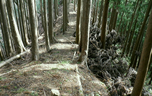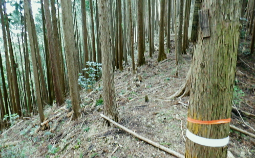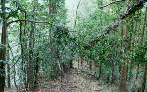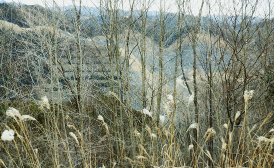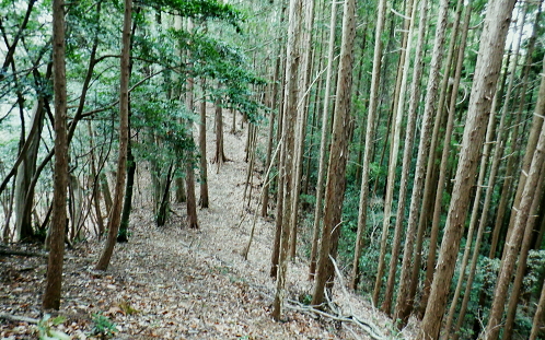 | ノボリオイゾネ・・青梅市北にある北小曽木川左岸の尾根 ・・青梅丘陵の旧吹上隧道TOP 高水山東尾根・・夕倉山から更に東進し.低山の寂峰と幾つもの峠路を持つ.319m点コブを越える 更に北東尾根を下り成木(五)・慈福寺に下りている。下山のアプローチは成木川と左俣の北小曽川の二俣から成木街道で尾根末端に出て. 成木(八)から旧吹上峠を越える。並木川と柳沢が突き上げていた。街道が通る新吹上トンネルの上部の旧々峠路下の旧吹上隧道から柳川に至るまで。 高水山南.東尾根から高水山東尾根と永栗ノ峰 600m圏コブの東尾根と松ノ木ノ頭.更にノボリオイゾネを越え 夕倉山から319m点コブ北東尾根・・成木街道と旧吹上隧道.旧吹上峠 ノボリオイゾネを擁する尾根 夕倉山から枝打ち残る尾根を南東に下る.12:56 間を開けず整い過ぎる作業道へ.12:57小コブを越えると右手の樹間絡みに電電山北面の石灰石採堀場が望まれた。 意外に多いのが枝尾根を含めた作業道。短い間隔でその都度.枝尾根を分けては出合うことになる。 360m(370m)圏コブと尾根の二又.13:12平頂のコブとは思えぬ頂に立つ。右に直進すれば立木に透明テープが点々と付けられていた。 ここは判りずらくストックの左先を選んでいる。注意を要する地点で.下って北東側の尾根を回り込む。赤テープあり. 稲詰峠 木片の「稲詰峠333m」.13:28緩やかな勾配上下する尾根道. 370m圏コブを越え.2つ目の360m圏コブを大きく巻き込むと杉林に囲まれた薄暗い稲詰峠にでる。 確りした山道が滝成へと北側の沢沿いに降りている。峠らしかぬ峠と云えそうな低い窪地の峠。確りした踏み跡がなければ分からなかったかも。 立木の背丈ほどに小さな木片が掛かり.「稲詰峠」とある。又南側へ下ると北小曾木川沿いの岩井に降りられるらしい。 成木尾根356m点コブ? 372m点コフの登りで左後方を振り返る.13:34伐採地にでる。左手下に見下ろす成木川沿いの滝成集落や採石場。稀に見られた展望。 小コブを越え.13:34 13:48紫のテープから立木に古い白ペンキが付き.下るとが黄色いテープは短い間隔で現れる。 標高点372m(362m)圏の小コブに立ち.T字路は右に折れている。 旧鉄塔跡地 372m点コブ手前のススキの原.13:54 ![]() 今日一番の広いススキの旧青梅線の鉄塔基部跡地にでる。急に現れた原っぱ。 国土地理院のWebと登山詳細図「奥多摩東編」には共に旧青梅線の送電線が地図に記されていた。旧青梅線・・廃線 現実的には47号鉄塔だけでなく土台も撤去され,巡視路標柱も取り外されていた。北側に並行する都県界尾根と同様の 処理がなされていた。原っぱを探った痕跡として写真の「パネルの破片」と東電の石標がススキの隅に見付けている。 都県界尾根南面の石灰石採堀場 47号鉄塔基部跡より北側の風景都県界尾根354mコブと345mコブ. 重なる奥側が349m点の独標. 正面の採石場には成木川支流の滝ノ入と下流隣りの板井沢が流れていた筈が分水嶺がハッパでぶち壊され.完全に採石場に 呑み込まれている。ここは又成木街道の滝成の下流側で.板井沢出合に久道バス停があり.崖上からの山道を分けている。 新所沢変電所に至る新青梅線は採石場の左端に架かり.都県界尾根に渡り.分岐付近を越えている。その西側にあったのが 多中線に変わった旧青梅線で.ここも鉄塔は撤去されていた。新たに建つ49号鉄塔(新青梅線)のプレートに「昭和35年3月」とある。 旧50号鉄塔の中央右奥が恐らく349m点の独標だろう。その左脇から旧巡視路を下れば今は廃道だが間野黒指にでられる。 昨年の夏.このルートを下山路に選び入山したが.見付けた新たな作業道に誘惑され.違ったルートを選んでいた。 境界尾根が途切れ壁になる尾根伝いの縦走は難しく.独標の北東尾根を下り正木入を登り返し.再び境界線に乗っている。 青梅丘陵北面の石灰石採堀場 右景・・青梅丘陵の上流側南面反対側の西南面の北小曾木川右岸沿いの採石場。採石場の左(東)側の両写真の間に明神神社と赤仁田バス停がある。 青梅丘陵北面の鷹ノ巣山と三方山 左景・・青梅丘陵の下流側 原っぱから東側の植林に入る出口穴.14:00 赤帽黒杭334m(333m)の分岐.14:08372m点コブから北東に延びる尾根は偵察を忘れたが東隣りの小コブから緩やかに北東に延びる尾根がルート。 薄いが踏み跡があり.末端の対岸に成木街道のバス停.旧道がある。 又原っぱを抜けても黄色いテープは続き,直ぐ赤帽黒杭があり.南側と東側に分れる尾根の分岐にでている。 右,南側の支尾根は北小曽木川沿いに下るとはっきりした山道に。赤河原に降りる46号鉄塔に至る旧鉄塔巡視路のようだった。 左前方にノボリオイソヅネ下端の巨大な石灰石採堀場が初めて垣間見みて.それで間違いを知り.分岐まで戻っている。 改めて赤帽黒杭から正面の東方.主尾根へ進む。 林相の境の歩き易い細い東尾根を下る.14:15北東の支尾根 下る尾根沿い.14:23判りずらいノボリオイヅネ319m点付近. 又藪絡みの採堀場が見下ろせる場所を探すも.ポイントが分からず諦めている。 尾根の左端まで戻り.下山路は