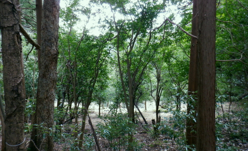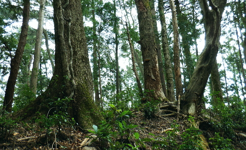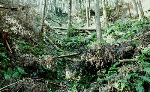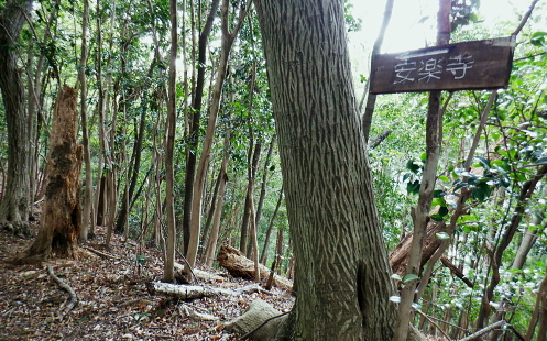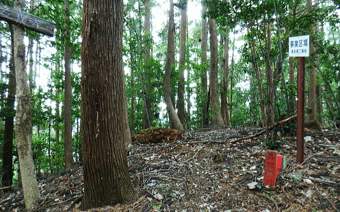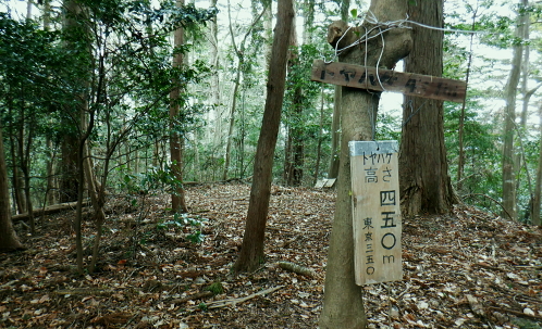 | 成木尾根から都県境尾根へ繋がる作業道を綴る・・高水山と成木の山々Top 集落を含み探索の後.再び成木尾根に入り.水のもと・梅のもと・トヤハケ―旧鉄塔跡からは成木尾根と重なる都県境尾根の独標へ 昼食後.成木尾根を下り正木入二俣へ至り.改めて左俣を詰める。 間野.細田と大仁田山から成木尾根.水口峠 成木尾根.水口峠から下山して正木入・・旧青梅線の鉄塔跡地で昼食 正木入二俣から再び都県境尾根に乗ってからは末端の案楽寺 水のもと・水口峠 水口峠.10:42過ってここには石祠が二基あったとか.直竹と成木にそれぞれ遷されたという。 ![]() これからも幾度となく現れる「安楽寺」の道標.10:52目指す都県境成木尾根の末端の合言葉は道標の示す「安楽寺」へ 偽黄楊峠.10:572つ目のコブで道標に従い左に折れると「ハイキングコース№5」の看板が立つ480m圏コブにでる。右にクリアファイルには「黄楊峠」とあるが偽りの峠だろう? 黄色い紐が点々と付けられ右下に降りている。ここを綴れば採石場の縁を通り.成木街道沿いの梅ヶ平でられる。 赤標石の分岐.左手は「梅のもと」へ.11:02尾根筋には点々と奥多摩工業の「事業区分」の看板が見られるようなった。又以外に多いのが飯能市のコンクリート柱の倒れ。 「森林公社」とある赤い標石の枝尾根分岐にでる。右の細尾根へ入り込むと前方一杯に奥多摩工業の採石場が切れ.開かれ途切れていた。 ノボリオイゾネ 足元のは奥多摩工業の採石場上旬に訪れた高水山南尾根から東尾根への道中コース. 梅ケ平沢と所久保沢に挟まれた石灰採石場. 中央の南方に延びる尾根の途切れた絶壁になり.採石場の真上にでる。 真下が成木街道の栂ケ平辺りで.隔てる採石場の背は2週間前に横切ったノボリオイゾネ。夕倉山と右に落ちて茗荷峠。 遠望は青梅丘陵を綴る辛垣山・電電山だろう。 突き当る採石場への尾根の左側は竹藪短いながら採石場の展望台に至る痩せ尾根の左側に落ちる斜面は竹藪混ざりの急斜面。 左側の竹藪を少し下ると踏み跡は途切れている。昔は「峯」と呼ばれていたのだろうか。集落跡らしき痕跡が左前方下に広く見下ろされた。 何処かに昔の峠路があるのだろうか? 栂のもと黄楊峠.ツゲ峠 「栂(つが)のもと」のツガが誤読されて「つげのきとうげ」となったようだ。 11:19尾根伝いでなく竹林の径路から峠の西側に延びる南尾根の東山腹道を北側に回り込むと黄楊峠401.6mにでられた。 鞍部には「黄楊峠」と書かれた木片があり.杉の巨樹の根元に青いトタン茸きの木祠に馬頭観世音が大木の根元に祀られている。 私は巻道に入り気が付かなかったが手前に栂の木があるとのこと。その木が最初は峠名になったのだろうか? 峠らしき懐かしさを感じさせる峠。ただ今は侘しさだけがにじみみでる峠だった。 大木の根元にある石碑は崩れた馬頭観音右下に倒れた石柱の峠名板には「都道→」とある 旧峯?の南方を向く木祠木祠の向かい側に集落があったのだろうか? 大らかに広がる台地の先には入江のような地形の所に久保沢源流の平坦な谷間がある。 先程見下ろした採石場の左脇の竹藪を少し下ると想像のできぬほどの平坦地が広がりを見せていた。家屋らしきものも見下ろされていた。 この峠からは何処を歩んでも南側へ谷筋を下れば旧峯に降りられる。旧峯からは成木六丁目の梅ヶ平バス停に続く道が綴られている筈。 何処かに峠路があるのだろう。 トヤハケ,大峰 簡素で自然そのままのこんもりした頂.11:31山としての顕著さはないが大らかな起伏の頂にでる。「トヤハケ」とは地形名からの古い言葉か? 鳥屋と崖. 確実に「安楽寺」へ.11:33 11:37この立派な原生林の南側に林道と云ってもよいほど整地されたような確りした山道が築かれている。 ただ驚くばかりで反って考え過ぎ.方向感覚を失い勝ちになった。 成木尾根と都県界尾根の分岐 「堂所」370m圏で,道標に「間野」の字が現れる.11:49緩やかに登ると440m圏コブに至る道標に従い右折して広々とした尾根にでた。 ここが「堂所」として所久保観音堂の旧地と伝承されている所。所久保と云えば広い窪地のような平坦な台地を先ほど見下ろしている。 道標に付け加えられた言葉から右が成木尾根方面になり.左は「間野」と都県界尾根に変わっている。 直ぐ先に合った都県側の道標.11:49直ぐ傍に.再び420m圏分岐の堂所にでる。ここが成木尾根と都県界尾根の分水嶺で都県境は左に直進する。 直進の境界尾根は確りした山道に変わっている。ほんの手前の右手.南東に延びる尾根が成木尾根。先は採石場の抉れた尾根上部にでる。 その先は立入り禁止になっていた。休業で抜けられれば西側の330m圏コブの三方分岐のコブにでるが。又後に迂回路があることを知るも不自然な所になる。 都県界尾根南面の石灰石採堀場 対岸の北小曽木川左岸尾根より・・2020.02.04/14:00左上の台地で成木尾根と県界尾根を分けている 都県界尾根354mコブと345mコブ. 重なる奥側が349m点の独標. この真裏が境界尾根が途切れ壁になる尾根伝いの
