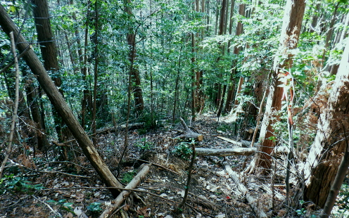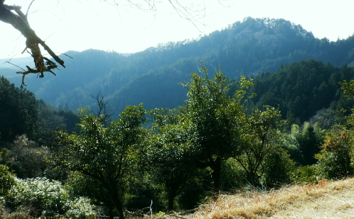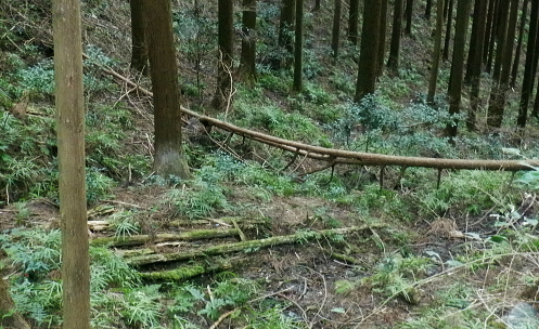 | 再び黒指に入る。細田内と共に探索し間野大仁田山から都県界尾根に下る ・・大仁田山Top 奥武蔵西部.都県界尾根Top 細田の頂点.大仁田山から成木尾根.都県界尾根と綴り.尾根末端からは複雑な境界地区を示す青梅.飯能の境界地区へ 愛宕山.大仁田山から成木尾根と都県界尾根・・切れる境界尾根は正木入側を回り込み.飯能市側の下畑へと繋ぐ 2020年02月21日.松村 間野.細田の集落と愛宕山.大仁田山と成木尾根.水口峠・・上直竹上分.前回記載した成木川を隔てれ高水山東尾根との地形概念 成木尾根.水口峠から下山し正木入 正木入二俣から再び都県境尾根に乗ってからは安楽寺 昨年7月には黒指集落へ下山することを第一の目的とし.黒山南西尾根から都県界尾根を下り.成木尾根に乗り大仁田山をピストンしている。 再び成木尾根に乗り黒指を目指した。それが当日.新所沢線43号鉄塔先の堂平沢左岸尾根に.地形的な好奇心を持ち.コースを変更する。 ただ間野黒指に降りたものの356m独標まで届かず.中途半端な山行になってしまっている。 前回は成木の里をかじり高水山東尾根を縦走したことで.今回は成木から都県界尾根を綴り.尾根末端の安楽寺から上畑にでることにした。 その頂点に選んだのが間野黒指からの右う仁田山。「間野黒指」の地名に魅了され.アプローチは東青梅より.飯能を選んでいる。 今回は間野.細田の集落を探索してから成木尾根を歩むべき.再び黒指から入山する。 上直竹上分の北東側縁に回り込み.黒指.細田と集落を探索してから愛宕山からは大仁田山へと右回りで入山して.南東へと成木尾根に乗る。 途中の採石場で遮断された成木尾根は東方へ延びる都県境尾根に移り.複雑に絡む尾根を正木入側に迂回して.再び境界尾根に乗り換えた。 「都県界成木尾根ハイキングコース」は尾根末端まで.複雑な絡みを見せる処もあり.驚かされている。 そして直竹川にでて今回の山旅を終えている。ルートはHP「晴れのち山・・」氏の記録を参考にさせて頂きました。ありがとうございます。 飯能市南の集落と里山 間野黒指バス停と飯能に戻る路線バス.7:422月21日(金).快晴後曇 日本付近は高気圧に覆われ.次第に気圧の谷が接近し関東地方は曇りがちになる。 ただ上直竹上分では快晴。気温は思いのほか高く2℃〜13℃. jr御徒町5:31=5:50西武池袋E.¥471. 6:04=7:00飯能7:06=7:44間野黒指bs.236.7m ・・日の出6:24ひばり丘駅付近. 西武飯能駅前のバス停で見る限り.この時間帯は間野黒指行以外の路線バスでもハイカーは私独りのようだった。 運転手に「終点まで行きます。」と告げ乗車した。恰幅のよい運転手は笑い顔. 終点の黒指の折り返しでは小学生の男の子.一人と私が乗り換えしていた。スクールバスに変わる。何時ものことだろう。 互いに慣れた仕草さで無言で乗車していた。私は「お早う!」と声を掛ける。 光全寺 正面の道標に導かれ石神大明神へ.7:51バス通りに導かれ.集落の坂道を登りだすと前方に新所沢線46号鉄塔が見上げられた。昨年洗顔をお願いした老夫婦の住む木崎邸を過ぎ.光全寺へ。 左奥が林道の二又.右奥は愛宕山の高みに至る内台林道が入り.大きく愛宕山の山腹を回り込んでいる。手前で右方へ回り込むのはその支線。 左手の細田林道は44号鉄塔を経て堂平に回れば林道の終点にでる。途中で水のもとへの取付と細田歩道を分けている。 昨年は堂平沢左岸尾根を下り.林道下流側をUターンする地点から降りていた。今回は最初の道標に導かれ.右上を登り黒指の集落に入っている。 黒指の山上集落.7:56里道を登り始めると直ぐ脇を抜ける民家から飼い犬が吠え出した。煩く吠え続ける犬.私の姿が見えなくなる山上にでるまで吠え続いていた。 朝方の余りにも静か過ぎる角地からは集落を抜ける坂道は路地道で曲がりくねるも見下ろされる場所。犬の吠える煩さだけが響き渡り. 気に掛かるも如何にすることもできず周りの方に我慢してもらうしかなかった。その上で替わった犬は大人しく直ぐ治まり助かっている。 以外に立派な蔵を持つ家屋が並び.昔栄えていた集落の姿が伺える。右上に見上げらる草原状の台地に乗ると集落は途切て畑になった,。 石神大明神を経て愛宕山に立つ。朝の柔らかい陽光は暖かい。集落を見下ろされ.成木尾根に建つ43号鉄塔も大きく眺められていた。 あの鉄塔まで細田愛宕山・大仁田山を越をしながら黒指・細田の集落を探索し.その後成木尾根に乗ってから鉄塔基部に立っている。 成木尾根 右景・・石神大明神端の分岐より背に視界が開かれる。登ってきた黒指の山上集落を見下ろされ.見上げると細田川流域の成木の山々に取り囲まれるよう眺められている。 右端から左端へと綴って行く。右端から2つ目の山が成木尾根と裏側の大峰山. 山腹に架かる2本の線が送電線新所沢線。 その左下には44号鉄塔が建ち.更に横切るのが独峰。左鞍部に43号鉄塔が建ち.上成木に降りている。 1つ先の鞍部が水もとになり.先はトヤハケへ。これから綴る山々を覗き見る。 349m独峰とトヤハケ 左景