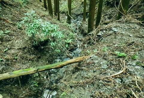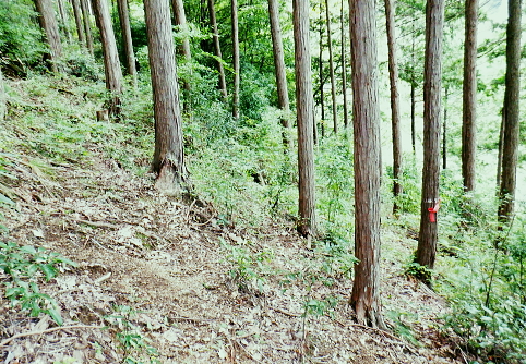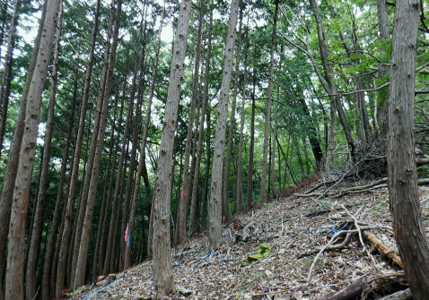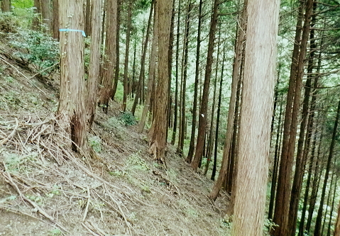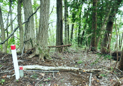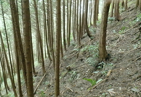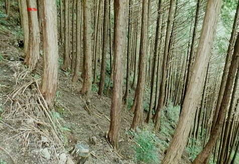 | イタドリ沢ノ頭から前回諦めた竹ノ沢右岸のヤラシ西尾根に回り込み大日野原へ下り返す・・イタドリ沢ノ頭Top イタドリ沢ノ頭周辺の変貌ぶりに驚かされる。北面は竹ノ沢への下降地点まで広範囲は作業用と合わせ.手入れ.よいハイキングコースに変貌された。 今回のメーンコースは「やらし」西尾根から竹ノ沢の山腹道を回り込み.下端の小キレットから沢井川.中里へ。大日野原.小渕丘陵へは登り返す。 小原の孫山東尾根から吉野矢ノ音越え イタドリ沢ノ頭竹ノ沢右岸のヤラシ西尾根・・伐採から植林と壊れる自然と見栄えの良い登山道 中里.大日野原と小渕丘陵 今年の虎枝沢ノ頭(イタドリ沢ノ頭) 立派な山名柱に整地された台地.吉野山.11:16〜12:00イタドリ沢ノ頭は二等三角点標石506m.基準点は「吉野駅」. 頂の向い西方は左に回り込む南尾根・・東方からの山頂512m→505m 昨年の虎枝沢ノ頭 昨年の正月山行・・2019.01.11/.13:15昨年は荒れた原の台地だった頂. 当時は主尾根の南側に広い巻道が斜めに交差した。北側端にある「保安林」の標柱脇から栃谷への下降路を分けている。 吉野沢方面へ下る小径が綴られ.道標には「栃谷谷→陣馬ノ湯」とあり.矢ノ音に登る手前分岐にあった同じ道標「虎枝沢ノ頭」は見付けている。 それも足元は下枝の藪絡みが多く.何処が頂だか分かりずらい平坦地の脇に植物の名か.漢字で記された山名標が立つ。 昨年正月の虎枝沢ノ頭 中里の大日野原の登りからの眺め・・2019.01.11/13:55西側の中里の高みから見上げたイタドリ沢ノ頭 中里の集落から西側にイタドリ沢ノ頭を見上げる。 「翌年10月には小原宿から大久保沢左岸尾根を詰め.ハイキングコースとして変貌したイタドリ沢ノ頭に再び訪れている。 振り返ったイタドリ沢ノ頭からは竹ノ沢右岸尾根に回り込み.沢井川中里に降りて.大日野原の広大な高台の集落遺跡へと登り返す。」と日記にある。 イタドリ沢ノ頭の山頂 奥高尾の南面にひっそり聳えていたのが二等三角点峰505.88m. 点名「吉野駅」. イタドリ沢ノ頭(いとどりさわのかしら)或い虎枝沢ノ頭だった。 虎杖(イタドリ)はタデ科の多年生植物。雌雄別株で晩夏に白い花が咲く。春の若芽は食用山菜。 前回訪れてから1年10ケ月と驚くほど短い期間に藪山は開放され.丸っきり違った姿の風景に変貌され変る山頂。 整地され.人工の手が至る所に見られ.変えられていた。過っては疎らな雑木林を背負っていた頂だった。 ここまで変わってしまうとは。大地まで整備され.ハイキングコースの名らしく納まっているとも云えるが山でなく公園? 三角点標石と国土地理院の標柱以外は何もなかった台地は.冬でも下草らしき残り枯枝が乗っていた。 平坦地と云えど凸凹のコブだった。それは昨年の正月と短い間の話である。林業の方針は既に決まっていたのだろうが. 遽進んだ姿にはピクニックを含め.ここまで一変にする必要があったのどろうか? 自然保護の一環と考えているのなら尚更で.そう考えるのは私だけではあるまい。ボタンの掛け違いで済まさせる問題ではない。 出来るだけ手を付けず.頂にベンチを置くのとのは異なり.写真を見ているだけで.誰もが分かる筈。 三角点標石を挟み道標の反対側にベンチがあり.その右脇の茂みが竹ノ沢右岸尾根の取付き地点。 余りにも手が入り変貌してしまった頂を見渡しながら.脇のベンチで一人.昼食を摂ることにした。 妻の手弁当を食べながら.2年も経だずしてここまで変わるものかと。感心してよいのか.残念なのか? 人の力とは大したものである。 竹ノ沢右岸尾根口 取付きの右手にも「赤帽白柱111」が並ぶ.12:00〜12:00前回の南尾根コースを少し探ってから頂少し手前の北側に延びる竹ノ沢の源流を左回り込む尾根にり付いた。 ワクワクしながらも何かが変な頂だった。間を開けてもう一度訪れることがあれば更なる変貌に驚くのだろうか? 少し下り尾根の取付きを見上げる.12:04460m圏の南西尾根 左に寄り過ぎて南西尾根を見る.12:13このリボン類は作業用. ハイカーが付けたテープ類は入山時から殆ど落とされていた。 「赤黒プラ杭119」と「96」とが並ぶ467mで左前方へ緩く下ると直ぐ460m圏から下って来た南西尾根を見下ろした。 急勾配で落ちる尾根。落ちる尾根の方向は定かではない。北西へ下りるには時間的には少し早過ぎる。 竹ノ沢右岸尾根 453m圏.12:16下の作業道に入り.右隣に眺める尾根が主尾根で戻っている 尾根分岐 450m圏・・西と北尾根とを分けている.12:21本尾根の両側に赤帽白柱2本が続けて並ぶ。この辺も大分手が入っていたが.新たにヤラシ400m圏コブ付近まで続いていた。 この下から左へ南西尾根に回り込む。 雑木から植林帯へ.12:23 鞍部付近・・林相の境.12:27破線路はウエーブ地形図ではヤラシ400m圏手前の鞍部辺りからヤラシ山の北側の山腹を回り込み.栃谷川出合付近の落合に降りている。 ヤラシ400m圏コブ 植林に囲まれたコブならぬコブ.12:29400m圏コブは藤野町発行の津久井の地図では「ヤラシ」と記されていた。 右上はヤラシ山北尾根.12:39