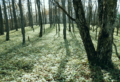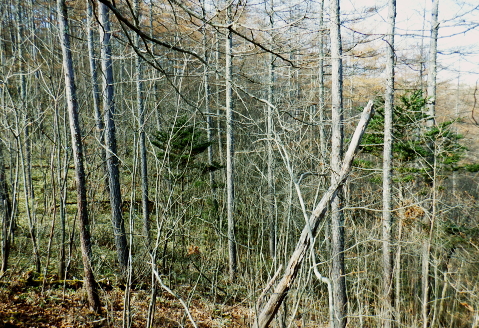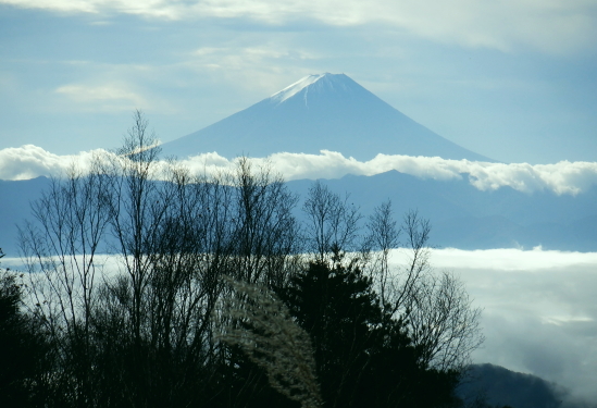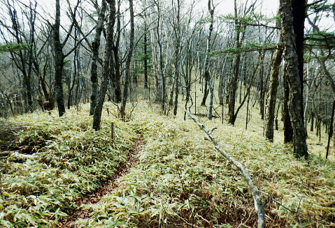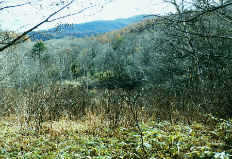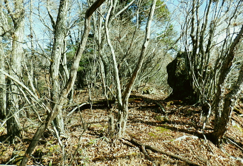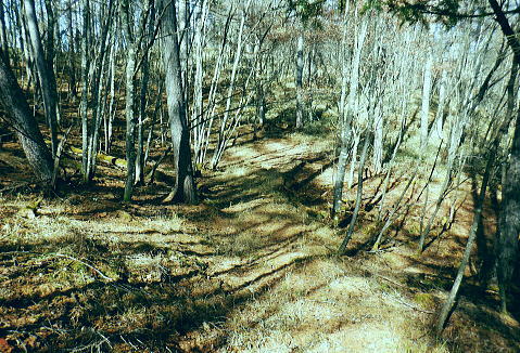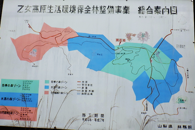 | 奥秩父山塊南端の高原台地と乙女高原へ 乙女高原を周回してから乙女高原自然観察路. 焼山林道に係る山域.1・・奥帯那山Top 奥秩父連峰Top 焼山峠.荒川林道から乙女高原を探索・・乙女峠の西端からヨモギノ頭にでて何度か登り直し.先が分からなくなった水ケ森林道を諦める。 乙女高原の西端まで探索する。ツツジコース.母母峠.乙女高原自然観察路から過っての林道の起点にでて.塩平とほうき窪へ下りる。 2020年11月08日.松村 ヨモギノ頭から乙女高原を大きく周回・・方向音痴 乙女高原自然観察路から焼山林道の旧ゲートを抜け塩平。先はほうき窪 先月は奥帯那山天神峠尾根を詰め.奥帯那山南面の帯那山林道周辺を探索して塚原へ下りている。 その延長戦として.今回は北側に延びる甲府市と牧丘町との境界尾根を綴る水ケ森林道を繋ぎ.乙女高原から帯那山・鍵懸峠まで通う積りでいた。 ただヨモギノ頭で飛んでもない方向音痴に陥った。地図を読むも頭に入らず.決断が付かず。結局.帯那山への縦走を諦め乙女高原を広く探索している。 焼山峠へとデマンドタクシーで塩山駅から塩平を経て西方へ目指してきた。その概念が頭から抜けず.更に西側に進むという発想を逆転させてた。 何故こうなったのだろうか? 下調べも疎かに地図だけを持参し電車に飛び込んでいる。焼山峠から南側に向う発想概念も薄かったようだ。 このような根本的な間違いは山に登り始め初めてのこと。老齢と云えぬ呆け方だった。ただ短い中.乙女高原の西端の探索は変化に富み面白かった。 焼山峠 既にマイカー3台が駐車.8:03北面を望み.左肩が焼山1612m. 西高東低の気圧配置に変わり.気圧の谷や湿った空気の影響で.晴れや曇りとなる。伊豆諸島では雷雨となる所がある見込み。 また長野県北部や関東地方北部では寒気の影響で雨や雪の降る所があり.風は強まる。関東地方と伊豆諸島の海上では7日は波がやや高く. 翌日は波が高い見込み。(前日のgoo予報)より.烈風は下山した夜半にズレ込み.東京は今季一番の寒気に。 11月08日.曇時々晴 jr御徒町.¥1980. 4:49=4:55東京:59=6:11高尾:14=7:22塩山・協和交通.デマンドタクシー.¥1030. :30 =8:20焼山峠.1619m. 夜半降雨があった上弦のおぼろ月. 豊田付近ではどんよりした重い層雲に覆われ.高尾駅では日の出を迎えている。 小仏トンネルを抜けると沿線は雨上がりの朝モヤが立ち込め.ホームにはまだ雨雫の塊りを残していた。 朝モヤは晴れると云われるも笹子を過ぎてもモヤは湧き上がり続け.郡内から塩山盆地に掛け広い範囲が包まれていた。 塩山が近づくとモヤは切れ.厚い層雲も割れるような切れ方で.その隙間から蒼空が覗いていた。 焼山峠 写真の左奥は荒川林道の起点ゲート. 看板の右奥が乙女湖北岸へと繋がる柳平に繋がるクリスタルライン(県道柳平塩山線). 手前は登ってきた林道は焼山林道(林道川上牧丘線)。塩平から牧平までは林道川上上牧線になり.牧平からは県道川上牧丘線と変わり. 窪平へと繋がれている。地図を読むと峠の東面の谷間側には2本の黒線を挟んで破線路が1本綴られていた。この破線が小樽山への登山道。 栄和交通の運転手の話では本来は県道柳平塩山線を経て柳平にでるところ.9人乗りバスの乗客は私一人が焼山峠止まり.残り7人は大弛峠とのこと。 それ故,川上牧丘線に変更し.直接焼山峠にでると聞く。河岸丘陵地形の広がる牧平から鼓川沿いに遡り.塩平の集落からは焼山林道で焼山峠にでるルート。 このルートは私にとって何十年振りだろう。学生時代.又家族とも昔何度か訪れていたルート. その安心感が雑な山行を導き出したのかも。 乙女高原と小樽山 焼山峠にあった総合案内図コースは変更している。左端のピンクゾーンを周回し.点線の洞運寺へ下りている。 乙女高原 数年前の春先に奥千丈岳石楠花新道からゴトメキを経て遠見山から鳥ノ尾根を下りている。その折乙女高原の核心部を 大鳥山から見下ろしていた。足元に乙女湖を隔て.その奥には草原台地が広がり.送電線が横切り.富嶽が眺められ絵葉書のようだった。 その時は地図で乙女高原と知り.初めて眺めた瞬間だった。壮大な草原台地が開かれている。 尾根後半を前に鳥ノ尾根の半ばで.目に沁み込む新緑を迎え,溢れるばかりの蒼青しい緑の高原大地をの広がりを眺めていた。 今回はその時の尾根歩きからの連想が山行を決めていた。乙女高原には何時か訪れたいと思っていたが交通の便は至極悪い。 くすぐられるような地名の台地を対岸から見下ろしていた。それが当時の感想だった。 荒川林道に入り直ぐ.右に大窪山・湿原への山道を分けている.8:16 簡易舗装とゲート.8:25地形図「川浦」の荒川林道とほぼ並行する破線路 小樽山と三角点峰1674.7m 乙女高原の散策路へ.破線路から分かれる.8:34 腕木はないが直進し.獣柵から乙女高原グリーンロッジへ.8:46行き止りの先は乙女高原の西方に入る散策路だろう 獣柵の間を抜けススキ越しの乙女高原グリーンロッジ(廃)へ1670m.8:57左脇の獣柵内が乙女高原の入口・保護地区に