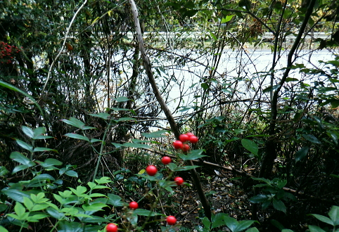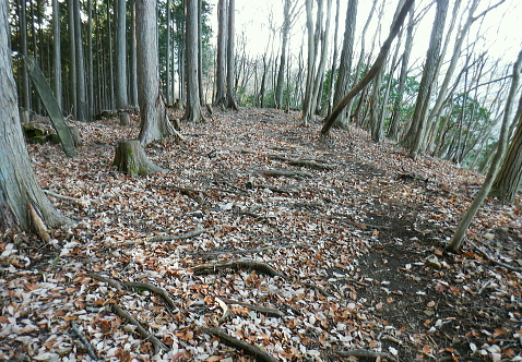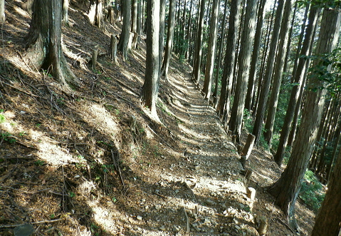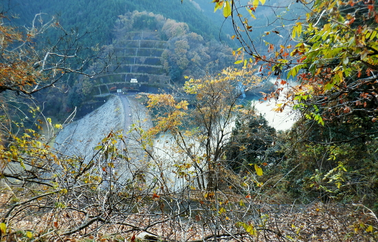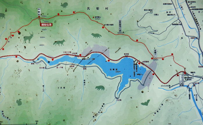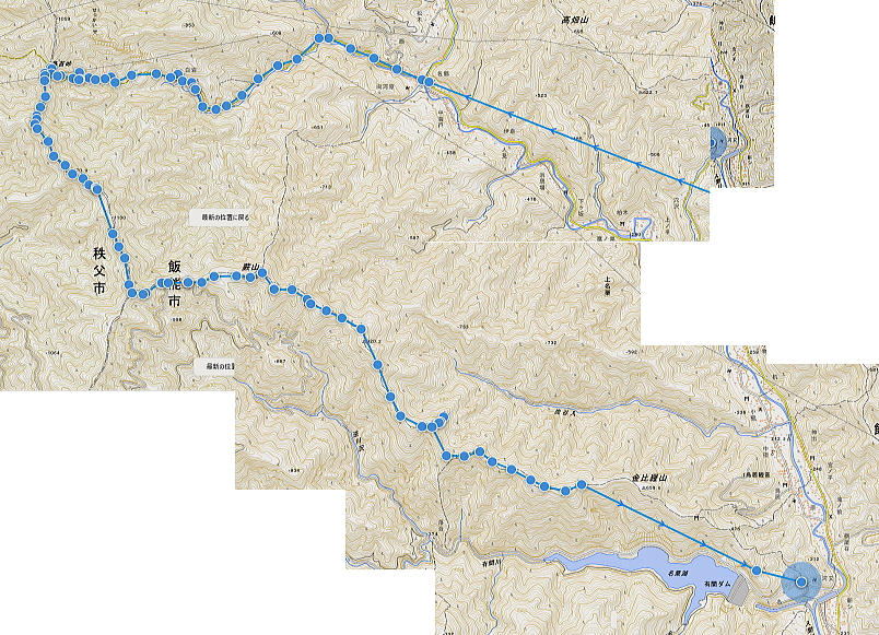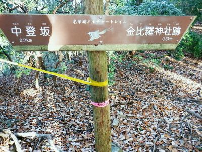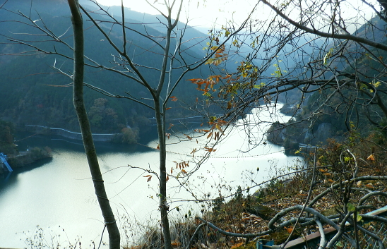 | 蕨山金毘羅尾根からダム下へ下る 中登坂から金毘羅神社・見晴らしから左岸尾根を下り.有間ダムの北詰を見下ろし広河原逆川林道へ下る・・「さわらびの湯」 名郷から鳥首峠・橋小屋ノ頭 有間山稜から蕨山金毘羅尾根 中登坂・左岸尾根とさわらびの湯・・奥ノ院跡とバス停名「ノーラ名栗さわらびの湯」の改定 名栗湖ネイチャートレイルの案内板 中登坂717mコブに立つ絵地図.14:40新しい道標は殆どが名栗湖ネイチャートレイルとある。 又大ヨケの滝口への分岐があり.急坂を1.3qほど下ると.直ぐ下で湖畔の広河原逆川林道に合わさっている。 14:49 木柱の赤テープ「金毘羅山」は気が付かずパス.14:51 南側の巻道へ.14:53肝心の名栗金毘羅山は忘れ.巻道を通っている。帰宅してからガックり. 左脇に祀られた石祠.14:56金毘羅神社奥ノ院跡 金比羅神社跡社殿は火災に遭い焼失. ちょっとした広場には石祠と仏石が祀られている。奥ノ院跡からは2つの登山道が分かれていた。 本尾根の降り口にあった鳥居は失われていた。ただ参道らしき階段を下れば途中に立派な鳥居がある。 石祠の右奥に登山口があり.北東から東側に尾根筋が延び.鳥居観音(玄笑三蔵塔)を通り.観音地区の連慶橋に下りられた。 このコースは帰宅して分かったことだが里の鳥居観音本堂から遊歩道がある。入口の関所で200円の納金を支払うようだ。 逆コースとしては仁王門から玄奘三蔵塔へ至り.正面の尾根を登れば奥ノ院跡にでられる。 ネイチャートレイルコース.15:20 参道を下ると立派な石鳥居を潜る.15:21 中指・鳥居へ下る山道の476m点の分岐.15:24476m点南東尾根 15:34「見晴らし」の脇から登山道を左に分けている。右上の踏み跡の尾根へへ 「見晴らし」434m圏で立派な標柱を見ている。「景観ウォッチング〜広く細かく観よう」と名栗湖を中心とした絵地図が掲げられていた。 立木の成長と共に展望は全くなくなっている。この後登山道は湖畔と離れ.一度作業道から山道に戻り.さわらびの湯の入口前の墓地に降りる。 登山口辺りには金毘羅神社が火災で焼失したため.小陣まりした神社が再建され祀られていた。私は「見晴らし」の直ぐ先で登山道 (真横で見ずらい道標が立つ)を左に分け.南東へ一直線に延びる左岸尾根に入る。右手の一段高みの踏み跡に乗る。 左岸尾根の末端へ 右下は崖で抉れ落ちている.その為の金網だろう.15:38柵の左側に沿いを下る。右下は名栗湖々畔. 長沢脊稜と金毘羅尾根に挟まれた名栗湖 直ぐ現れた名栗湖左岸からの展望.15:51有間川は名栗湖を遡り.源は長沢脊稜と有間山稜の突き当り 有間ダム上流部以前右岸の入江奥の白谷沢から棒ノ嶺を詰めて黒山・岩茸石山と南下し.惣岳山神塚尾根へ下っている。 まだ春雪が残る時期だったが日向は暖かく.先輩と岩茸石山で日向ぼっこした覚えがある。 10年ほど前だが紺碧に染まる空に白雲が浮かぶ姿. 昼食もそこそこに何時までも眺めていた。その後昨年は名栗・成木の 境界周辺の尾根を登り下りしていた。間野黒指の集落と台風により林道が失われた和泉入中間尾根が特に印象に残されている。 有間ダムサイド真横の北詰.15:39有間ダムは埼玉県が手掛けた第1号のダム.トンネル式の洪水吐きを持つFNW/ロックフィルダムで発電の施設はない。 堤高83.5m.堤頂長260m.堤体積1690千m3・着工1969年/竣工1985年. 20年前の春先にダムの堤頂を横切り.白谷沢から棒ノ嶺を越え.jr御嶽駅に下りている。 アンテナが立ち.先は植林帯へ.15:40都県界尾根から延び名栗川(入間川)に没する滝ノ平尾根と重なる柳沢両岸尾根 激斜面の植林帯に入る.15:50取付きに赤テープがあり.所々に踏み跡がある。ただ直下するのみ。 何かコンクリートの造形物と手前は水圧鉄管の固定ブロック.15:51 15:52「奥多摩尾根歩き」氏の後日の調べによると『この遺構は名栗村などの村民が電気を引きために大正時代に設立した名栗水電株式会社 (戦後は東京電力)の発電設備の一部。水を通すパイプが設置されていたようです。取水口はずっと上流の有間渓谷観光釣場あたり。 水はドンドコドンと水路を流れ.この急斜面に設置された水圧鉄管のパイプで勢いは増し.さわらびの湯あたりの発電所まで流れ落ち. 電気を供給していたそうです。廃止されたのは昭和41年(1966年). といったことが書かれた案内板が金比羅神社跡あたりにあるようなのですが。 ちなみに有間ダムは発電はしていないって知ってました?』とある。私も金比羅神社跡辺りでは見ていなかった。 更に下に水圧鉄管圧の固定ブロック.15:54広河原逆川林道 林道のヘチにでて.防御用の金網を過ぎる.15:56 林道の下降地点林道の崖縁にでて.藪に絡む踏み跡を見付け.下流側に綴ると金網から確りした踏み跡へ。灌木の茂る枝木を潜るよう大地を這い抜け. 擁壁が低く途切れる所に降りている。そこで丁度ハイカーと擦れ違い目が会いなんどやと問われる。無事.日没前に下山した。 降りた所は擁壁の途切れた場所.広河原逆川林道に降りる.16:00 林道にでて直ぐ脇の改修工事.16:02昨年の台風9号は入山
