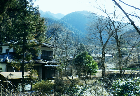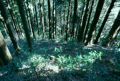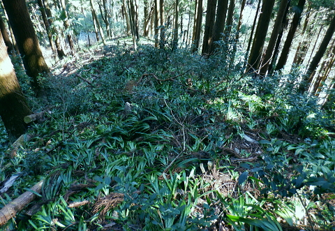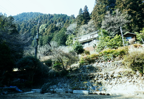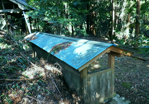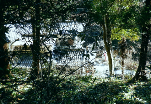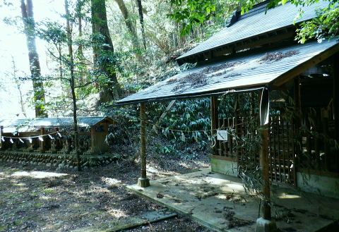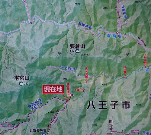 | 東尾根末端の熊野神社と案下街道 熊野神社本宮山跡の南東尾根から550m圏東尾根を下り熊野神社・・街道をを下り上案下から下案下道・・椚沢.川井野.下川井野 関場から中谷山尾根.78号鉄塔と要倉山 要倉峠から高茶山.本宮跡と南東尾根 500m圏東尾根からは直接熊野神社へ・・陣馬街道.上案下 本宮山と南東尾根 便桜沢左岸尾根の伐採地跡から本宮山尾根本宮山732mと東尾根の南西尾根の550m圏の東枝尾根の二又。左に折れるのが本宮山の参道ルートで上.末端に降りれば陣馬街道の案下排水所にでる。 其の儘.右寄りに東尾根を降れば熊野神社の境内に降りている。本宮山の背稜右の小コブは650m圏コブ。 薄く尾根筋に重なるのが498m点峰を擁する東尾根。右下辺りが陣馬街道の陣馬高原下bsになる。 南東尾根550m圏分岐の平坦台地 立木と板の目立つ東に延びる尾根の取付き.12:49550m圏東尾根 尾根筋は1本の直線的な尾根で下草は殆どなく楽で枝絡みはあるものの短い尾根。道標類は取付きの立木に平板が 紐で結び付けられているだけ。他の印は尾根道中に全くなく.1ケ所あったが切り落とされている。 急坂を2ケ所を越え.アッと言う間に熊野神社の境内に降りている。熊野神社は東尾根の下端の中腹に建立されていた。 植林帯に覆われた東尾根を下る.12:58480m・・一度傾斜は緩む 450m圏.尾根らしさを増し急下降.13:08 間の緩やかな斜面.13:13 見下ろされた熊野神社.13:15尾根の真下に下端にある熊野神社を見下ろしている。下山のアプローチとして東尾根を選んだものの時間的にはそれほど 変わらなかったようだ。ただ登りでは一直線の変化の乏しい激斜面を登らねばならず.本宮跡と繋げば飽きる登りになるだろう。 熊野神社からは裾野が広がり.上案下の集落を抜けて案下川沿いの案下街道にでている。 上案下熊野神社の里宮 見下ろす境内は本殿と相.13:16 380m圏.相殿の左脇から境内に降りている御祭神と六社を祭る相殿 ![]() 御祭神の右奥に祀られた石碑 熊野神社は上案下の鎮守社。明徳2年(1391),小沢石見が多摩郡小沢荘より当地に入植した際に紀州の熊野三山 (熊野本宮・熊野新宮(速玉)・那智)のご分霊を遷し高茶山の山頂に祀ったという。 祭神は伊奘那岐命 (いざなぎのみこと).伊奘那册命 (いざなみのみこと).大日靈命 (おおひるめのみこと)で.その後 慶長年間(1596年〜1615年)の野火により.社殿が焼失したため,慶長14年(1609)に麓の上案下集落に里宮として移され再建されている。 右前方下に案下街道を横切っている明和8年(1771年)奉納の狛犬はいずれも小型で阿吽形の区別はあるが.玉取り・子取りなどの形式は見られなかった。 阿奈沢(穴沢.安那沢).13:22498m点尾根の南側を落ちる沢で本宮山が金森山と呼ばれていた時代には金鉱山があった山。 そのことから穴沢の穴とは坑口のことであり.この沢の上流にあったと思われる。 石段から鳥居を潜り更に石段を下ると左脇を流れる小沢にでる。左岸は498m点尾根で右岸道が綴られていた。 民家の脇を抜け小道から案下街道にでる。街道から外れている熊野神社はその入口は民家の脇を抜けるが道しるべがないこともあり. 初めてだと分かりずらい。ポイントは上案下集落の真裏(奥)に建立されている。 小道にでて「保安林区域図」.13:24498m点尾根と重なる東尾根 案下街道に降りて上案下と東尾根を見上げる.14:33写真の頂点が550m圏の分岐辺り. 集落の上部.2本の大杉が熊野神社の境内にあり.左上へ延びるのが東尾根。案下街道は別名では 恩方街道・佐野川往還とあり.現在は陣馬街道と改名された。陣馬街道は八王子市の追分交差点で国道20号(甲州街道) 和田峠を経て神奈川県相模原市緑区に至る街道。山梨県道・ 上案下 戦国時代は案下村といい.江戸時代に恩方村に変化したそうです。さらに下村・上村と分村し今に至ったとか。また「アゲ」とは峠のことで. 片方が急斜面(案下峠を指す? (和田峠)になっている所という意味があるそうで.そこから「アンゲ」と変化したと言う説やアイヌ語説もあり。 戦国時代. 後に出家した大石道俊が案下城を築城しました。戸倉城に移るまで隠棲とか。 陣馬街道を下る 板塀や板張りの古民家が街道沿いに続き.上案下の集落の外れに石仏群がある。左から文政2年(1818)の二十三夜塔,次が明和7年(1770)の秋葉大権現. そして4体目は明和8年(1771)と刻まれた庚申塔。・・八王子さんぽ「陣馬街道A」氏より抜粋。・・日差しの明暗が強く写真は撮れず. 富士子屋山北尾根末端の4500m付近 バス停「陣馬高原下」の広場から上流側を見上げる.14:21オキサツルシ沢と案下川の出合 高茶山の北側から東に延びる498m点尾根の手前から南に下りる枝尾根の末端が街道に落ちている。 裏側の谷間の少し上部が熊野神社になる。498m点尾根を選べば下って以外と面白い尾根かも。 広場中央の案内板をアップした絵地図.13:34下河井野バス停まで街道を歩む。 バス停前の鞍骨沢左岸尾根の中腹道登山口広場の右手にある休憩所と蕎麦屋「山下屋」との間の細道に入るとと北高尾山稜に至る尾根に乗る。・