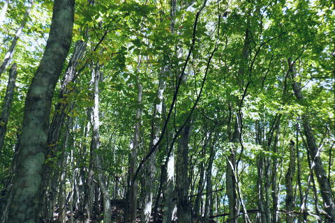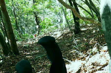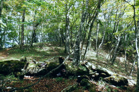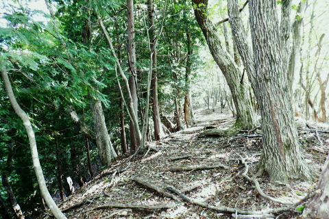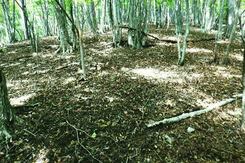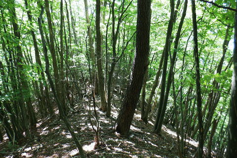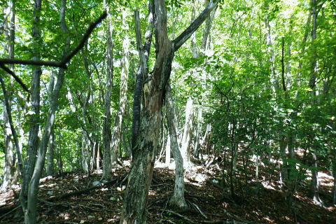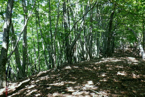 | 長作尾根から三頭山西峰にでて.三頭山笹尾根を下る。 三頭山西峰に立ち.笹尾根に乗り大沢ノ頭・ハチザス沢ノ頭・メイクケタワから槙寄山手前の1155m圏小コブで.笹尾根を分け大星沢左岸尾根を下る。 大長作沢二俣から長作尾根乗る 1251m点からは三頭山西峰に立ち.笹尾根1155mコブへ 大星沢左岸尾根からは南西尾根 原地区にでる・・会館 長作尾根1251m点 1251m点まで後少し.11:18 石岩塊りを右に巻く.11:28 1200m圏.緩やかになり振り返る.11:29右(西)の山腹に作業道が横切る? 11:33再びスマホは私に「道が違います。戻るよう!」と話しかけてきた。思うに計画の段階では1251m点コブを左側に巻く作業道に印を付けていた。 その理由に合点がゆき.頷く自分がいる。と云うことはそのまま尾根筋を登り詰めれば作業道が尾根筋にでて.合流点で納まると見込む。 その通りに後はスマホは沈黙を続けていた。安全と先への探索には素晴らしいシステムだ。 又三頭山の頂では「都民の森」への別コースが選択できますと語りかけてきたのにも驚かされている。 11:331251m点 山腹道が合わさり下藪もなく軽やかに.11:46スマホは沈黙を続けていた。 一時痩せ尾根になり.尾根幅が広がる.11:56 1310m圏.正午 灌木にブナが混ざる.12:07 12:07 先に透す明るさが増し尾根が更に広がりだす.12:10 1410m圏.肩の台地.12:18三頭山西峰.三頭山尾根(西尾根) 12:35広尾根から1490m圏ので登山道と合流 長作尾根からの眺望はこの時期.全く得られなかった。樹間の隙間から一時でも左側の牛飼尾根や 右手に並行する大茅尾根が望めるかと期待したものの残念だった。ルートは2ケ月半のブランクも異せず尾根筋を直登できた。 嬉しいことに少し足に自信をが持て.山登りはもう少し続けられるだろう。 頂前の1510m圏小コブ.12:42右に僅かに進み小コブを越えると鞍部から都民の森の南側の境を越え三頭山に立つ。 三頭山西峰1524.5m 12:44昼食.13::30丁度昼時を終えたところ。頂で寛ぐハイカーは多い。昨年3月に三頭山中尾根を訪れた時はコロナの影響もあり.殆ど合わずにいたが。 久し振りに妻の手弁当を持参.ほぼ1年振りの弁当箱を開けている。素材を味わいながらゆっくり昼の時間を取ることにした。 笹尾根へ 頂を離れて直ぐ常に気になる奇妙な立木.13:31ムシカリ峠.ブナダワ.1430.0m T字路の右下が都民の森「ブナの路」で大滝休憩所小屋へでる.13:39 三頭山避難小屋1433.0m. 13:41覗き込んで見るも綺麗に片付けられ誰もいなかった。 大沢ノ頭 別名は大ナギタ.ブナ山. 頂のベンチと右下の展望を眺める.13:48地形的には十字路の頂・・斜め南北に笹尾根が抜けて.大沢ノ頭東尾根は右下周りに回り込み.戻る形で尾根に乗る。 先は西原峠から笛吹峠.浅間峠へと続く。末端は高尾山か.草戸山から大地沢にでる。 頂の右向かいが南西に延びる大茅尾根で飯尾に下りてをり.尾根の右隣に並行するのが今登ってきた長作尾根。 左手の扇状に広がる谷間は大星沢. 足元の茂みで見渡さられぬが.これから目指す大星沢左岸尾根が延びている。 道標の背は大沢山東尾根.下れば三頭ノ大滝へ直接下りている。 権現山稜・・権現山.北峰.大寺山尾名手尾根.小寺山 手前の谷間は鶴川の支流大星沢市界尾根(上野原市・大月市)と遠方は県界尾根(甲斐と相州)。権現山から離れ麻生山(裏は長尾尾根).続いて三ッ森北峰と重なる大寺山 鋸尾根と葛野川左岸尾根を分けている。主稜上は小寺山から奈良倉山に至る。 権現山稜と都県界尾根の遠方は道志の山並.霞む大きな山波は御正体山と鹿留山か? ハチザス沢ノ頭1370m 別名でカナ山.金山.蜂巣沢ノ頭.13:56都民の森の南側境で.「これより先は都民の森でありません」の標識があり.都民の森の分岐。 ハチザス沢ノ頭からは三頭沢とハチザス沢を隔てる東尾根が延び.石山の路」が三頭ノ大滝へと綴く。この尾根の南面のハチザス沢流域と繋げ. 静かでちょっとした変化に好奇心をくすぐられる山域でもあり.その奥が入山禁止の「深山の路」へと至る。 更に笹尾根を下る.14:06尾根道も幾らか自然に戻り.槙寄山への縦走路は静かな尾根道に変わっている。 地形図に記されちる左におれる破線路? の先笹尾根の1250m圏で.右手に大箸沢上流二俣中間尾根が乗るとクメケタワ1140mに至る。 尾根筋は雑木の林相が続く.14:11クメケタワ1140m 14:18クメケタワは1173m点と1150m圏との2つ小さなコブの鞍部.1140mにあり.由来等は分らず。 数年前.雪積もる笹尾根をラッセルして下ったことがある。その折この山名板を見付け.凍り付いた雪を取り除こうとしたが結局読めなかった。 降雪直後の淡雪に悶え楽しかった覚えがある。西原峠から南西尾根を下り.アイゼンにものを言わせ.雪斜面をズリ降りていた。 上野原卿原分岐 道中に笹尾根の道標1140mがあり.14:181155m点コブ 緩やかな起伏が続く.14:20 1159m点コブより.14:251155m点コブ先の鞍部 14:30個性ある道標と原への山道分岐 この鞍部で三頭山から降りてきたハイカーと出会う。彼は丸山まで縦走し芦瀬へ下ると過ぎ去った。 如何にか降りえる時間帯だが.私はゆっくり大星沢