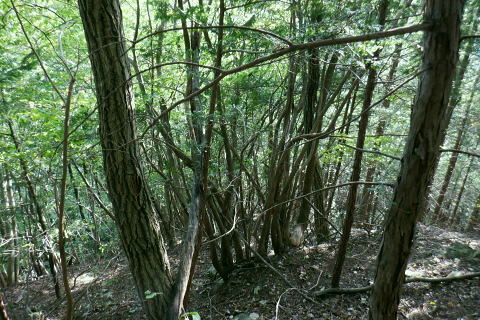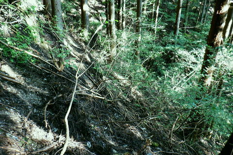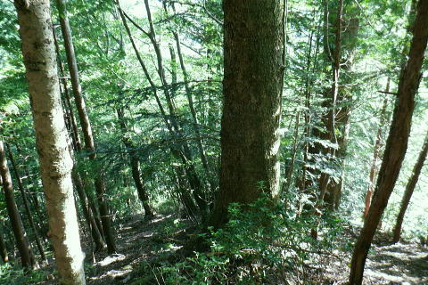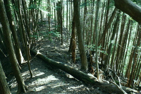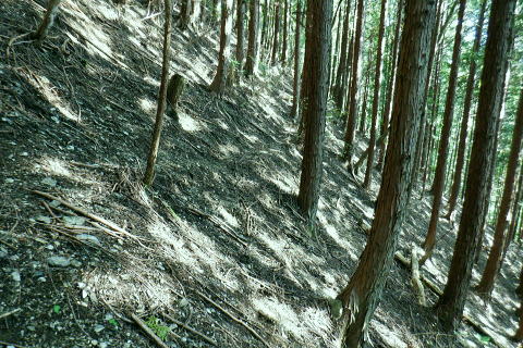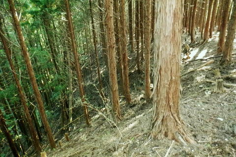 | 三頭山から下り1155m点小峰で笹尾根を分け.南側の鶴川に向かい大星沢左岸尾根を下る。 途中で直ぐ右後方から作業道を合わさると檜の植林に覆われた南西尾根を下り.時には雑木と混ざりながら原地区の里へ 長作沢二俣から長作尾根に乗る 1251m点から三頭山西峰に立ち笹尾根1155mコブ 大星沢左岸尾根からは南西尾根・・山レコ2 原地区にでる・・会館 笹尾根1155m圏小コブ肩 赤帽黒杭が4.5杭列をなし群がる。大星沢左岸尾根の取付き.15:00大星沢左岸尾根は鶴川左岸の支流.大星沢がほぼ真北の大沢ノ頭を源として突き上げている。その本流右岸の二俣.中間尾根へ。 右俣のカンボーメ沢と左俣の大星沢支流.中グラ沢を隔てる中間尾根に乗ると尾根末端は南西に向かい落ちている。 下端は原集落に没している。全体的にはすっきりした檜の植林帯に覆われ.点々と立木に赤テープが付けられていた。 又赤帽黒杭あり.尾根の中間には確りした作業道が合わさり抜けている。 急下降を1050m辺りで終えた尾根の中半からは笹尾根の鞍部からの山道と合わさっている。 溝状のボップスレーのような道が大きく蛇行し.そのまま誘われるよう下ってしまったが.途中で気が付き修正し.尾根筋に戻り集落に下りる。 又大星沢左岸の二俣右俣を隔てた対岸は槙寄山南西尾根になる。上半から尾根らしく.二俣は当時.雪山の下山だったのでボップスレーの如く降りていた。 肩の1145m一辺面の斜面. 磁石を読み南南西方面へ.15:00 急坂1130mで南西の右寄りに修正.15:02左方に尾根が起きる 1080m圏.急下降を終え見上げる.15:08 尾根幅が広がり緩やかな斜面に.15:08 1030m圏.枝落ちもなくすっきりした台地.15:10 赤テープを見て左寄りへ.15:11ちょっと物足りないが下藪がないだけ楽 990m圏.境界見出標「2」にでる.15:13ここから確りした山道が合わさる。窪んだ道底は小石に枝落ちした残骸や枯葉の盛り上がり. 溝底が煩く窪状の脇を選び歩むようなった。以前.西原峠から下った槙寄山南西尾根にも同じような窪み状の作業道を下っている。 その時は以外と雪深く.スノーボップスレーそのものだった。又時には蛇行を横切り直下している。それ故境界見出標「1」は見逃したかも? U状の溝を右に大きく回り込む.15:18 900m圏分岐.北都留森林組合とあり.原地区が管理.15:20作業道は尾根筋と分れ西側の枝尾根を下りている。旧飯尾ハイキングコースか? 860m圏.巨樹が並ぶ.15:23足元の窪状の道ばかり見詰め.尾根筋から分かれるも気が付かず.本尾根を外れ西枝尾根の山道を下りていた。 830m圏分岐.15:27「山レコ」2 ここで登場したのが再びスマホの「山レコ」. 急に「道が違います。戻るよう!」と私に話しかけてきた。 入山の時と全く同じだった。最初は分からなかったが2度目の繰り返しで立ち止る。進むべき方向が違っている。 なるほど凄い強者のシステム. まずは感心し今日は驚くばかり。 又下山後に三頭山の登りで休むタイミングが合わず.休まず頂に立っている。終えた総合的な意見だろう。休むよう忠告だけを受けていた。 意味が分かり修正せねばと周りを見渡すと左後方の山腹に薄い踏み跡を見付け.トラバースし本尾根に戻ることにした。 濡れていれば際どい斜面。慣れた者と突進し.西に進む山道を分け.南東へと山腹を横切る浅い踏み跡を選び.本尾根に乗る。 小沢を横切るためできるだけ高みへと水平にトラバースした.15:31 小沢から斜上し850m圏へ.15:42主尾根に戻り振り返るが.渡ったポイントは植林に隠れ見定められず 再び大星沢左岸尾根 主尾根に戻った850m圏.15:43 800m圏.南西へ急下降.15:46薄い踏み跡に戻り.満る薄暗い樹林帯を直下した。 林相は明るい灌木帯に移る.15:48 平坦な750m圏へ.15:52歩き易い痩せ尾根を急下降し.緩んだ斜面で距離を稼ぎ.尾根筋を右から左へ回り込む。 今回は最後に珍しく倒木を跨ぐ.15:53 715m.巨樹を左に折れ急下降して里へ.15:56 下った所の真下に墓石.16:00坪山 薄く被われた小さな原っぱ.16:00降りた目線の向かいに電柱が立ち.民家の裏側にでる 長作沢二俣から長作尾根に乗る 1251m点から三頭山西峰に立ち笹尾根1155mコブ 大星沢左岸尾根からは南西尾根・・山レコ2 原地区にでる・・会館 |