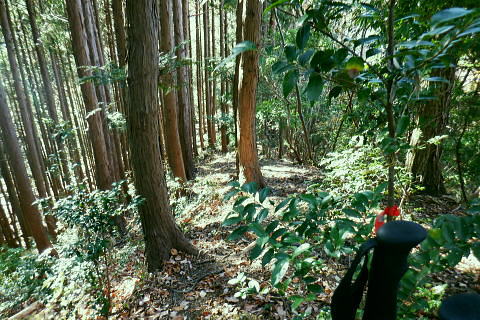 | 残されていた戸倉三山の1つ刈寄山. 篠八窪尾根尾根から詰め.秋川の南岸沿いを尾根伝いに綴り.最後は今熊に至る ・・戸倉・醍醐地域の山々Top 盆堀川右岸尾根から取り囲む刈寄川.逆沢.から川口川流域へと低山源流の山々を綴り.秋川街道に下りた。 沢戸橋から刈寄山篠八窪尾根を詰め.日陰本田山はピストン。石立ノ頭南尾根からは採石場跡を経て刈寄山に立ち.舟子尾根に回り込む。 古愛宕山北東尾根からは逆川を渡渉し右岸の今熊登山道に乗り.新多摩変電所から今熊登山口バス停へ 2021年12月05日.松村 沢戸橋から篠八窪尾根を綴り日陰本田山への分岐・・みなと区民の森 日陰本田山ピストンし石立ノ頭と石田沢の枝沢絡みから採石場跡 刈寄山から豆佐嵐山を経て舟子尾根 古愛宕山北東尾根と今熊裏参道 戸倉山の山々・・入山尾根と菱光石灰工業の採石所 武蔵五日市駅バスターミナルから南面の展望正面の県道.直ぐ右隣の秋川街道の東詰の起点が檜原街道と繋がれ.奥多摩湖周遊道路と旧料金所で繋がれている。 背は入山尾根と菱光石灰工業の採石所 初めてに戸倉三山の流域に入ったのは7年ほど前. 醍醐丸から戸倉の西側を吊尾根.市道山.臼杵山グリ尾根と綴り.荷田子峠から檜原街道へ。 その時は戸倉二山しか登らず.刈寄山を外した理由が分からなかったが.恐らく「平成26年豪雪」の後で.積雪を考えると行動範囲が限られていたのかも。 その後は北側の醍醐川を遡り.或いは醍醐川側から峰通り沿いの山々や入山峠の山々に訪れてはいるが。 今回のメーンは日蔭本田山と刈寄山篠八窪尾根になる。刈寄山は如何なるコースを選び登るかが問題だった。 久し振りのコースは凝り過ぎで.意外な盲点があったかも? それでも楽しい私だけのコースを作ることが出来たかも。 今回はそれらの連なる山々に囲まれる内側に流れる刈寄川を取り囲む尾根を周回した。 倉戸橋から篠八窪尾根.舟子尾根.古愛宕北東尾根と綴る。秋山丘陵は時間的にロス.今熊登山道から秋川街道へ下りている。 篠八窪尾根から刈寄山まで連なる北尾根の中半にある採石場の拡大に伴い.過っての原形を失った尾根筋は.現在通行は不能になっている。 ルートは石立ノ頭南尾根から石仁田沢の枝沢を下り.左岸を捩るよう登り.採石場の上にでることにし.上手く乗っている。 以前は刈寄川沿い.或いは外側の尾根を登り.常に向かい側に眺めていた尾根だった。特徴ある日陰本田山と共に見守っていた山々でもある。 入山尾根には8年ほど前に少し齧っている。ここも採石場が尾根上まで跨ぎ.「通行止」の為諦めていた。 何処を下るにしても.今回は新多摩変電所周辺に下りることにになるだろう。遠方からではなく初めて間近で見聞できることも楽しみにしていた。 山行に当たってはブログ「奥多摩 尾根歩き」氏と「バリエイションを楽しむ」松浦本を参考にさせて頂きました。 左.奥側は舟子尾根 檜原街道と沢戸橋7:13沢戸橋バス停から気持ち戻り.右カーブ地点が沢戸橋 12月04日(土).快晴.風弱し jr御徒町.¥936. 5:11=5:16東京:29=立川.五日市行6:29=6:58武蔵五日市.バス6:58=7:11沢戸橋bs.190m 五日市駅前広場1番線からでた上養沢行の路線バスは2019年師走に大岳山東尾根に出向き利用している。その時は車中はガラガラだった。 今回は小型の路線バスに替わり.車内は座れる程度の乗客を乗せている。五日市高校前で2.3人が降りている。 上野原あきる野線の裏通り.秋川の左岸沿いの住宅地に回り込み.沢戸橋バス停では私独りが降りている。 山陰に入り.風はないものの肌寒い。明日.東京地方は今年最低の一桁の気温を記録した。それならと前日に前倒ししていた。 正面の篠八窪尾根に乗り.まず日陰本田山を目指す 刈寄川.新久保川原橋の北詰より.7:14刈寄山北尾根(篠八窪尾根)と右に延びる枝尾根の404m点峰. 橋桁下で斜めに交差する久保川原橋は秋川右岸歩道から本郷地区と結ばれている小橋。 篠八窪尾根 南詰から三叉T字路分岐と新久保河原の集落.7:16新久保川原橋を渡ると左側は刈寄林道.直進は盆堀道と分かれている。角の側壁に埋まる電柱の道標に「刈寄山登山口徒歩30分.2.6km.」とある。 刈寄林道は又舟子尾根のアプローチでもあり.林道の脇には「みなと区民の森」が構え.入山峠まで綴られ.更に林道盆堀川線と繋がれ醍醐にでている。 今回は刈寄山から舟子尾根に乗り.古愛宕山北東尾根を下り.逆川から川口川沿いに下る積もりでいる。 右手の林道は過って盆堀道.林道を経て.「新宿区民の森」から石津窪山の大萱尾根をピストンしている。そして入山峠から入山尾根に乗り. 芳村砕石場へ降りている。今回も巨大な採石場を抜けるという似たような気持を抱きながら.刈寄山北尾根と採石場跡を結ぶ山行を選んでいる。 背に横たわる尾根がこれから登る篠八窪尾根の末端。右方の尾根先は篠八窪尾根の404m標高点で.右端下からも枝尾根が突き上げている。 右.T字路から盆堀道へと直進すると直ぐ新久保河原の集落に入り. 正面のガードレールから左後方の舗装された坂道を登り